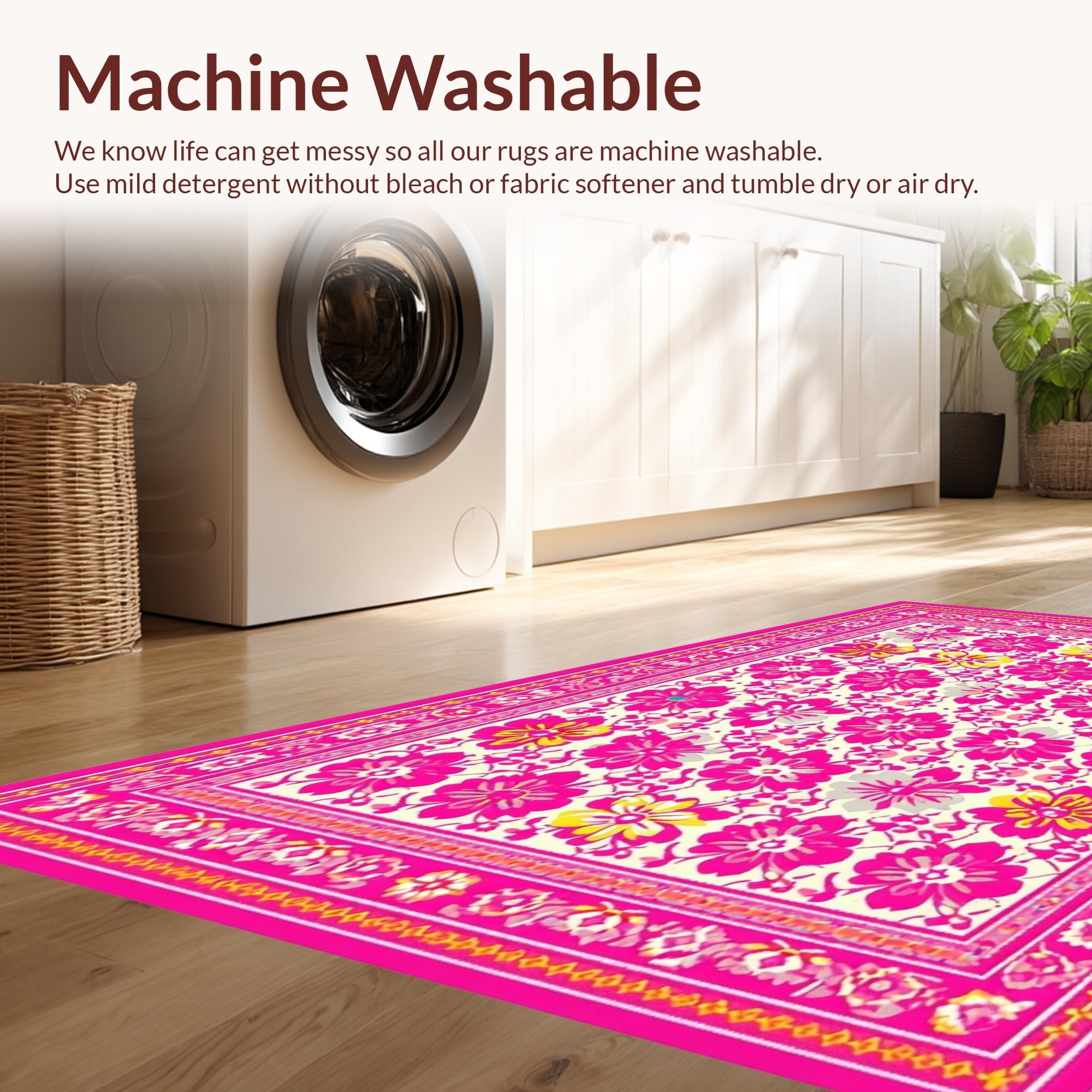 - Machine Washable: Our rugs can be easily thrown in the wash machine.