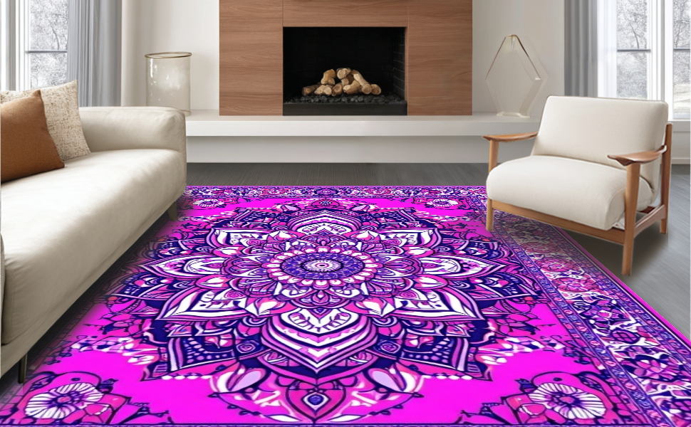 Ultra Soft Area Rug, Non Slip, Stain Resistant, Washable Area Rugs for Living Room, Bedroom, Elegant Pastel Tapestry Aesthetic(Pink) Overview: