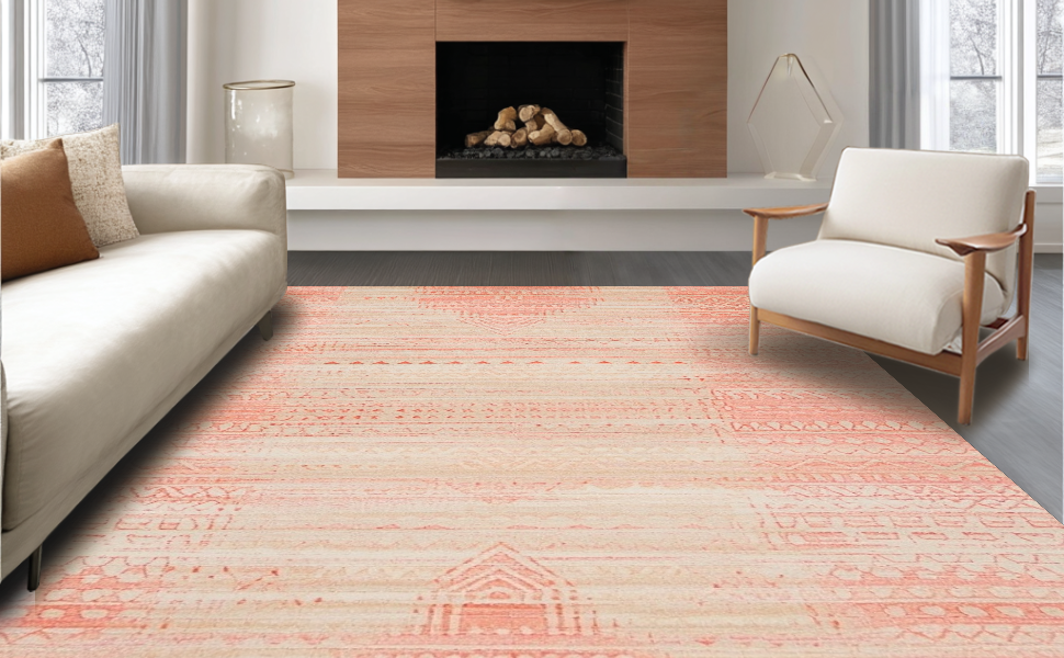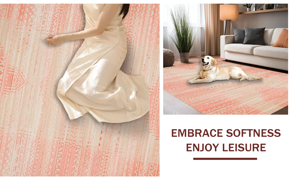 Ultra Soft Area Rug, Non Slip, Stain Resistant, Washable Area Rugs for Living Room, Bedroom, Elegant Pastel Trellis Motif(Pink) Overview: