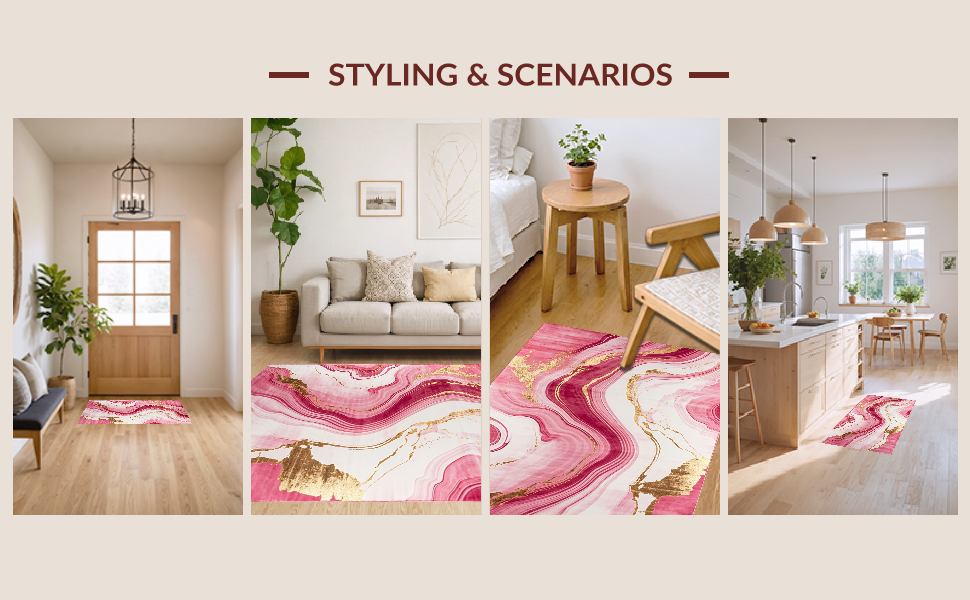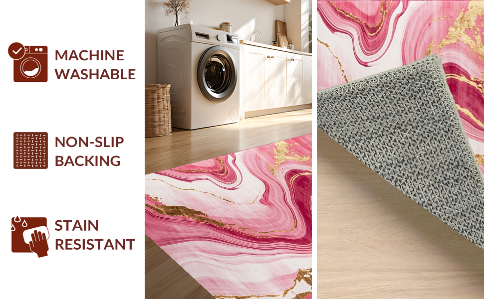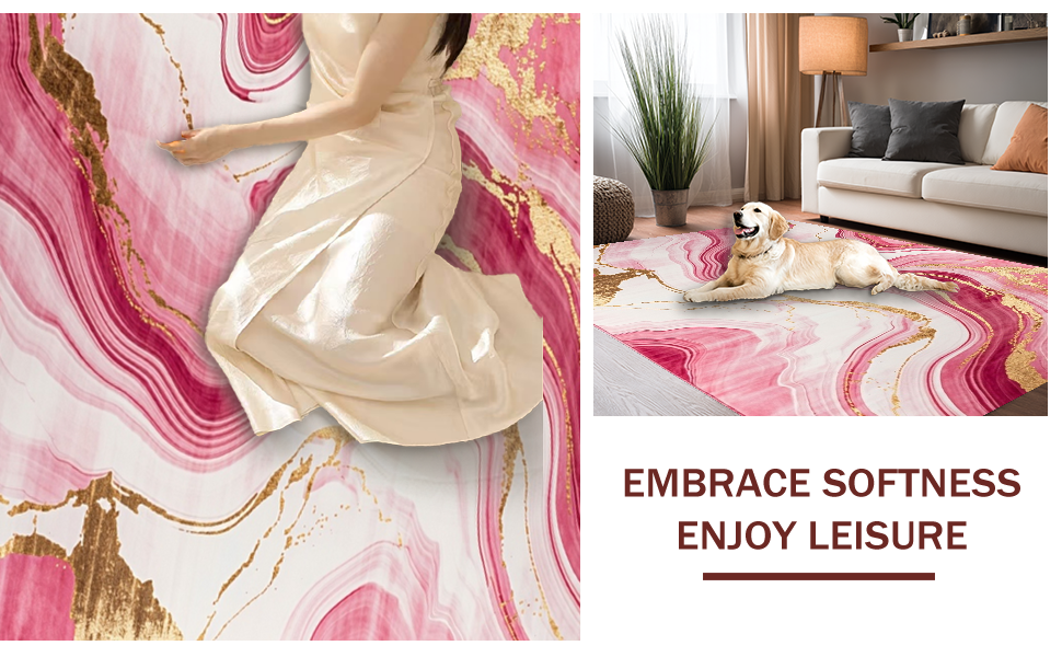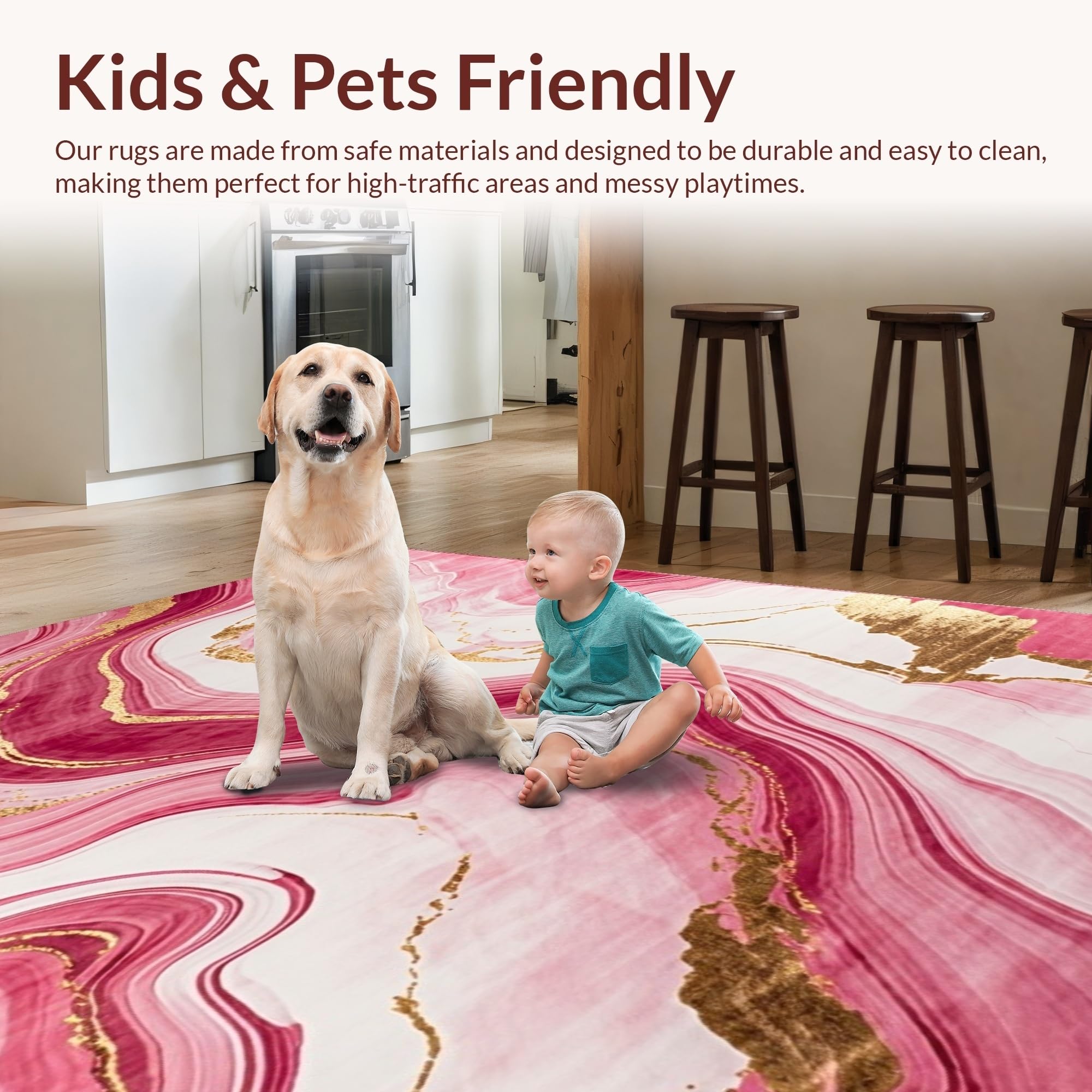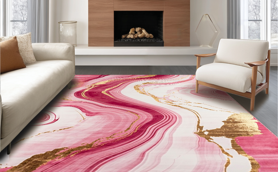 Ultra Soft Area Rug, Non Slip, Stain Resistant, Washable Area Rugs for Living Room, Bedroom, Elegant Pink Abstract Motif(Pink) Overview: