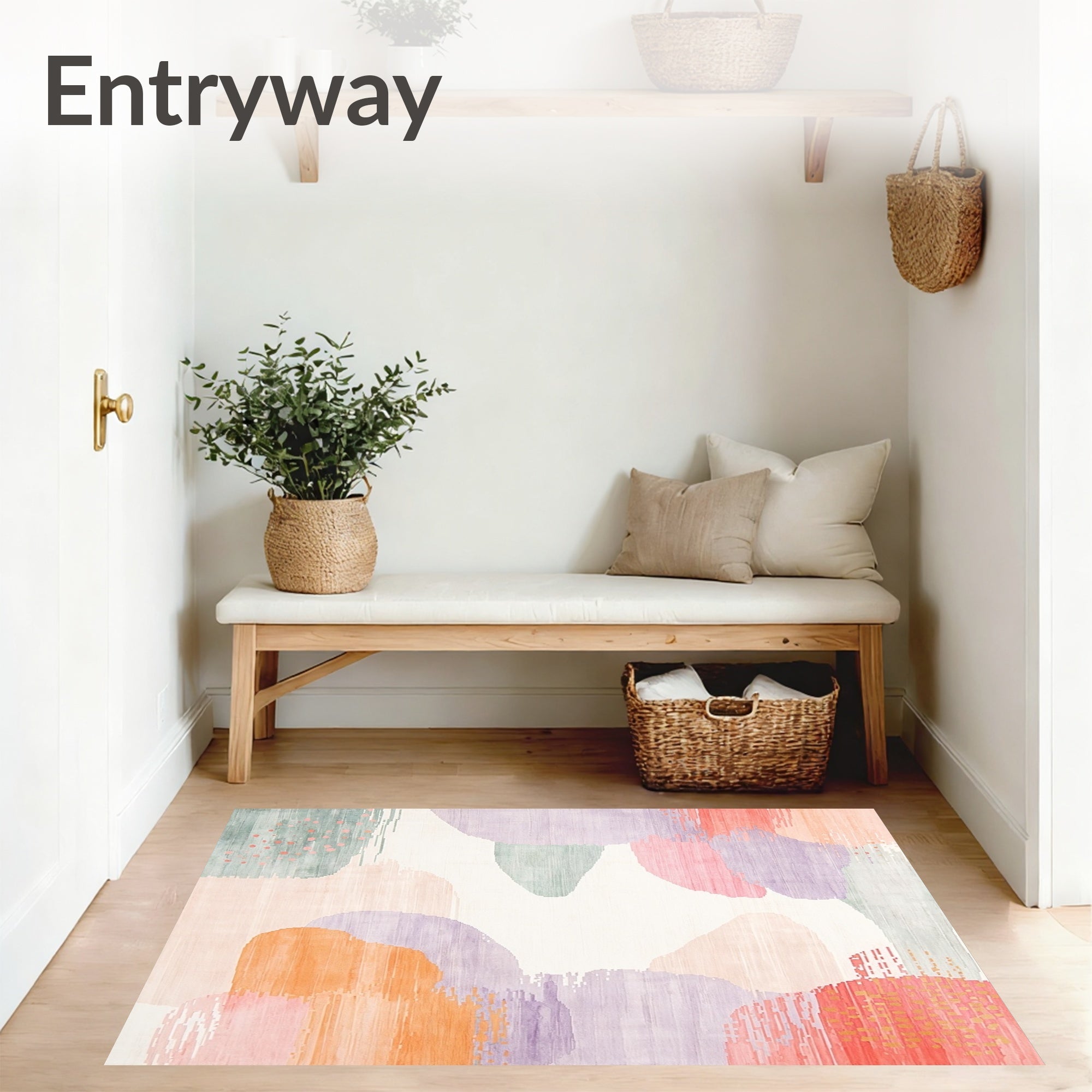 Ultra Soft Area Rug, Non Slip, Stain Resistant, Washable Area Rugs for Living Room, Bedroom, Elegant Pink and Multicolor Watercolor Strokes(Ivory) Overview: