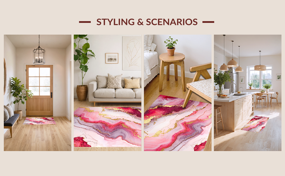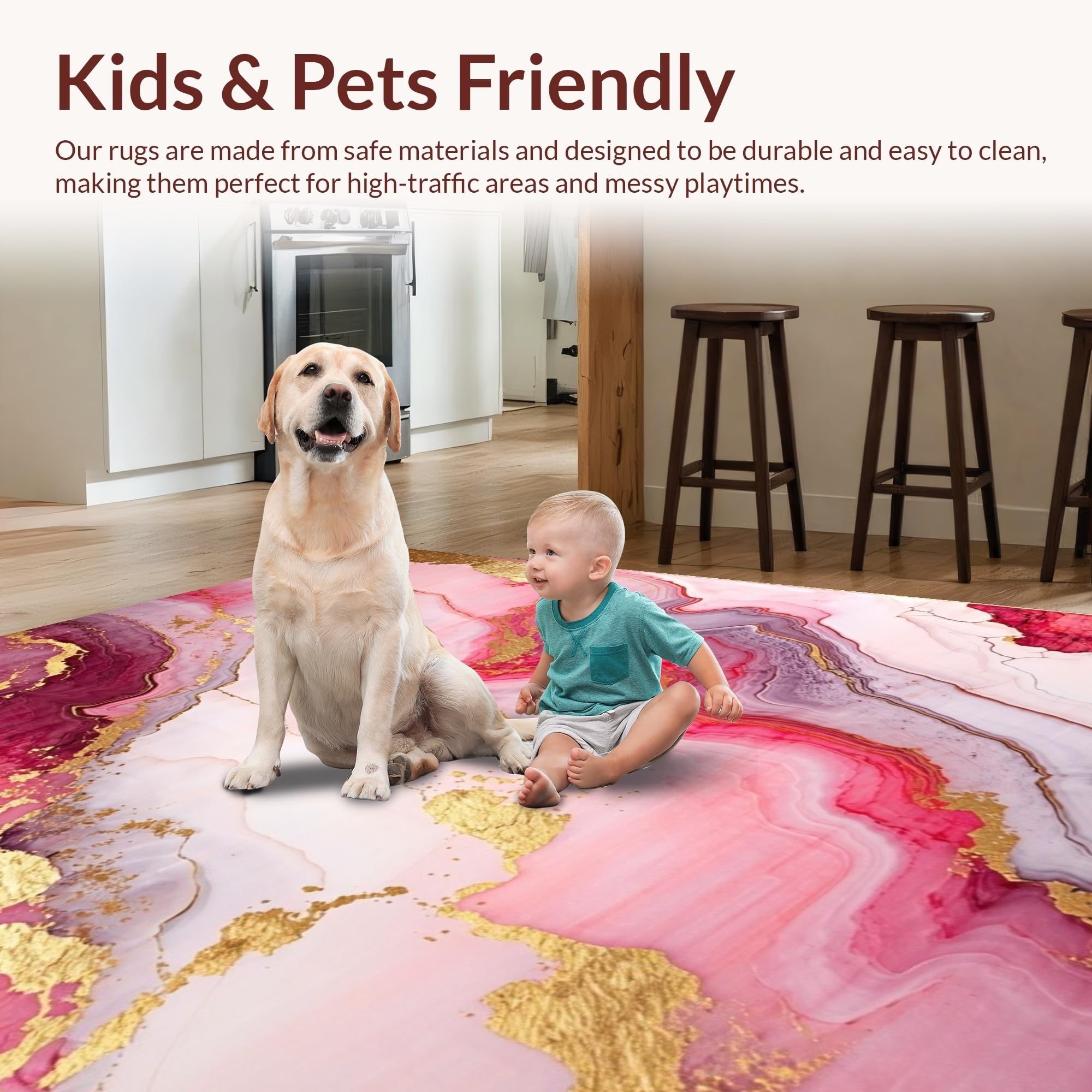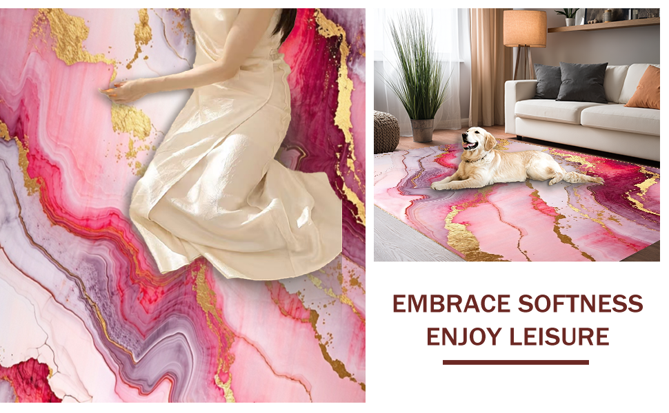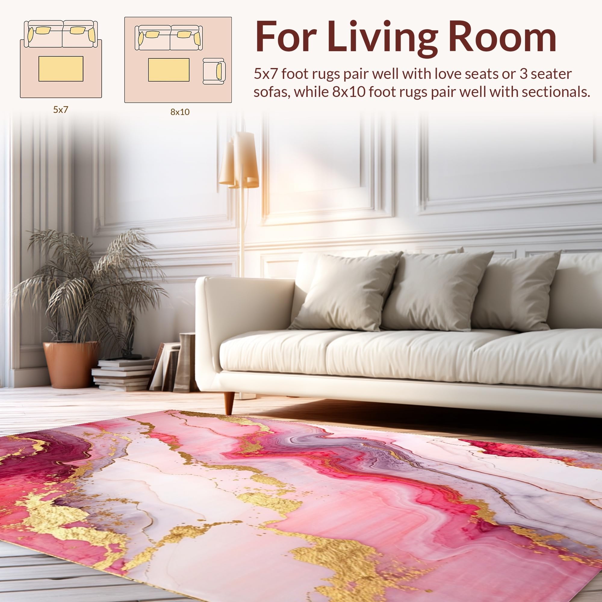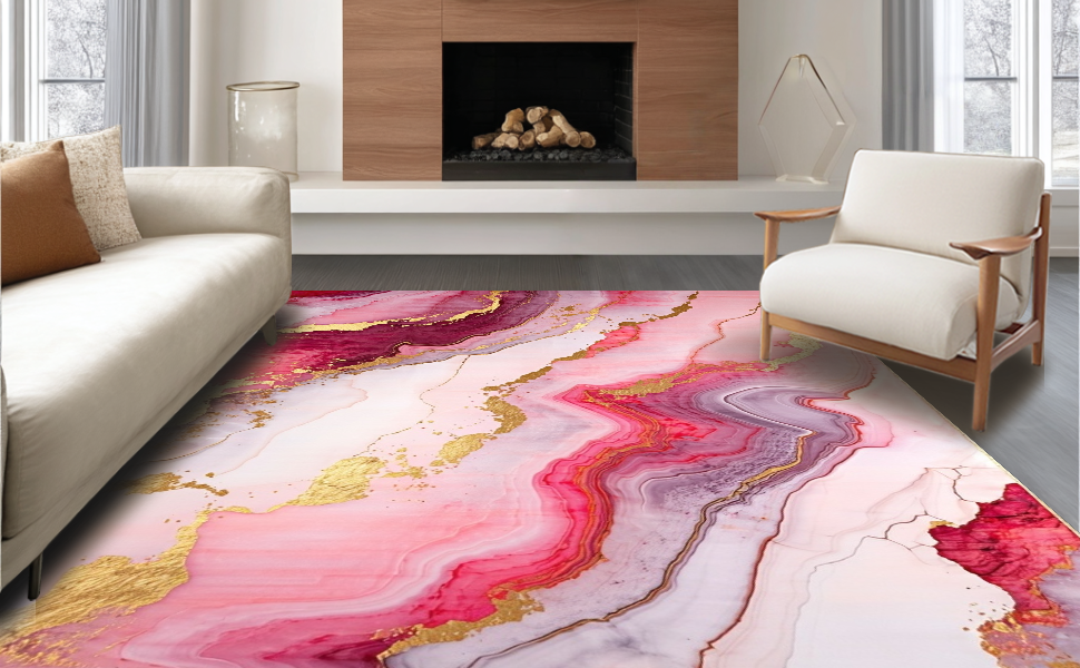 Ultra Soft Area Rug, Non Slip, Stain Resistant, Washable Area Rugs for Living Room, Bedroom, Elegant Pink Toned Fluid Art(Pink) Overview:
