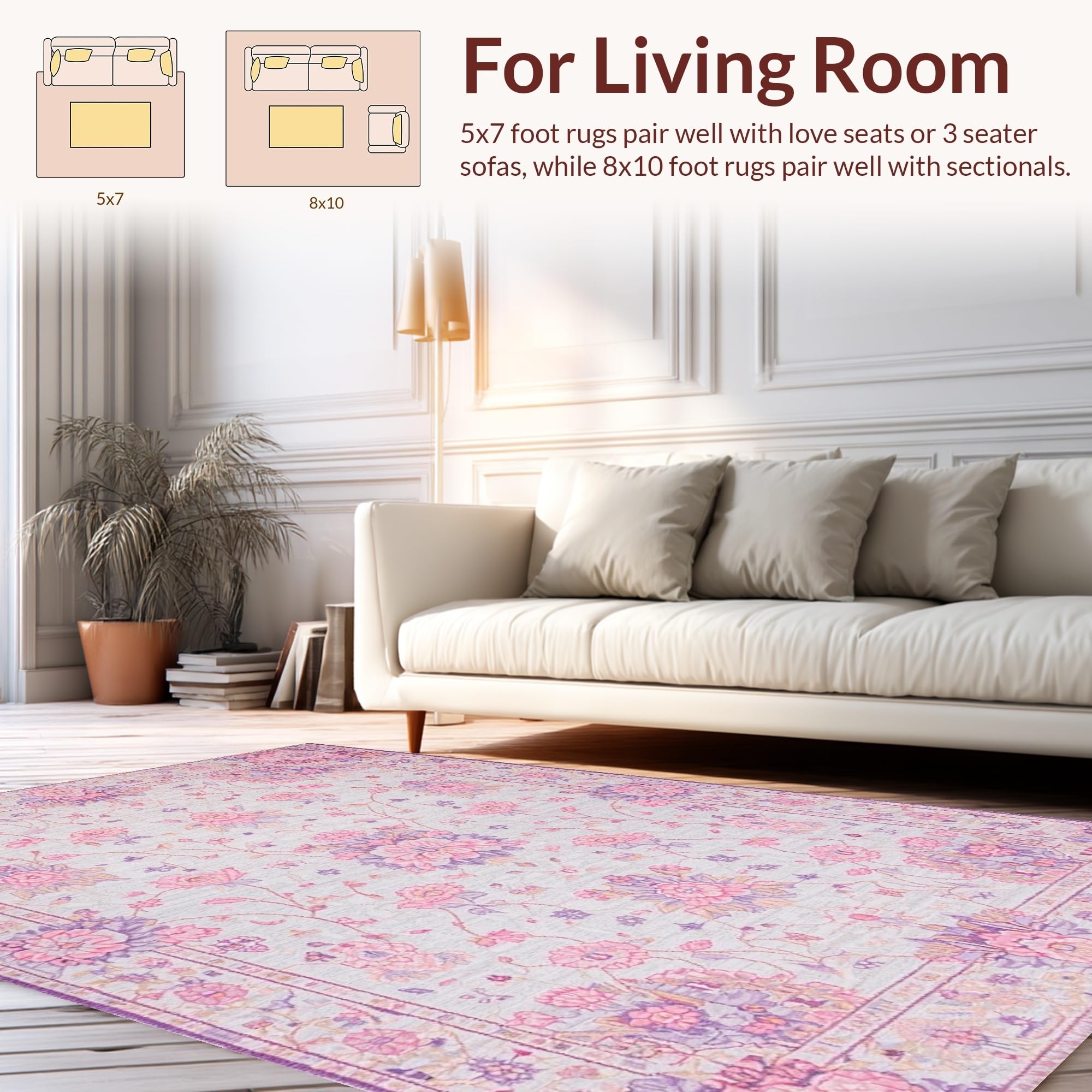 Ultra Soft Area Rug, Non Slip, Stain Resistant, Washable Area Rugs for Living Room, Bedroom, Elegant Playful Plush Accent(Ivory) Overview: