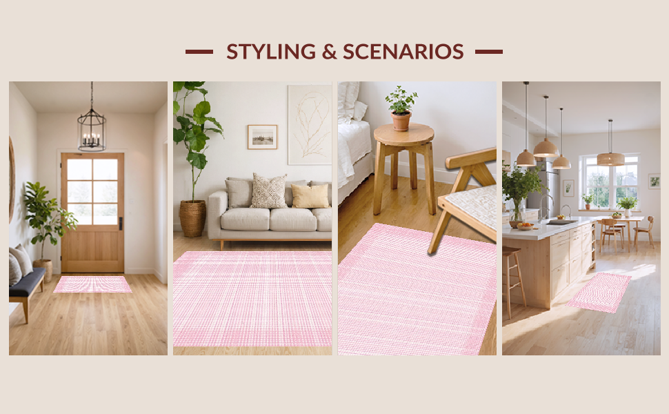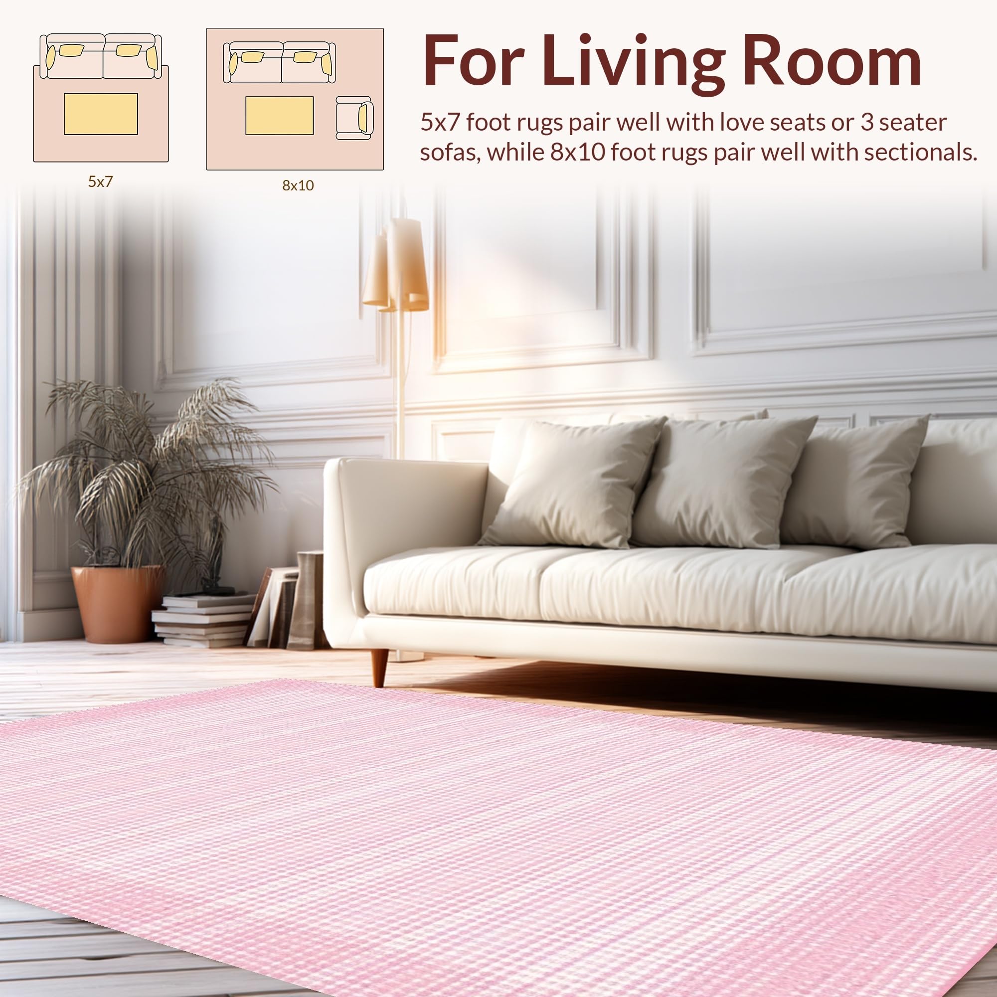 Ultra Soft Area Rug, Non Slip, Stain Resistant, Washable Area Rugs for Living Room, Bedroom, Elegant Plush Square Composition(Pink) Overview: