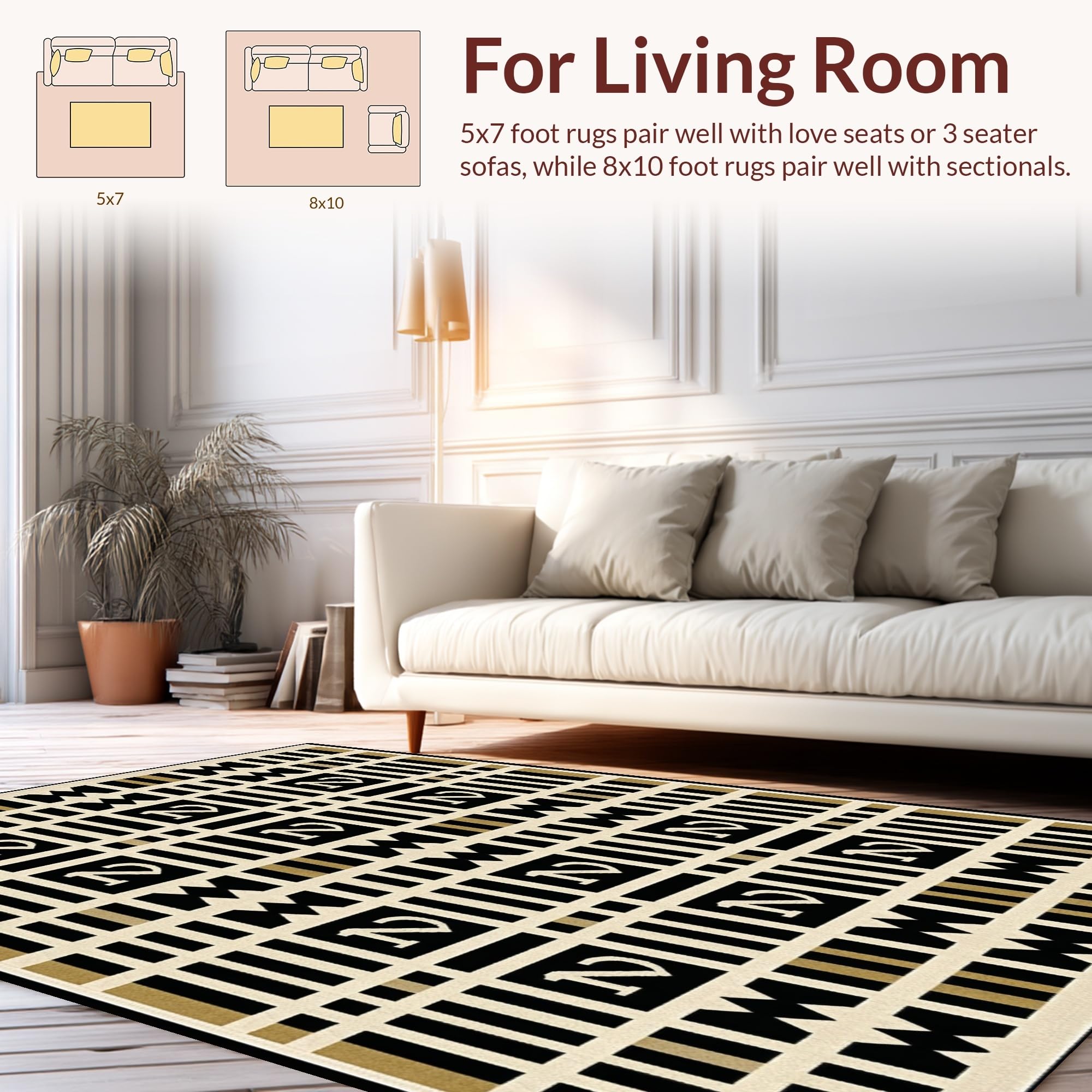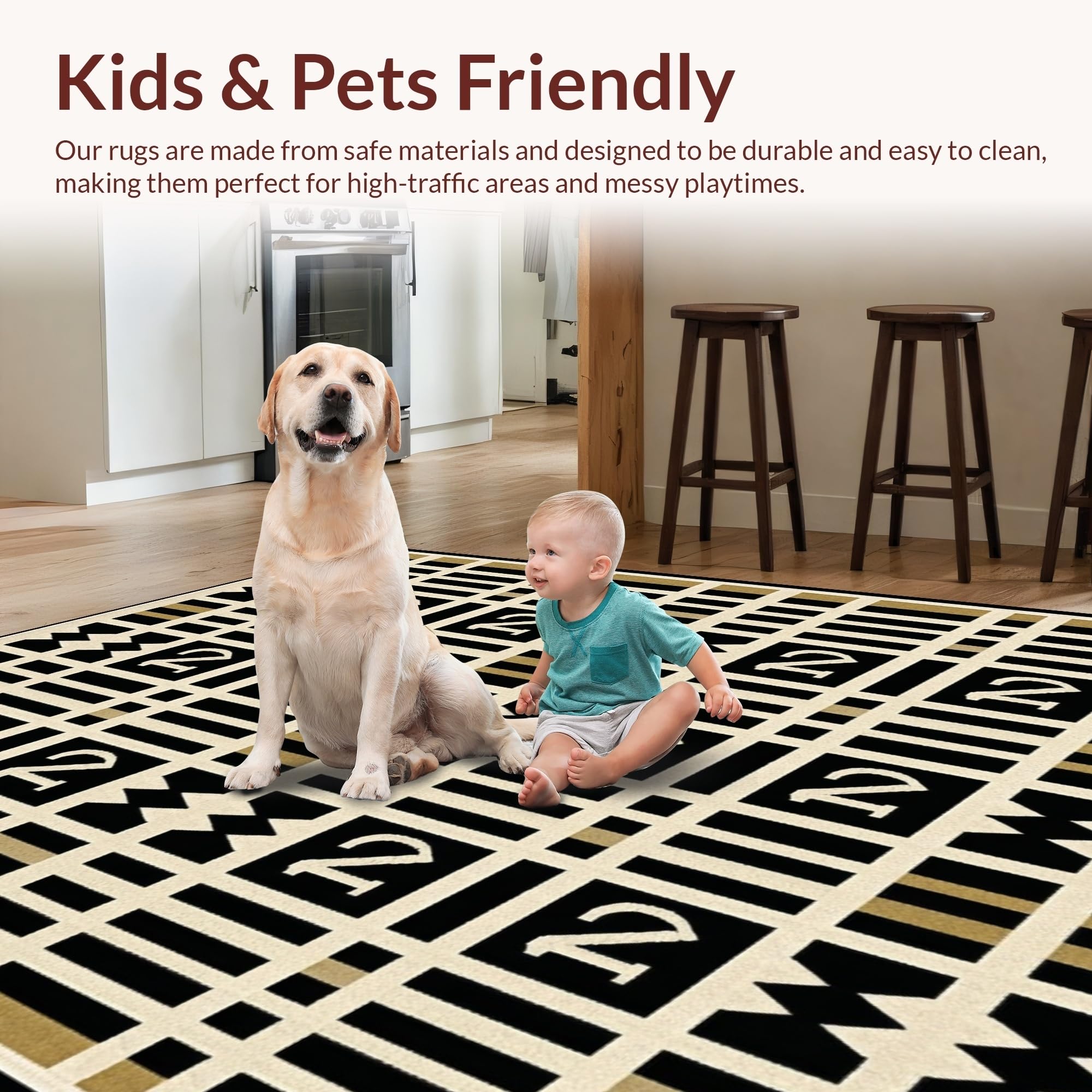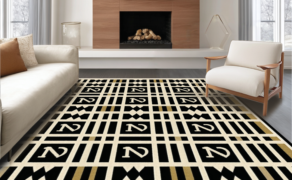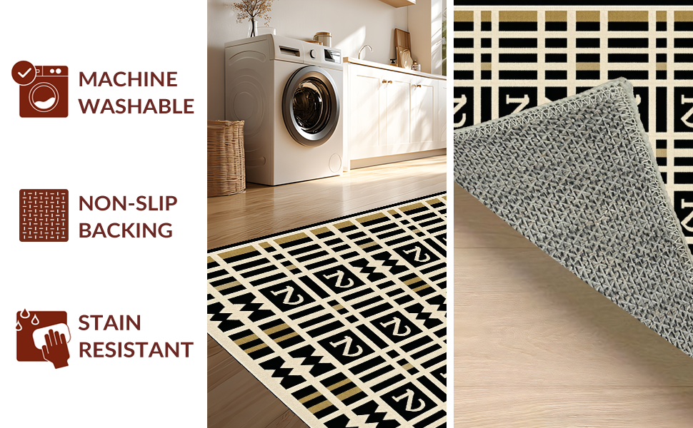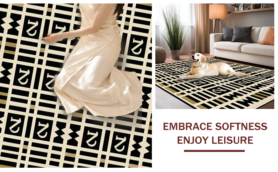 Ultra Soft Area Rug, Non Slip, Stain Resistant, Washable Area Rugs for Living Room, Bedroom, Elegant Preppy Welcome Aesthetic(Black) Overview: