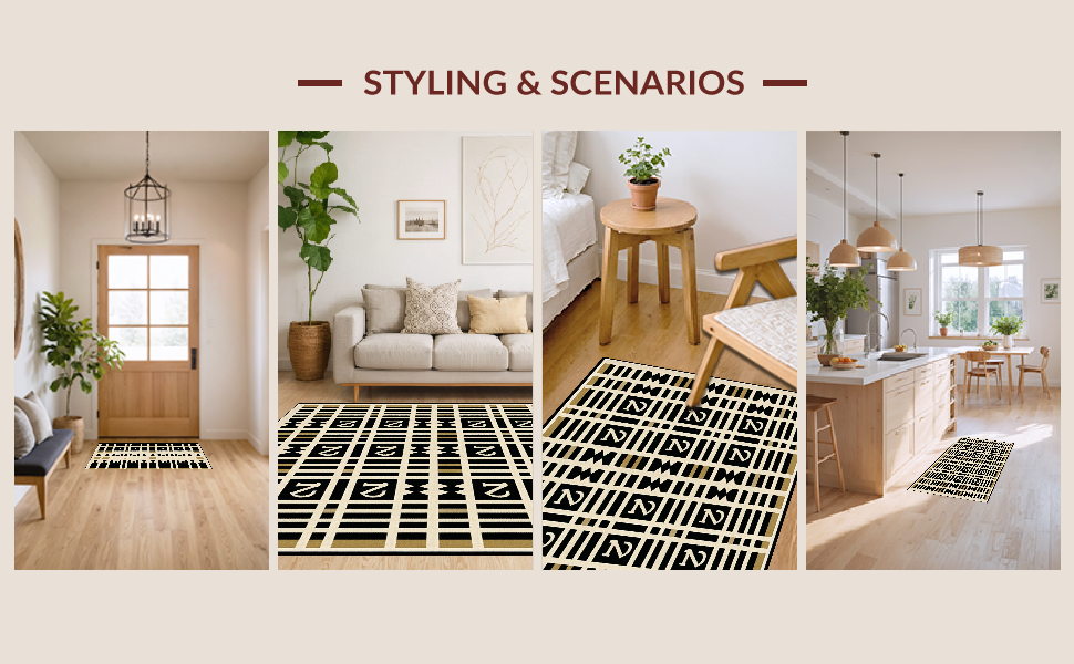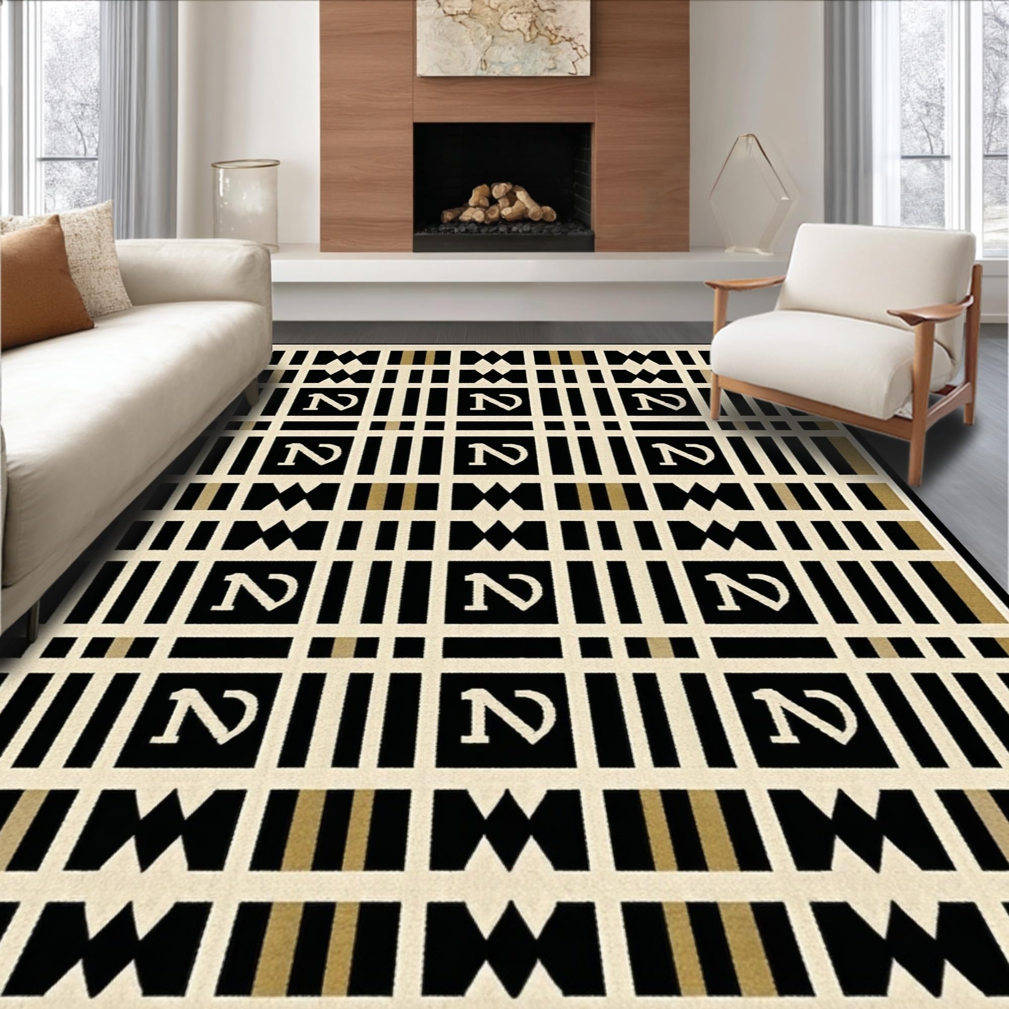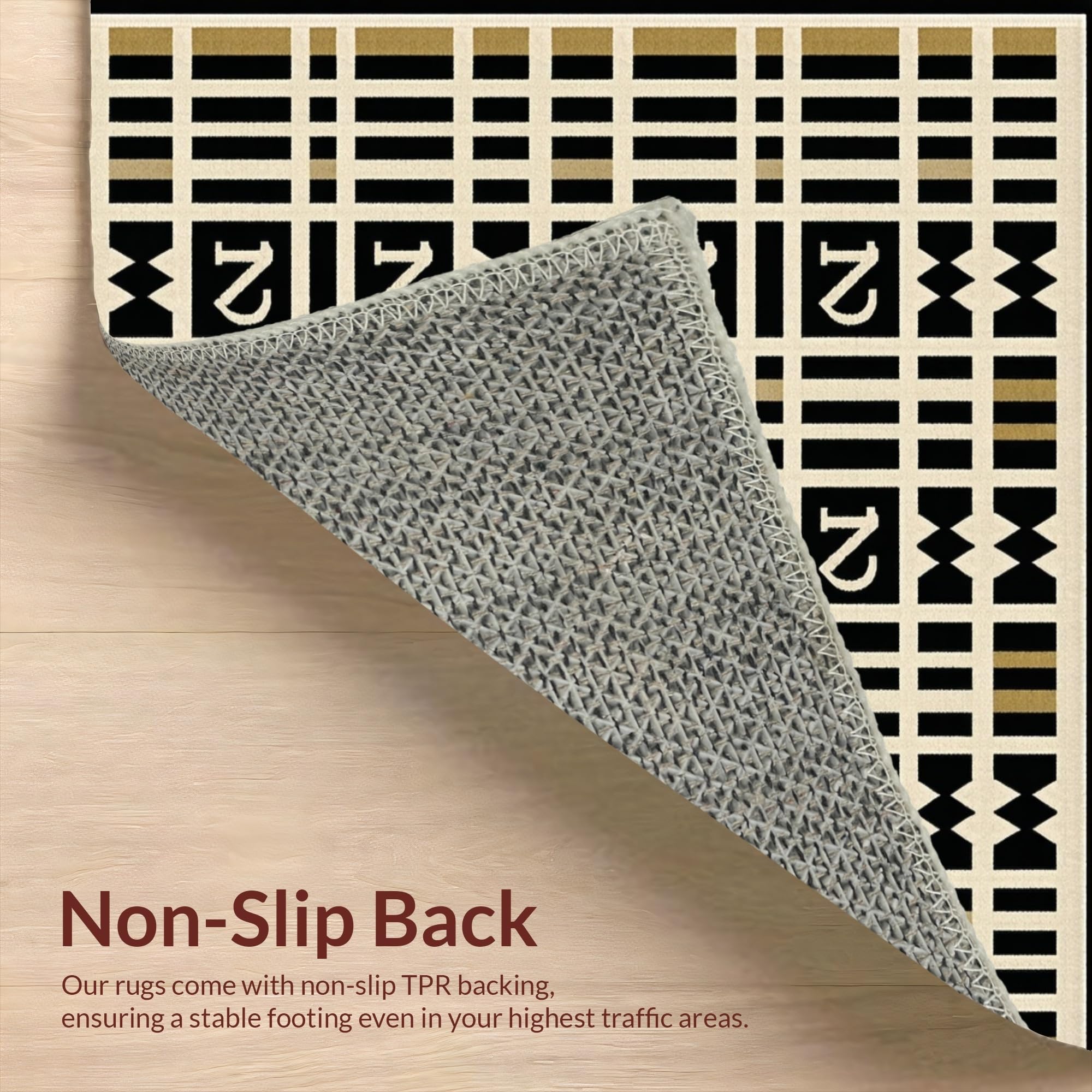 Ultra Soft Area Rug, Non Slip, Stain Resistant, Washable Area Rugs for Living Room, Bedroom, Elegant Preppy Welcome Aesthetic(Black) Overview: