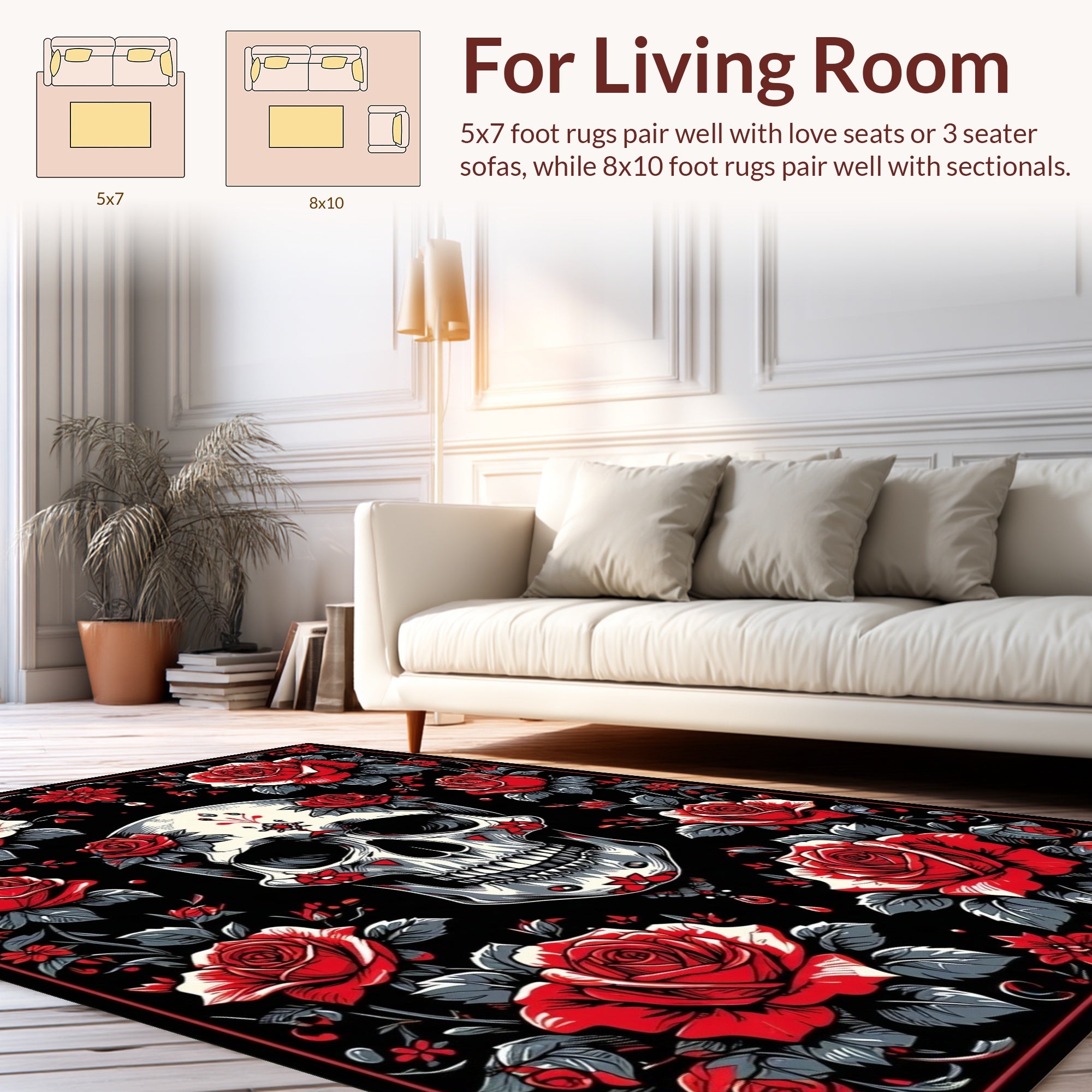 Flatwoven High Traffic Area Rug, Elegant and Black Motif, Non Slip, Stain Resistant, Washable Area Rugs for Living Room, Bedroom (Red) Overview: