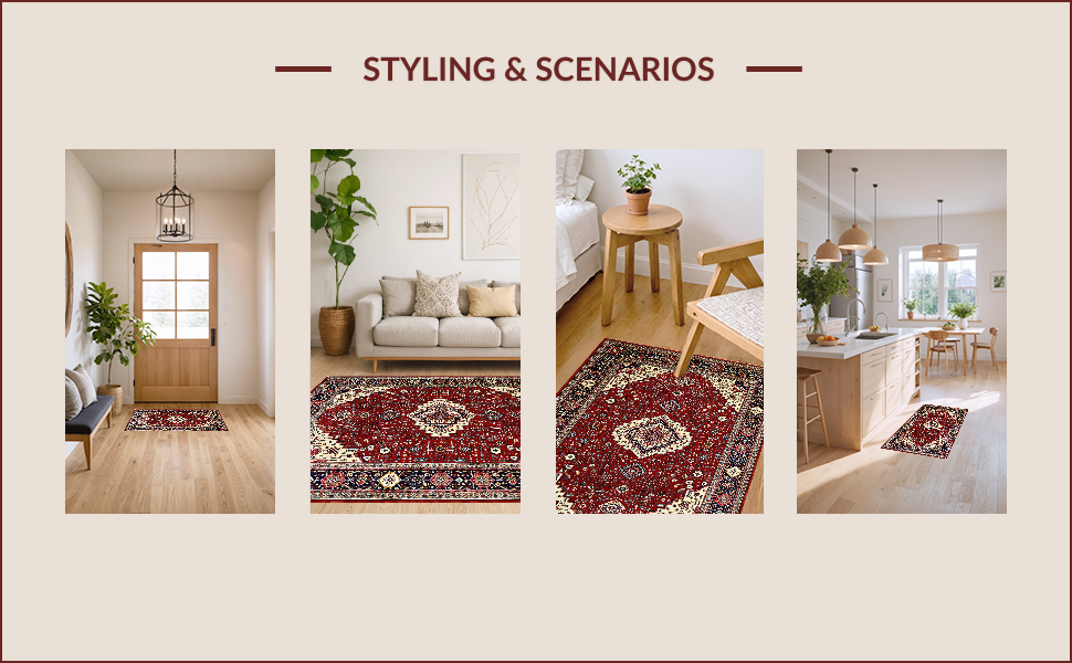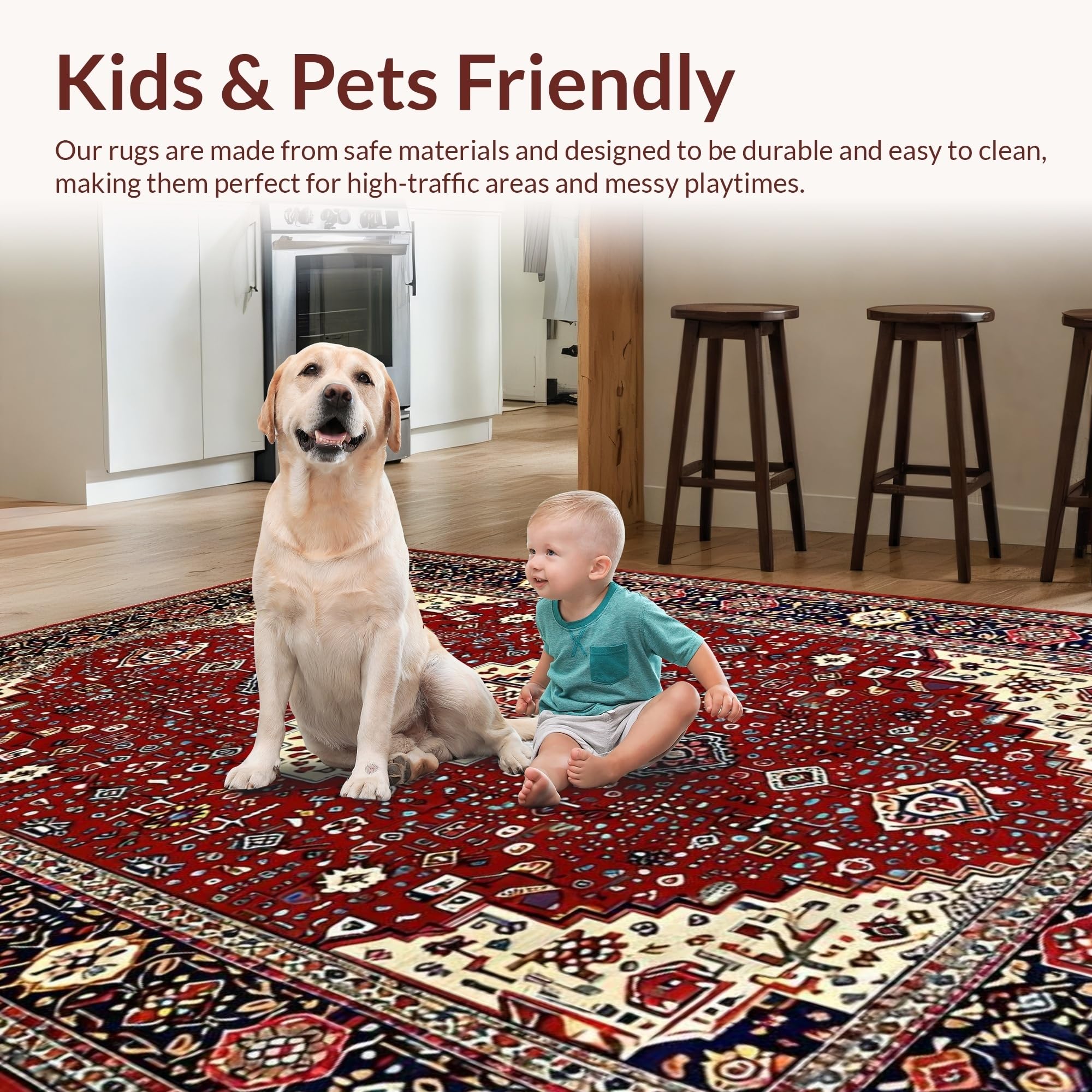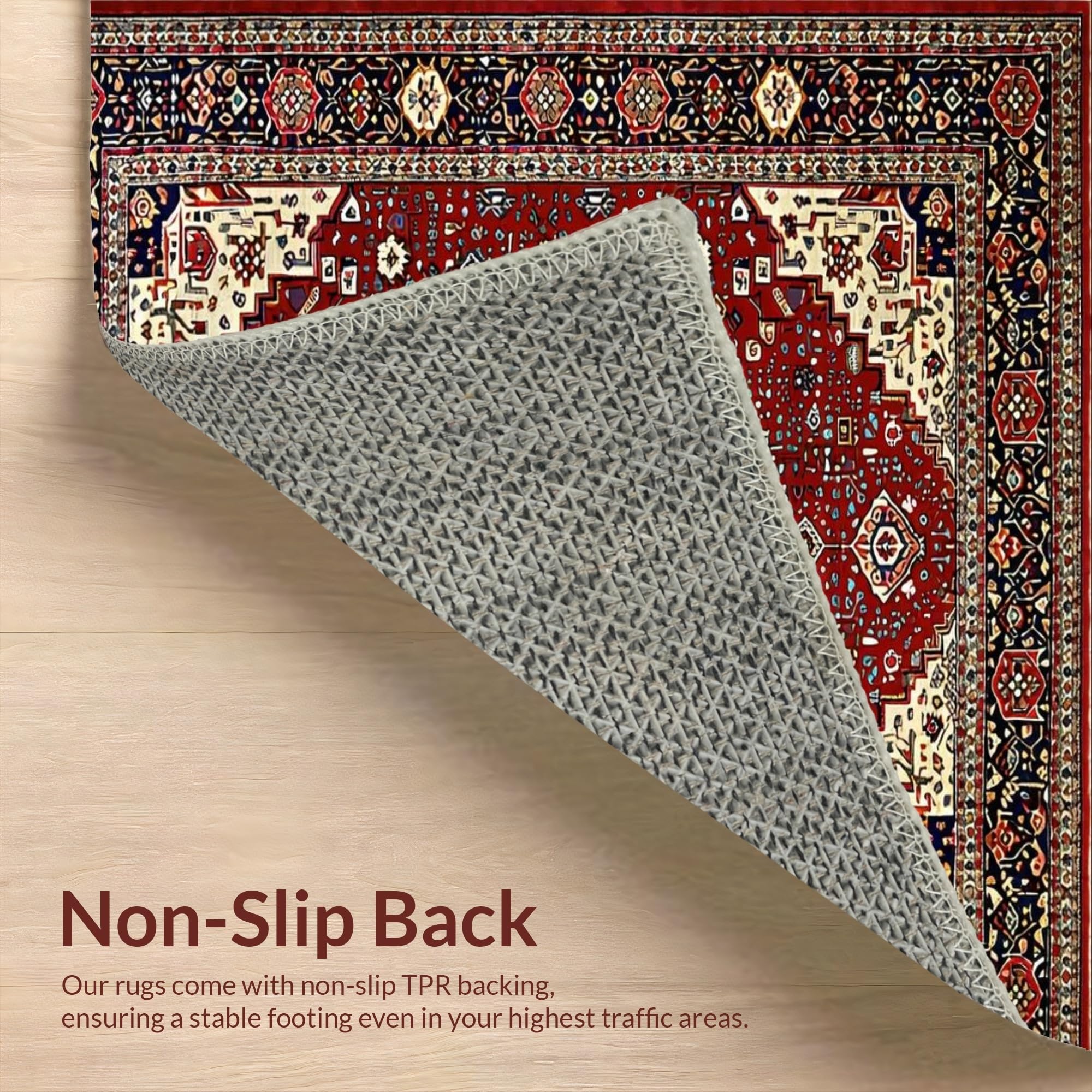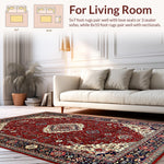 Ultra Soft Area Rug, Non Slip, Stain Resistant, Washable Area Rugs for Living Room, Bedroom, Elegant Red Floral Heritage Pattern(Red) Overview:
