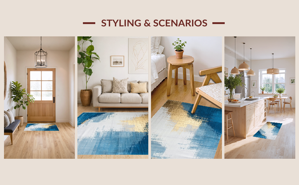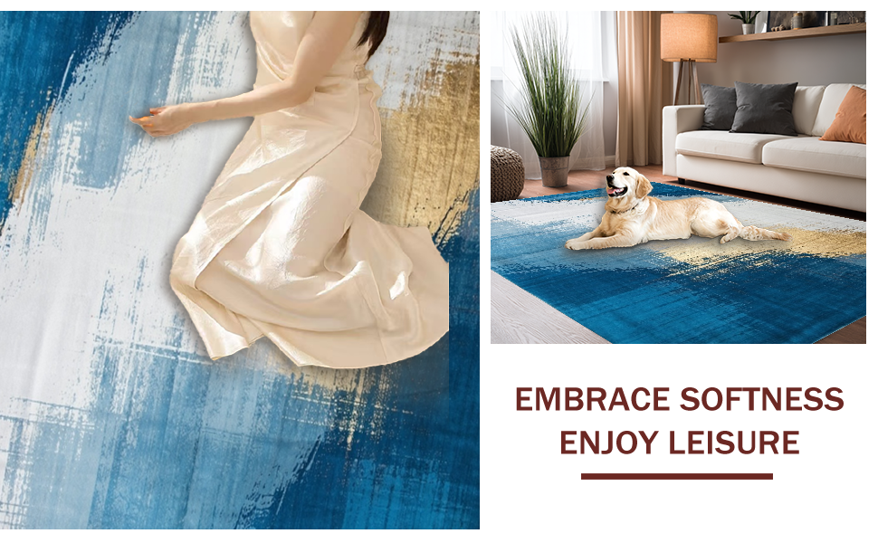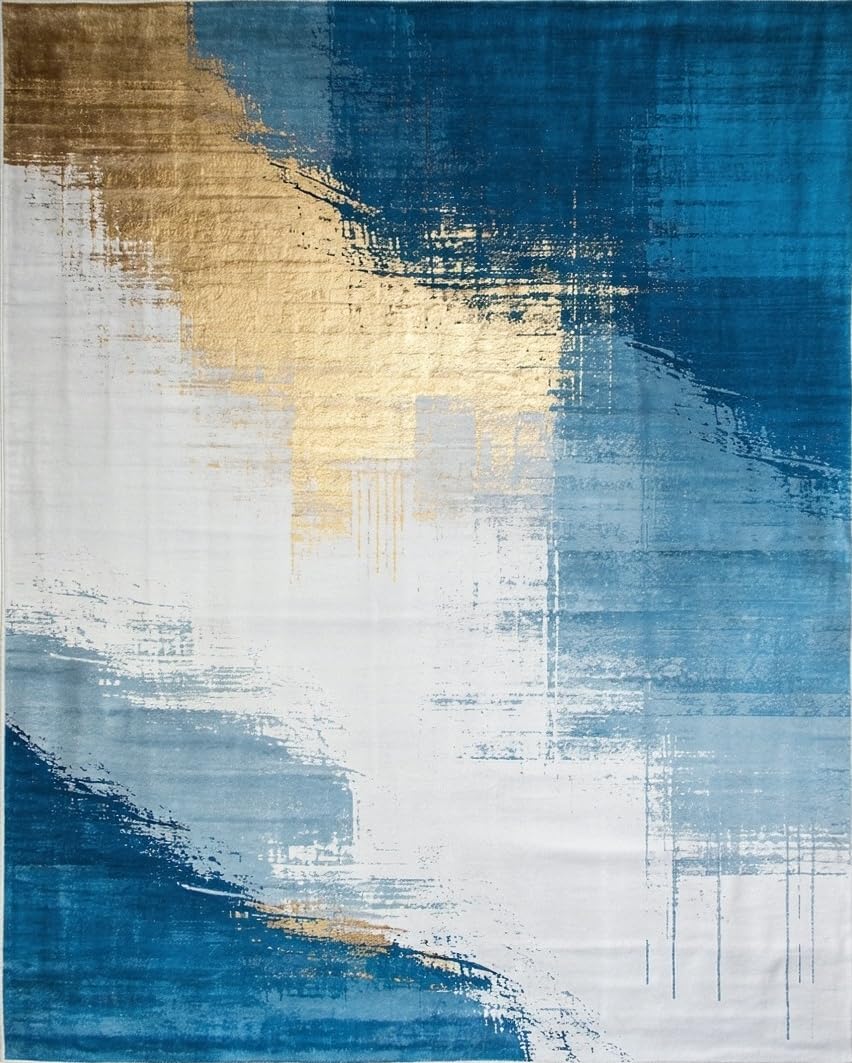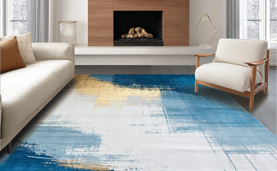 Ultra Soft Area Rug, Non Slip, Stain Resistant, Washable Area Rugs for Living Room, Bedroom, Elegant Retro Geometric Fusion(Blue) Overview: