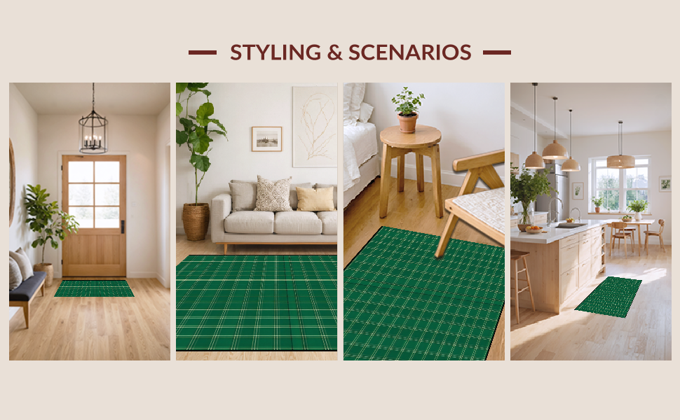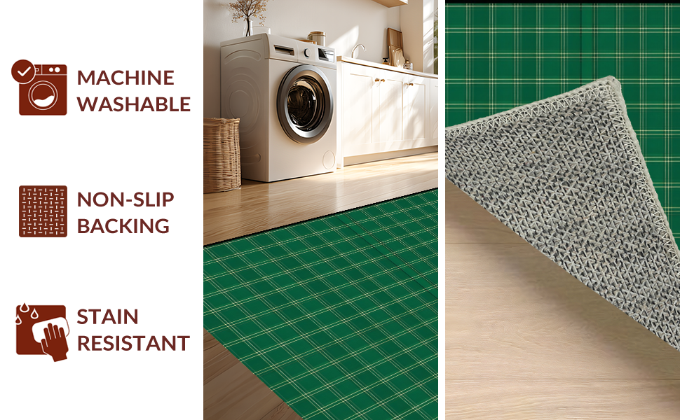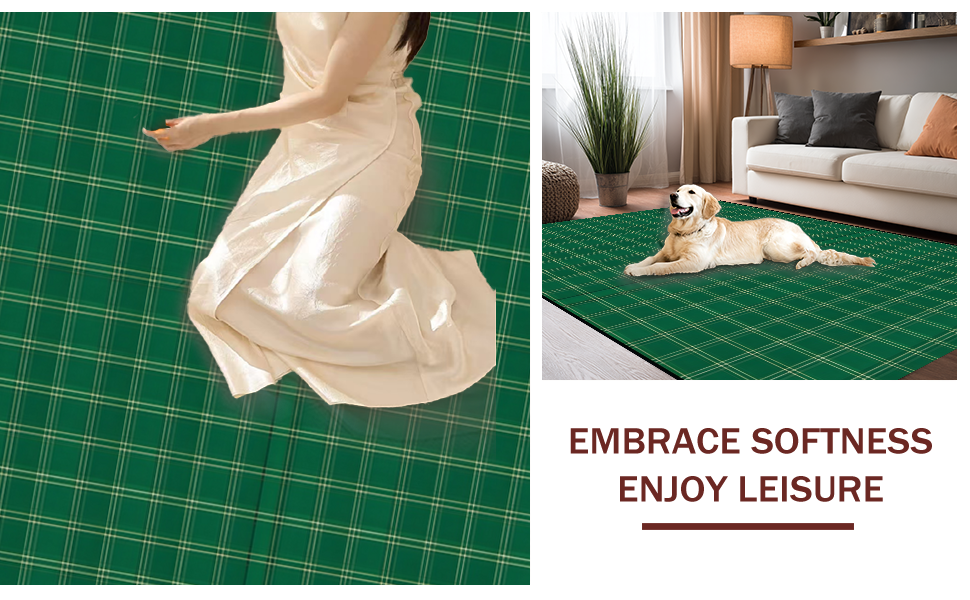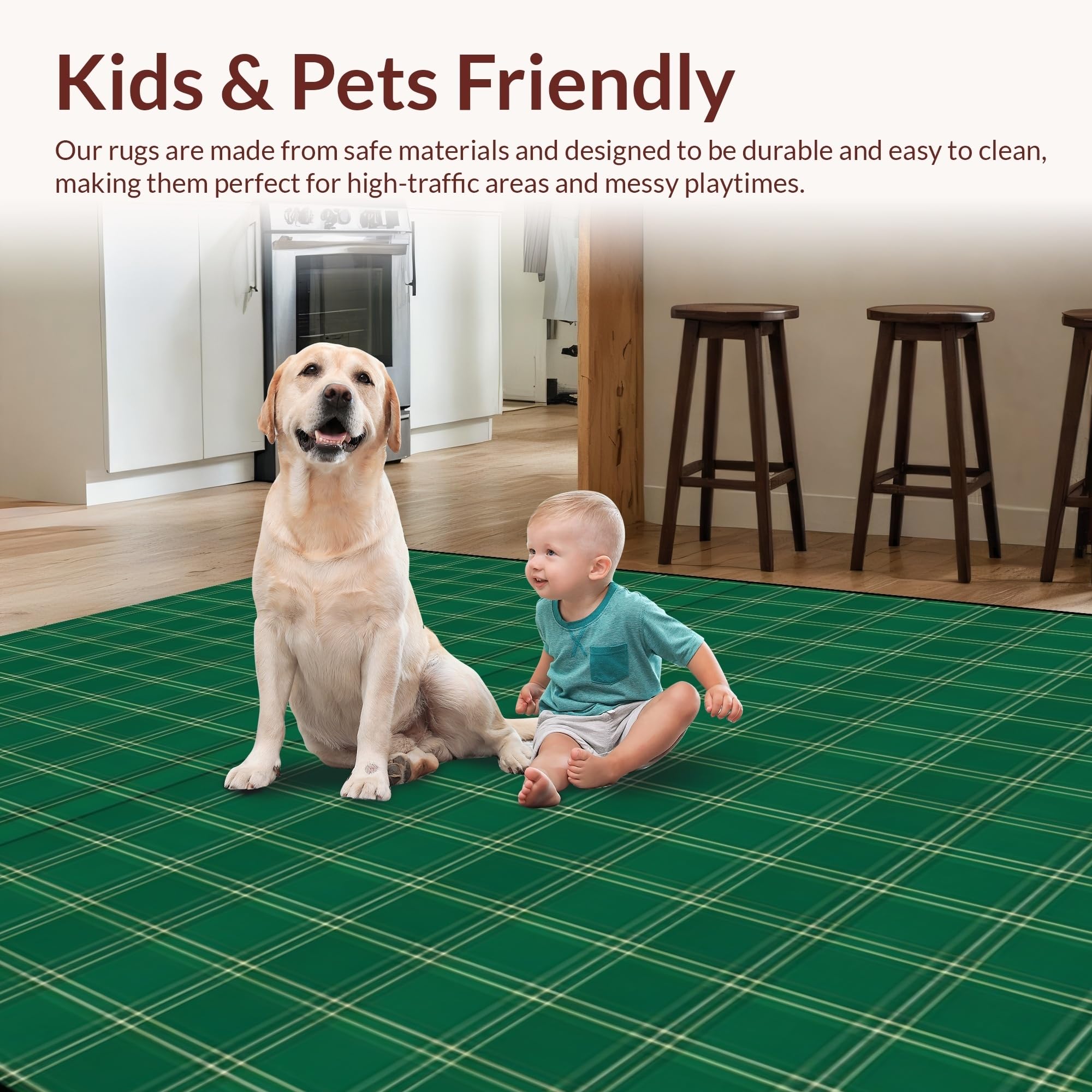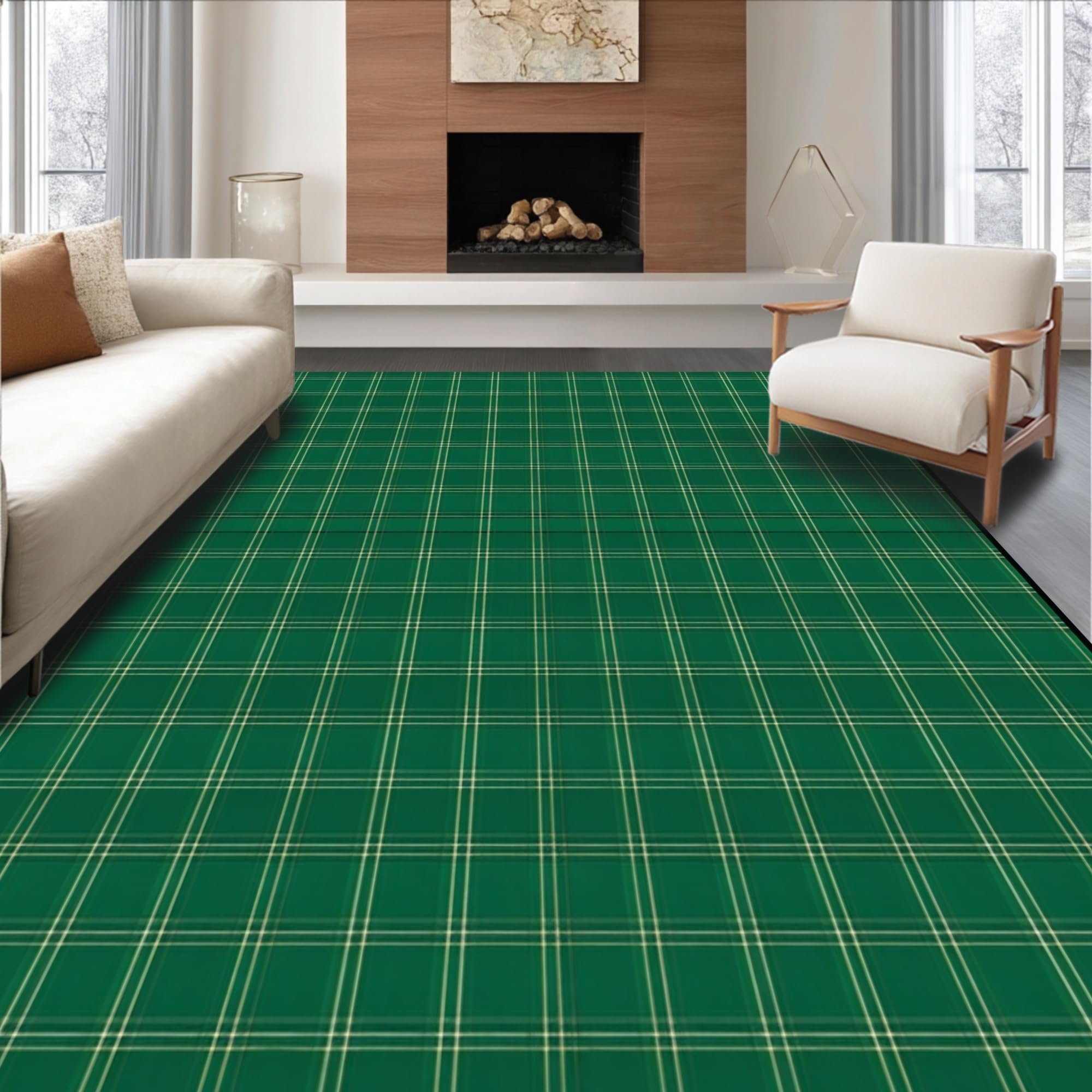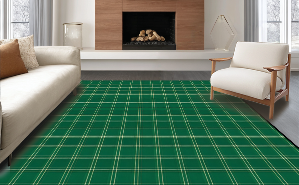 Ultra Soft Area Rug, Non Slip, Stain Resistant, Washable Area Rugs for Living Room, Bedroom, Elegant Reversible Checkered Style(Green) Overview: