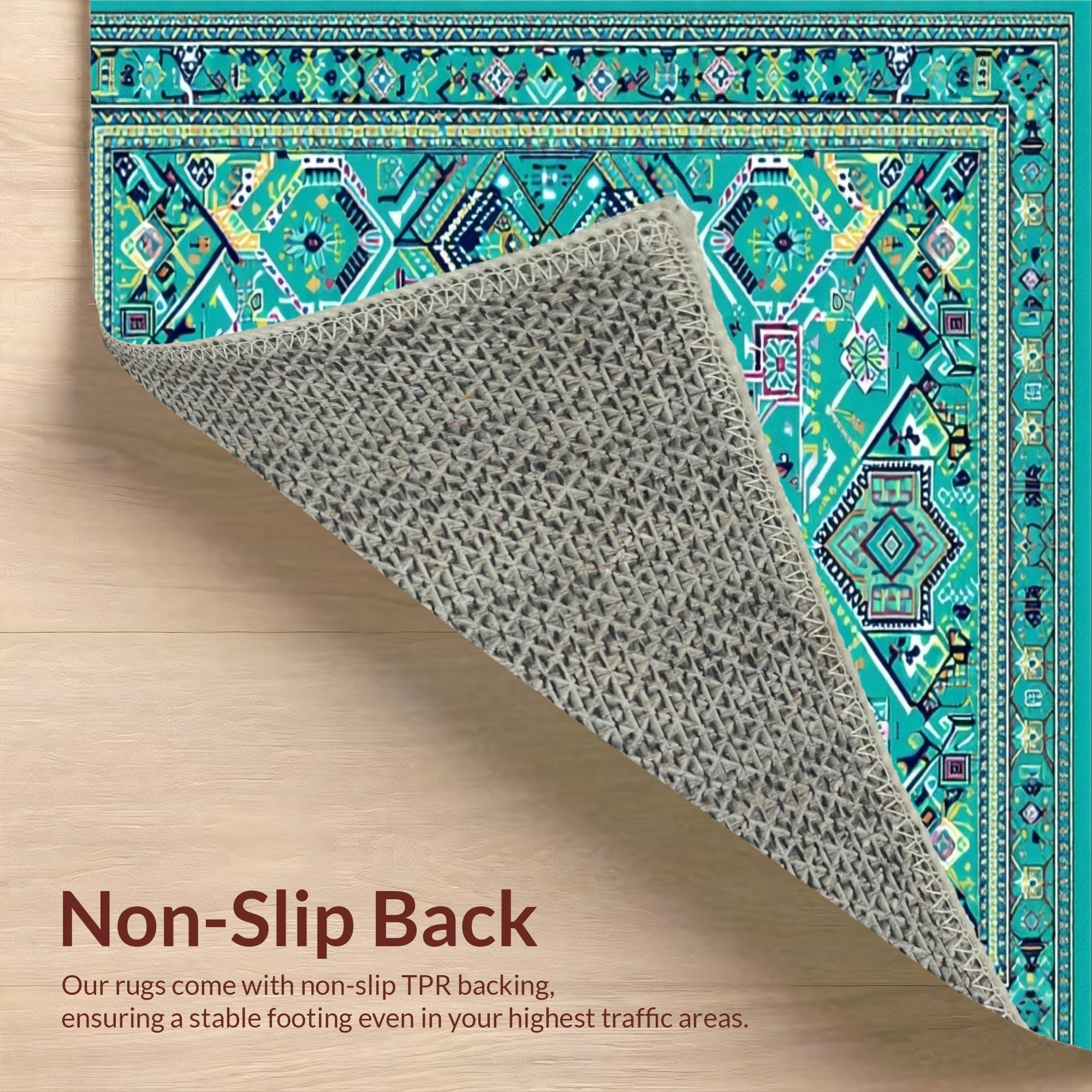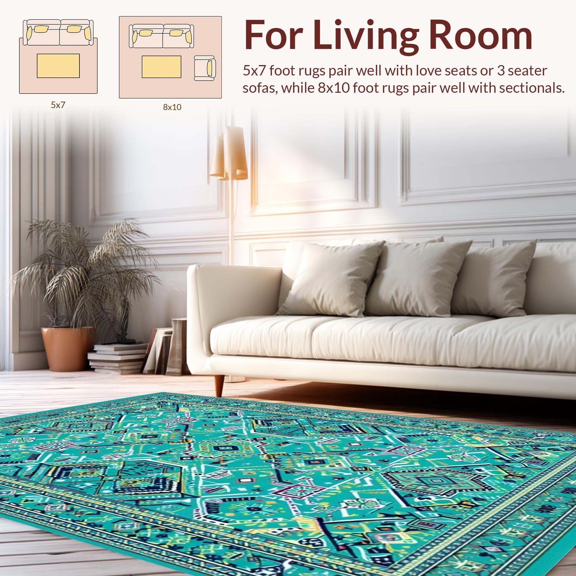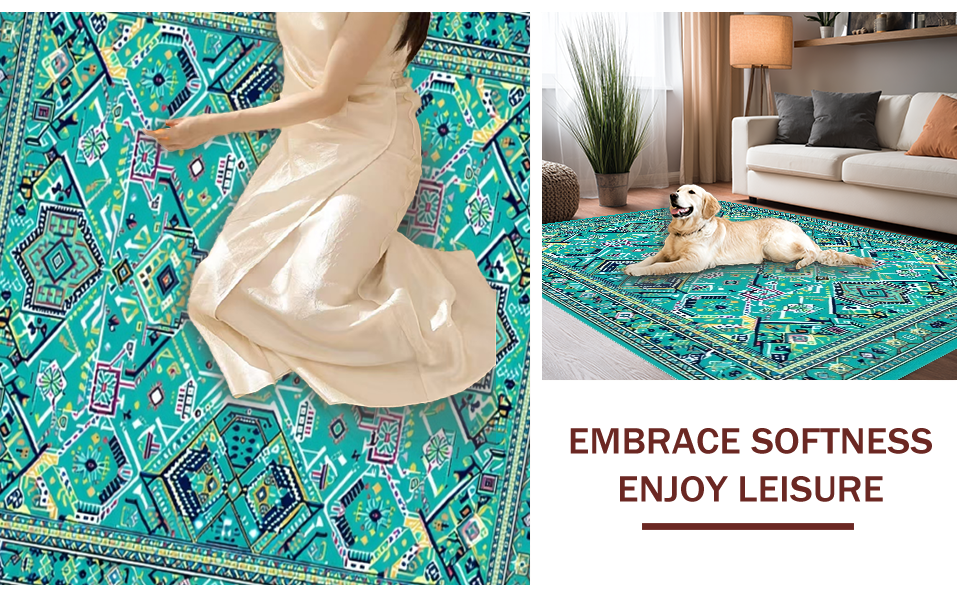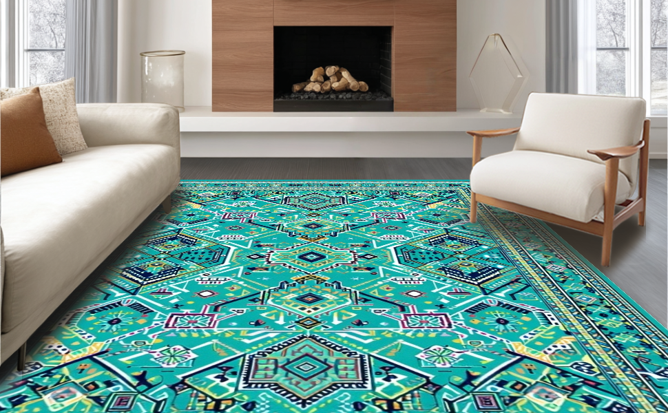 Ultra Soft Area Rug, Non Slip, Stain Resistant, Washable Area Rugs for Living Room, Bedroom, Elegant Reversible Geometric Motif(Blue) Overview: