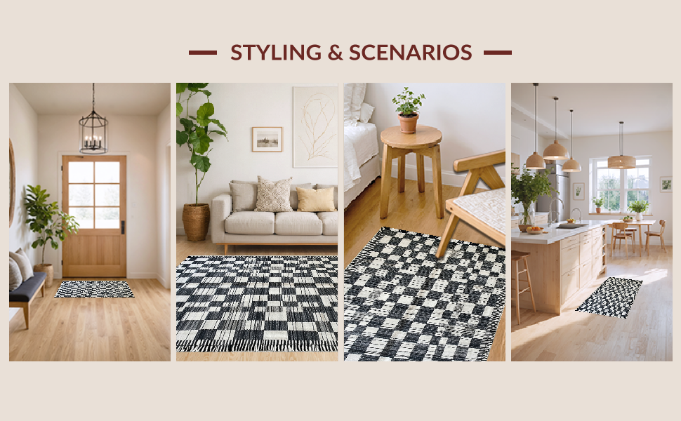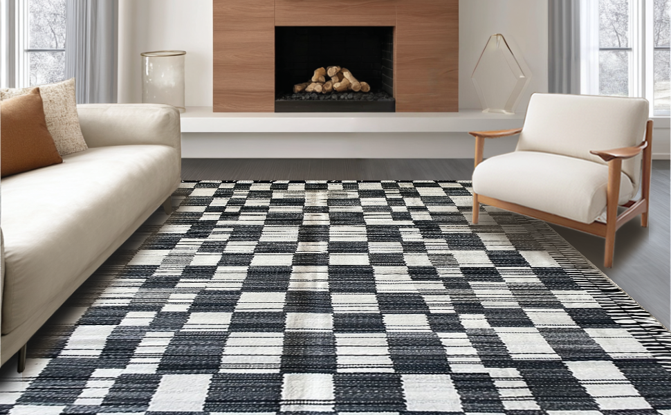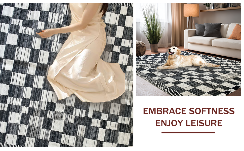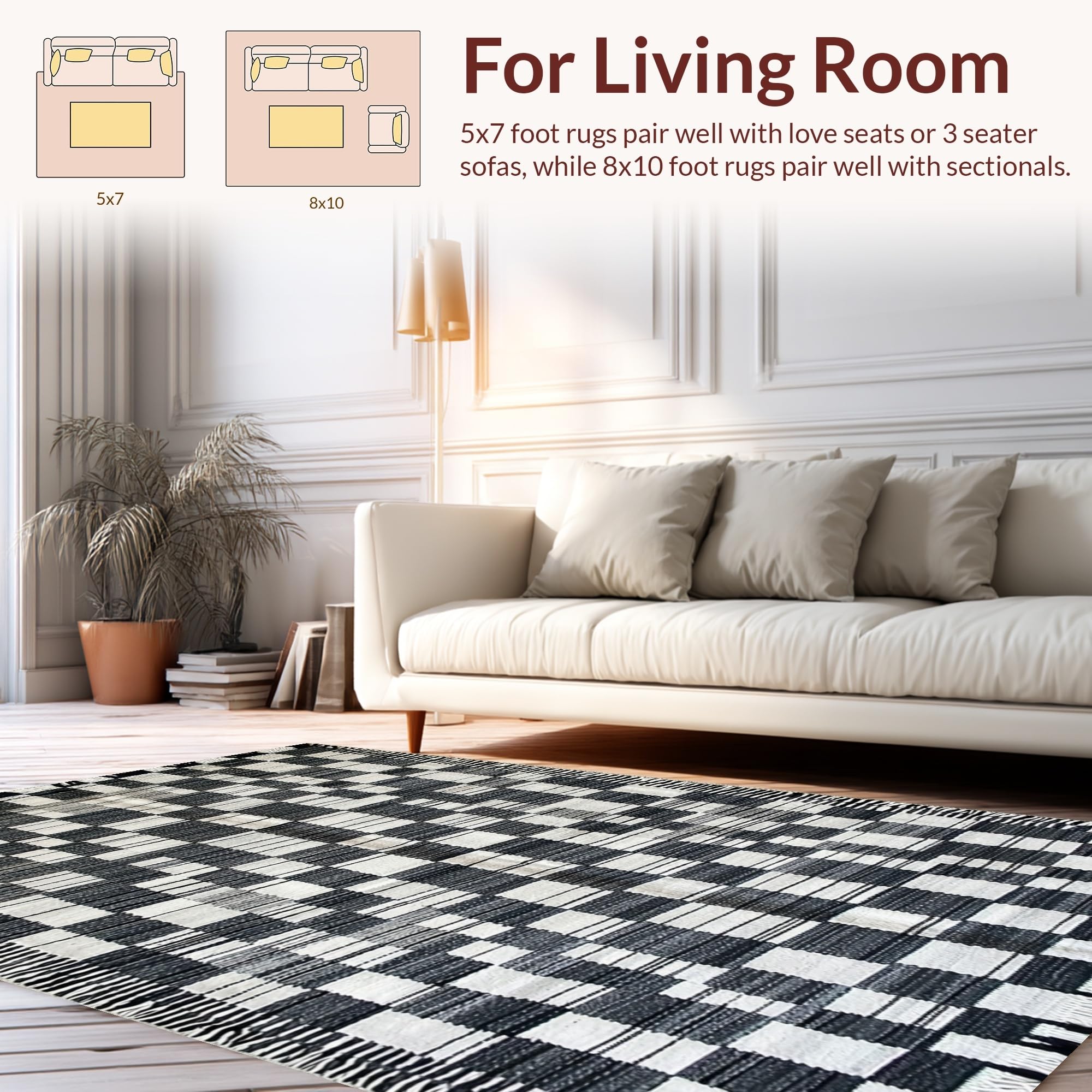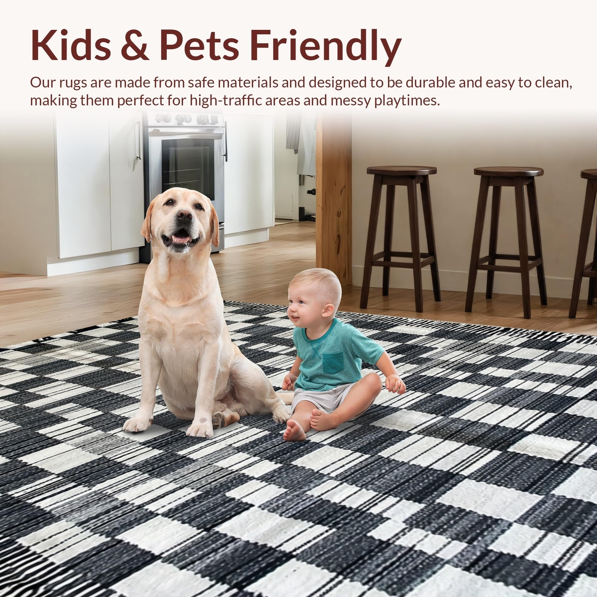 Ultra Soft Area Rug, Non Slip, Stain Resistant, Washable Area Rugs for Living Room, Bedroom, Elegant Reversible Graphic Composition(Black) Overview: