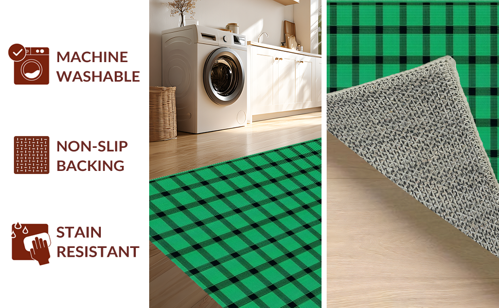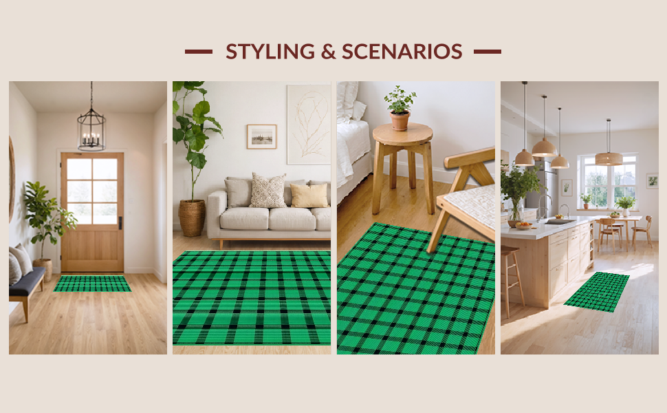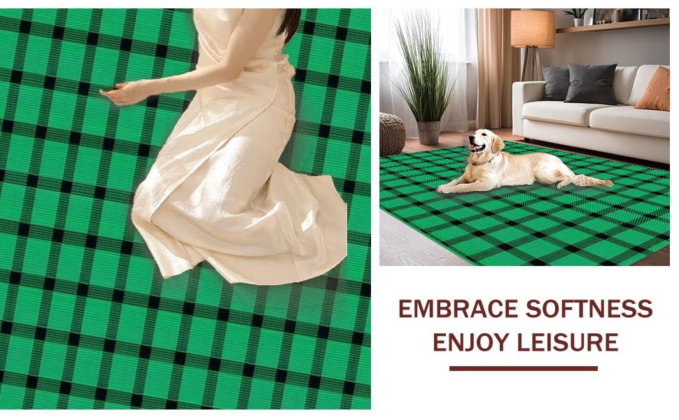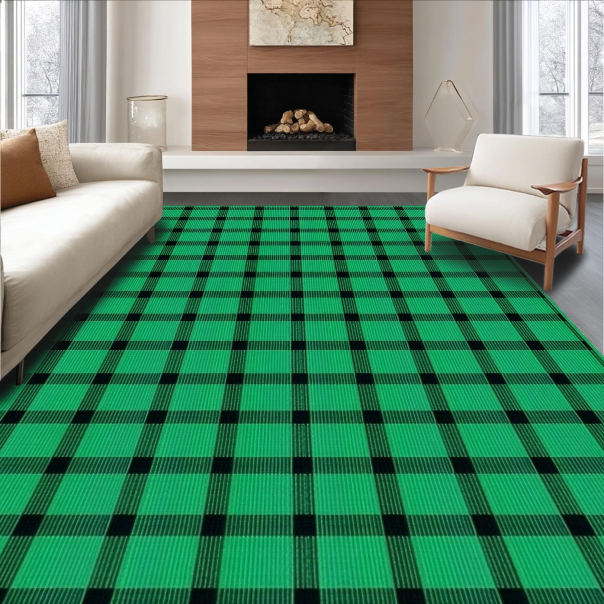 Ultra Soft Area Rug, Non Slip, Stain Resistant, Washable Area Rugs for Living Room, Bedroom, Elegant Reversible Plaid Aesthetic(Green) Overview:
