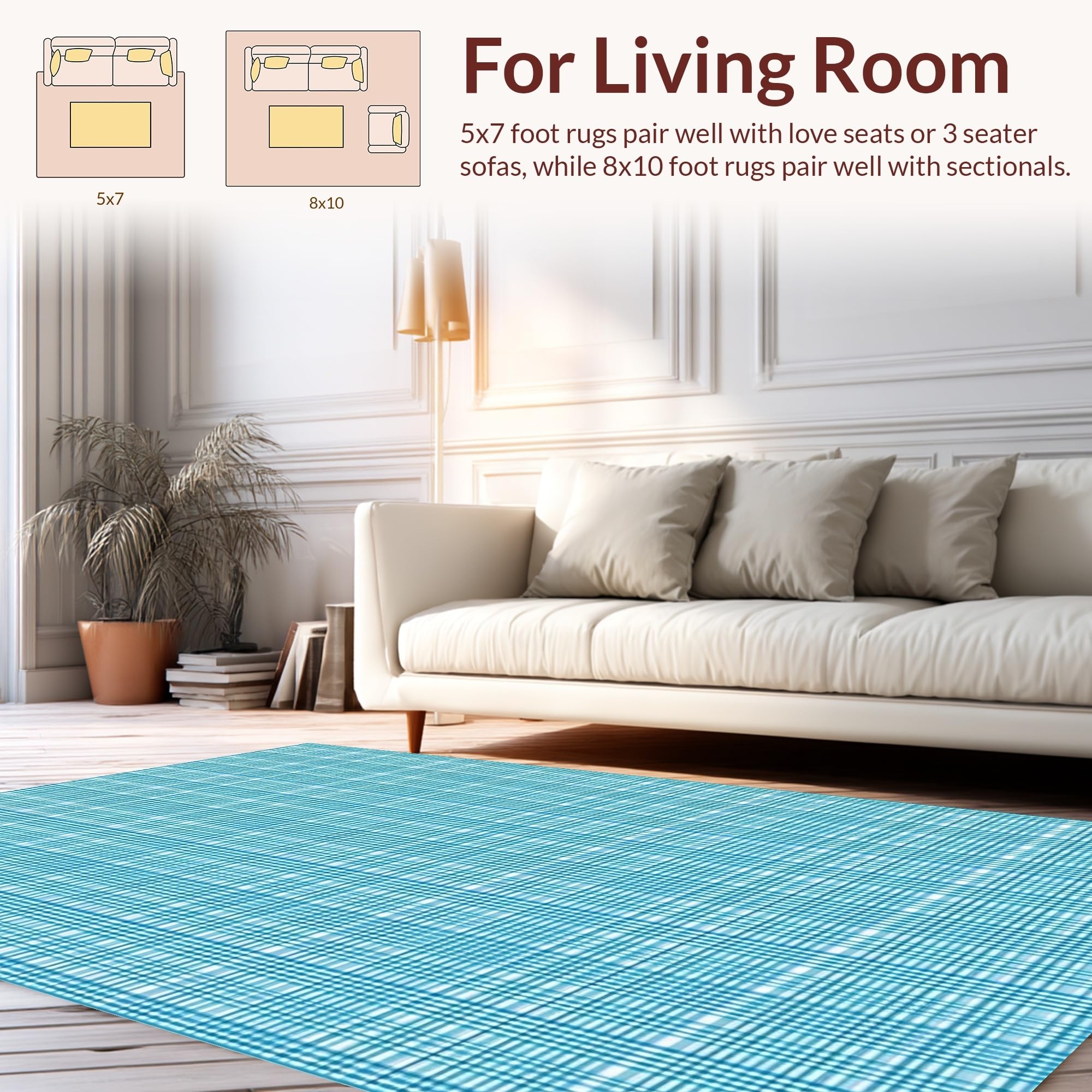 Ultra Soft Area Rug, Non Slip, Stain Resistant, Washable Area Rugs for Living Room, Bedroom, Elegant Reversible Textile Design(Blue) Overview:
