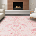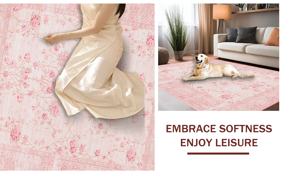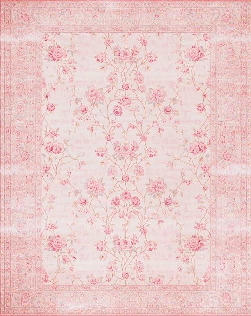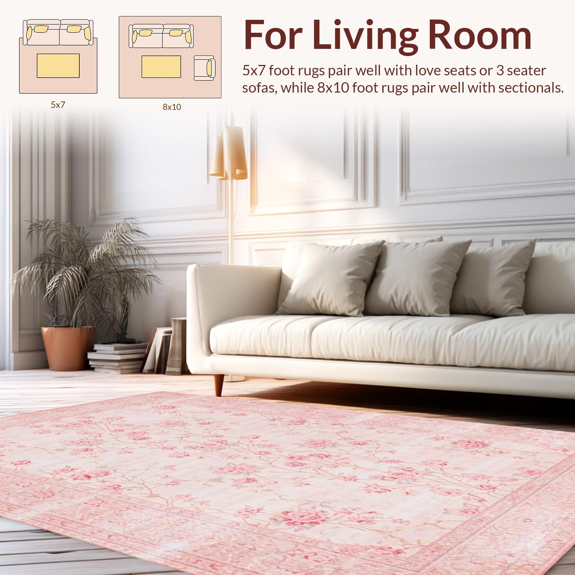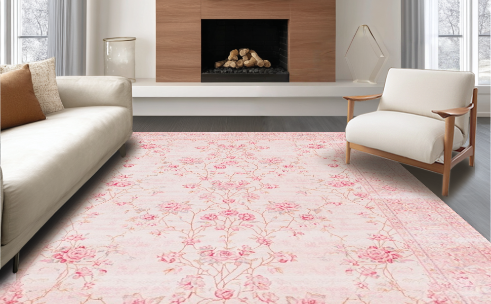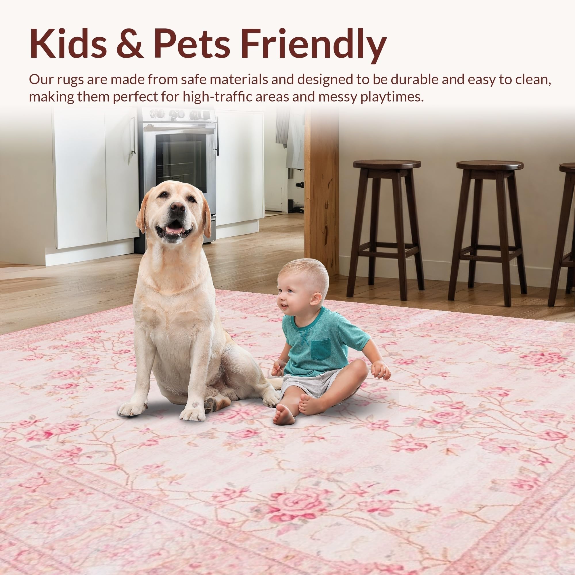 Ultra Soft Area Rug, Non Slip, Stain Resistant, Washable Area Rugs for Living Room, Bedroom, Elegant Rounded Vintage Motif(Pink) Overview: