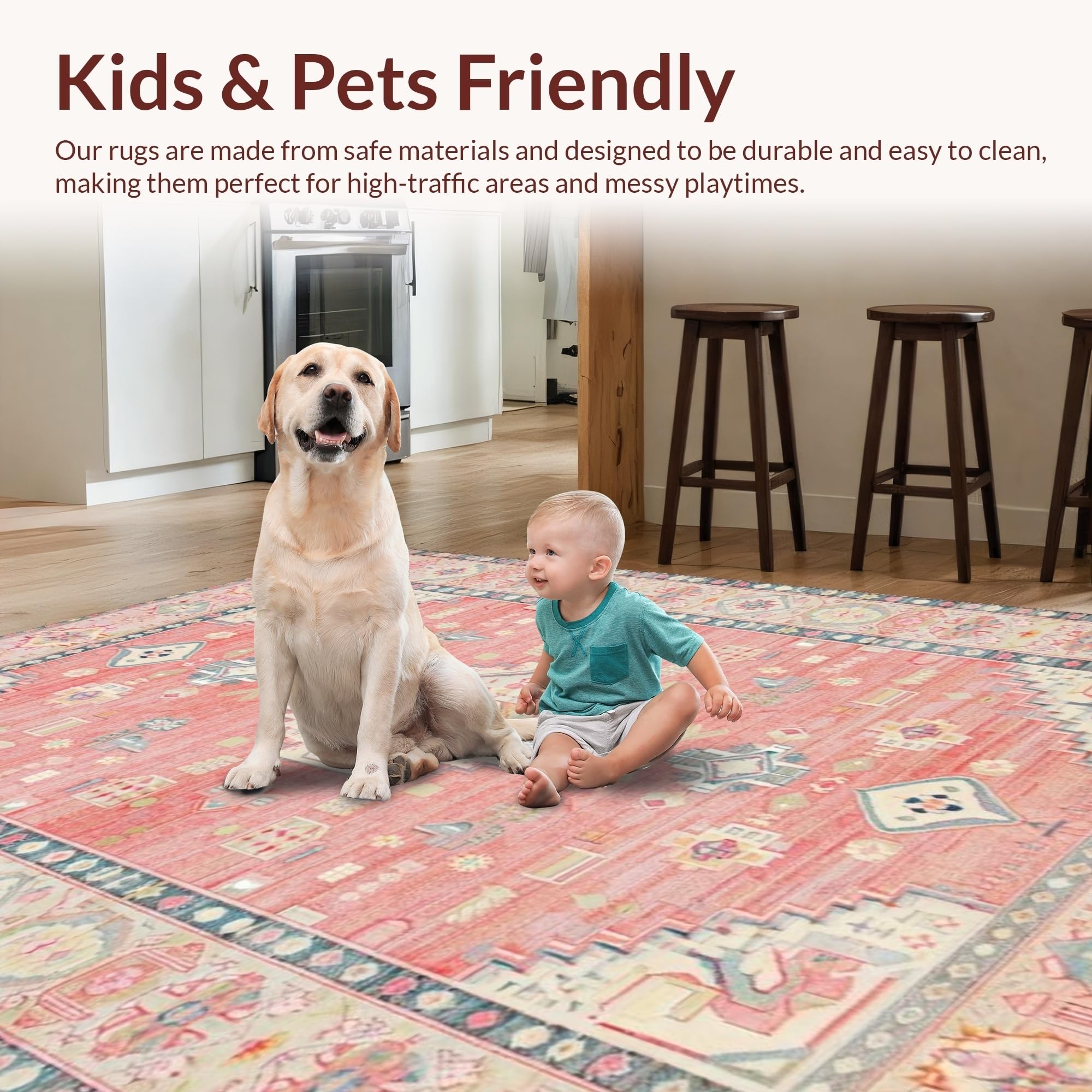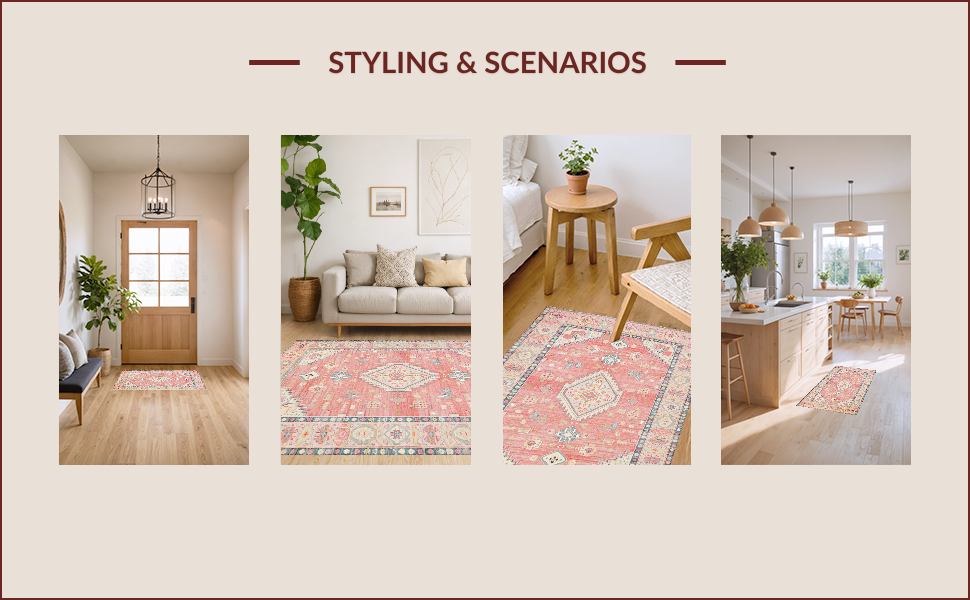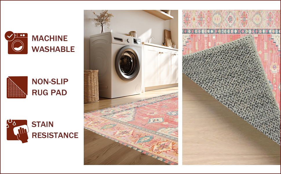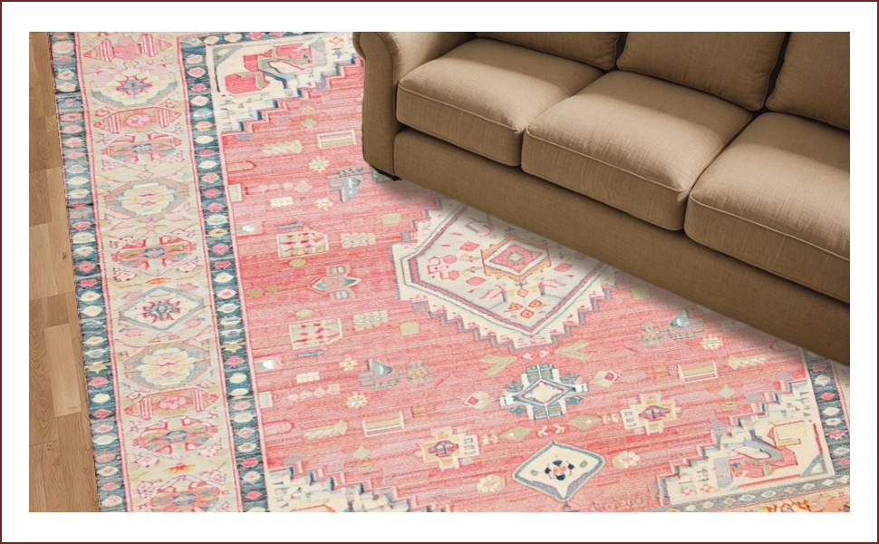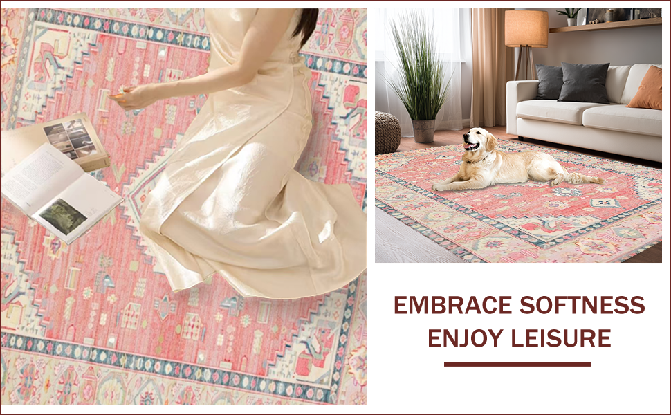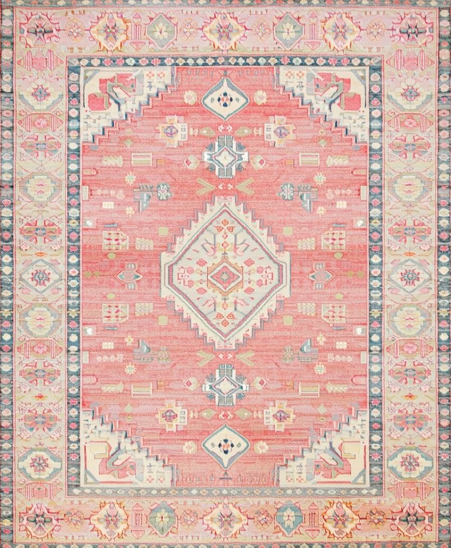 Ultra Soft Area Rug, Non Slip, Stain Resistant, Washable Area Rugs for Living Room, Bedroom, Elegant Rustic Medallion Design(Pink) Overview: