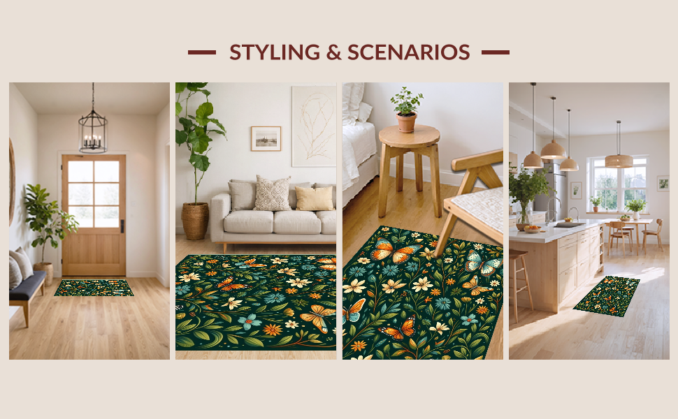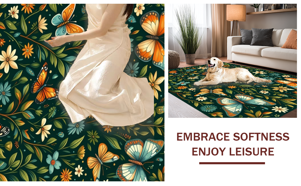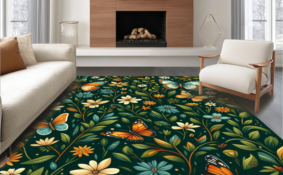 Ultra Soft Area Rug, Non Slip, Stain Resistant, Washable Area Rugs for Living Room, Bedroom, Elegant Rustic Nature Motif(Green) Overview: