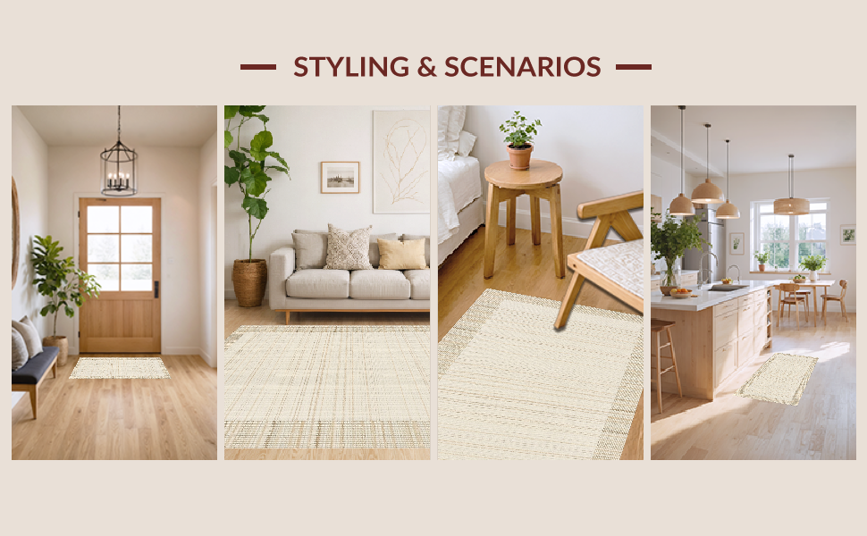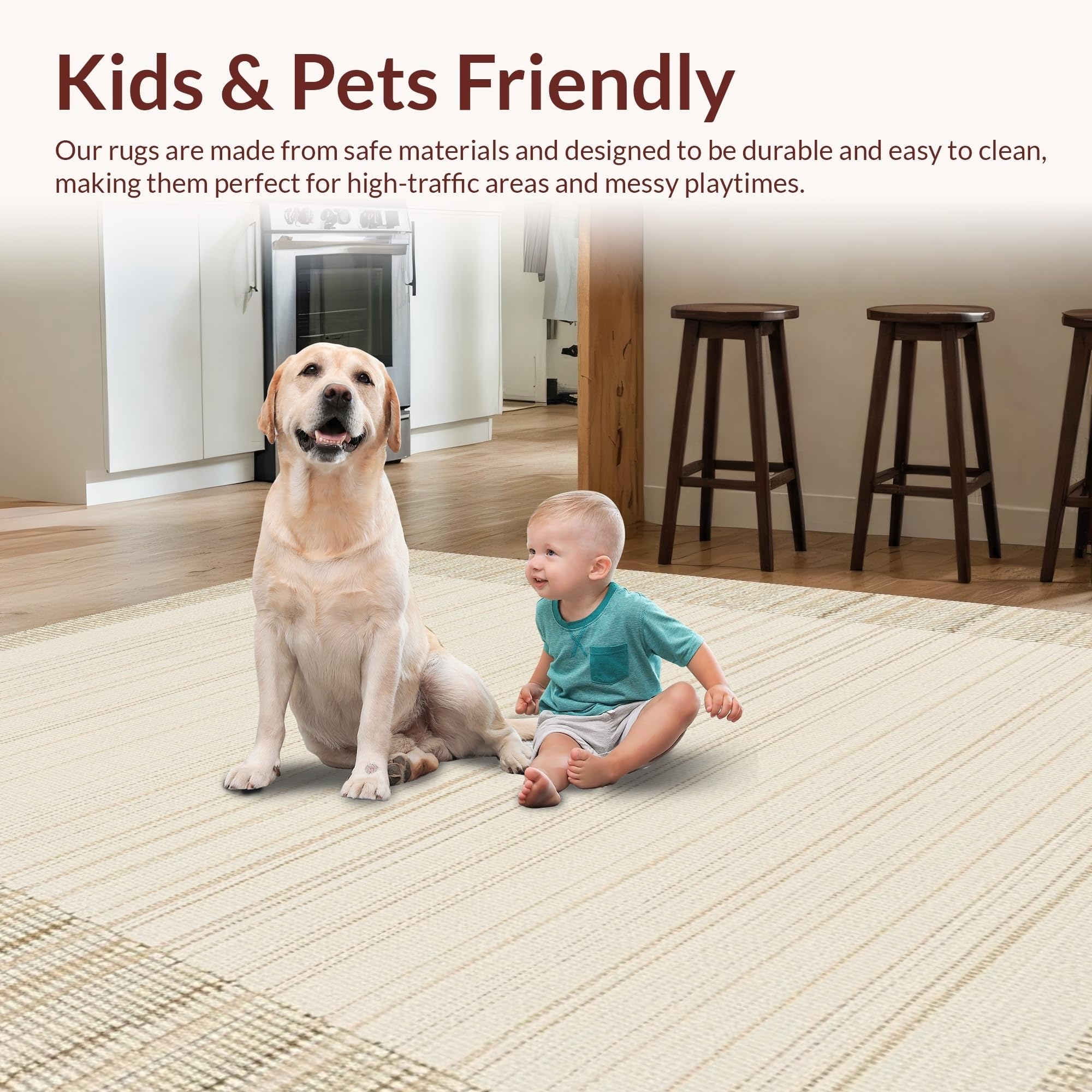 Ultra Soft Area Rug, Non Slip, Stain Resistant, Washable Area Rugs for Living Room, Bedroom, Elegant Rustic Scalloped Aesthetic(Beige) Overview: