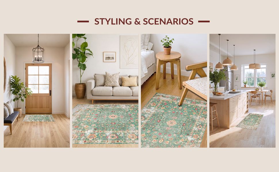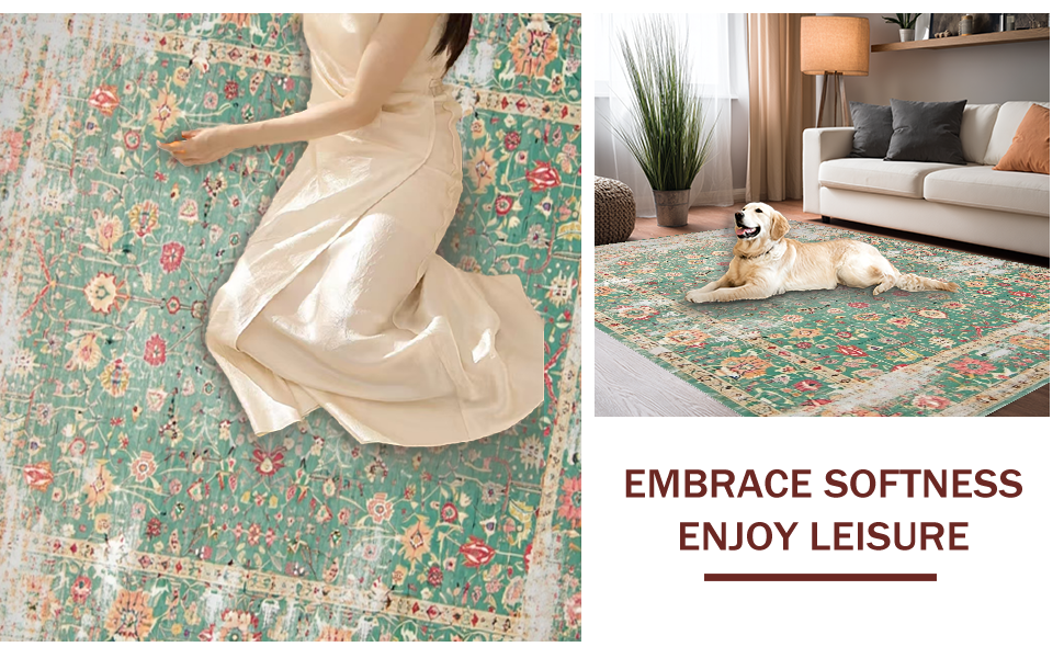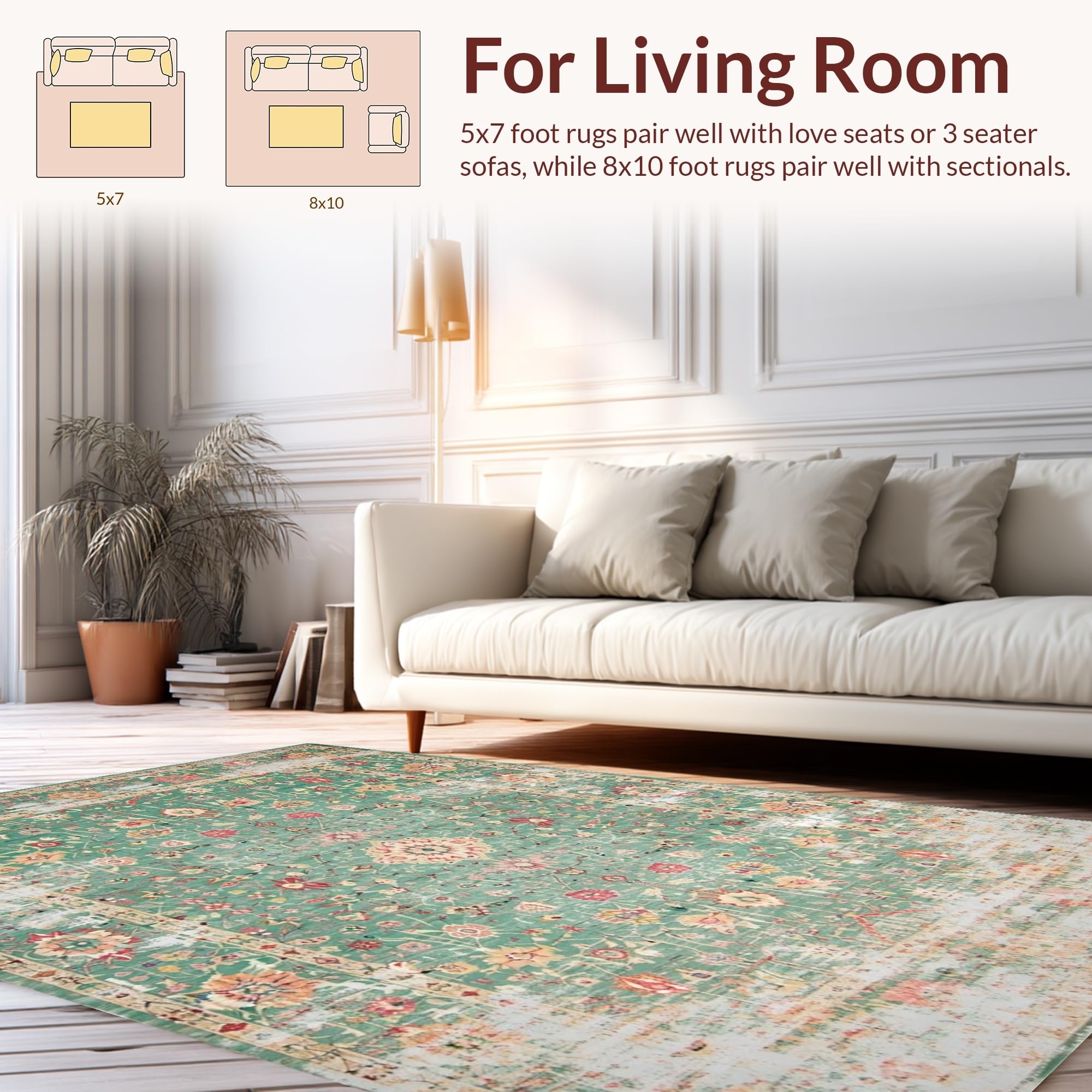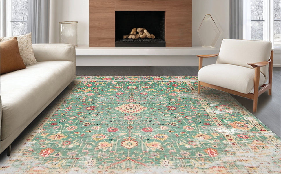 Ultra Soft Area Rug, Non Slip, Stain Resistant, Washable Area Rugs for Living Room, Bedroom, Elegant Sage Floral Arrangement(Green) Overview: