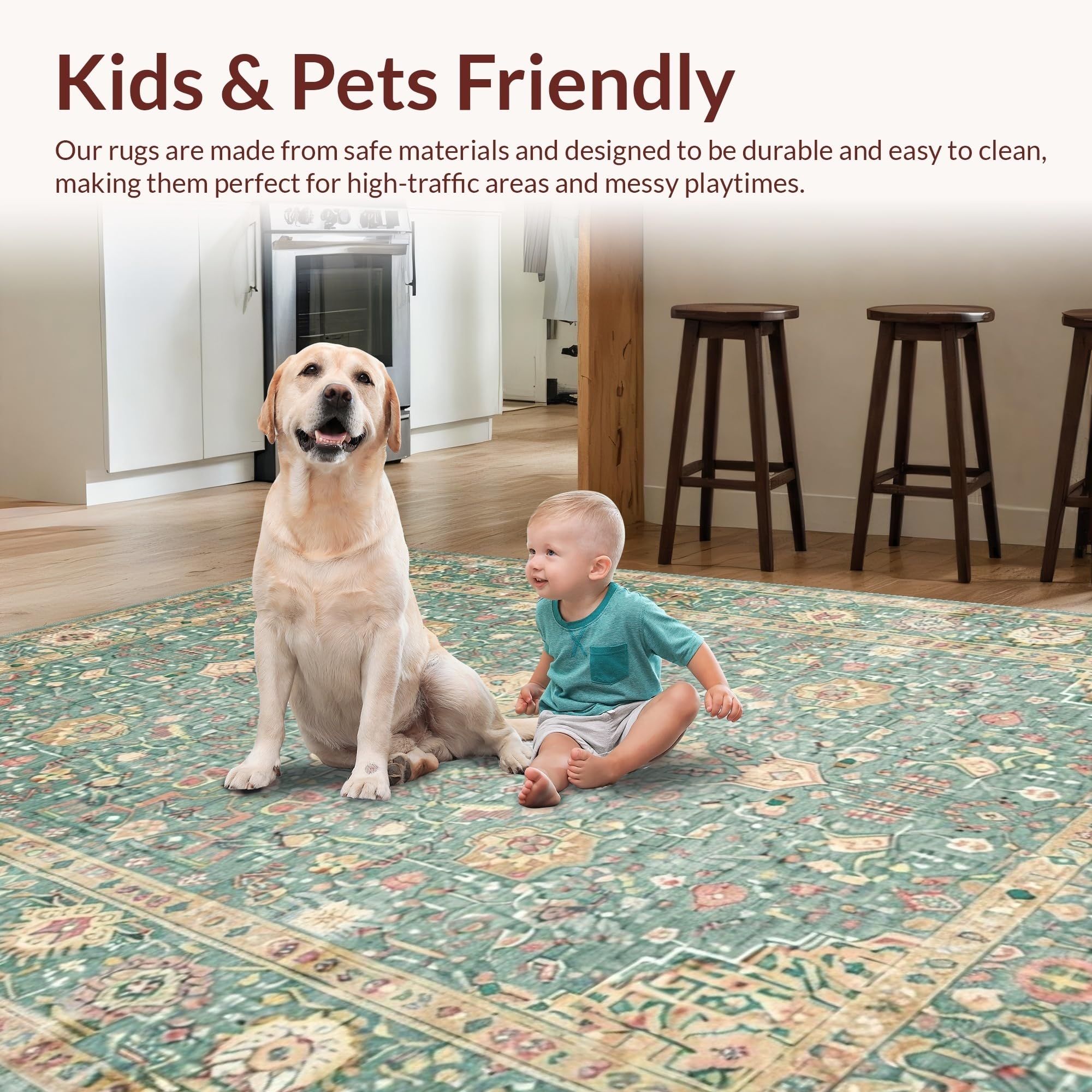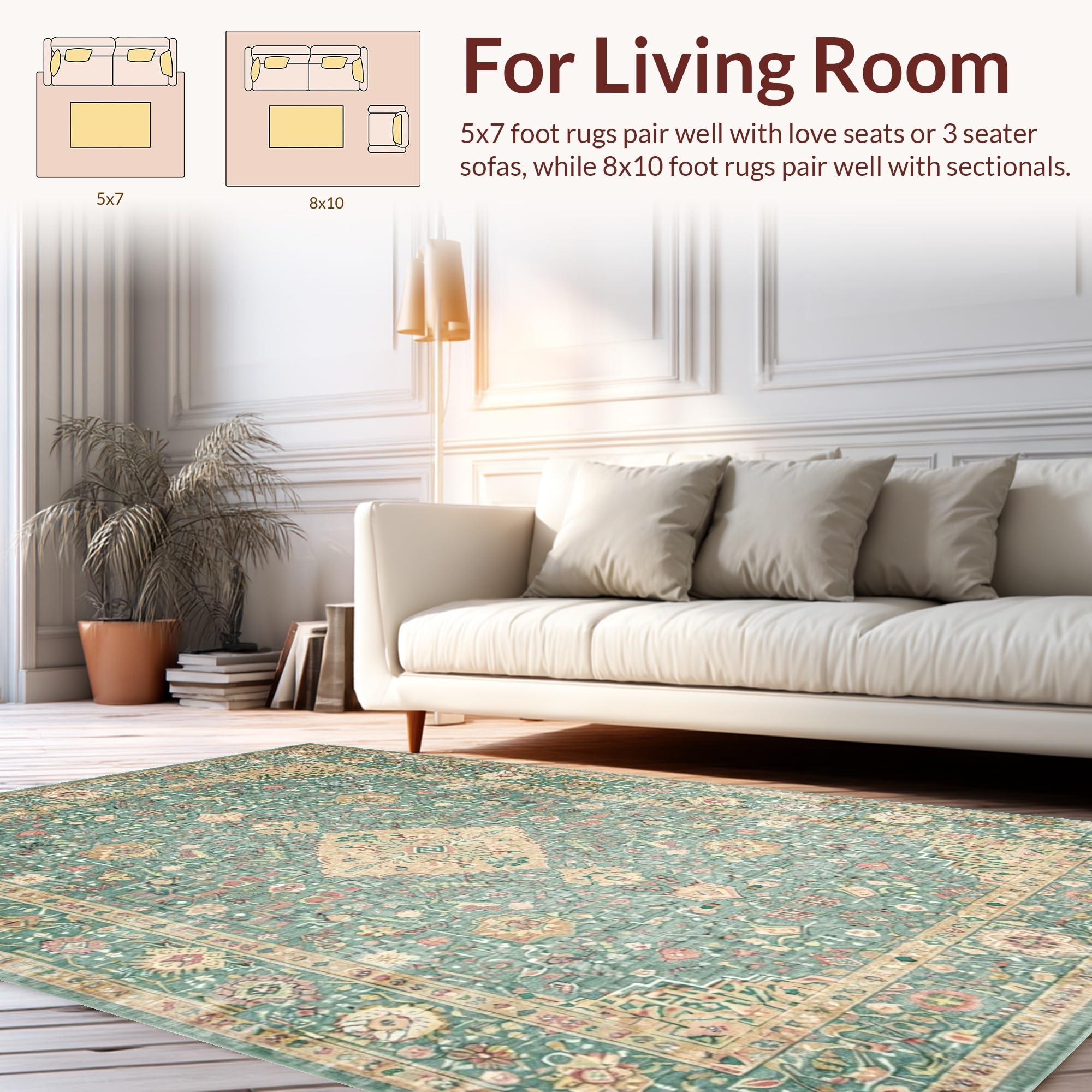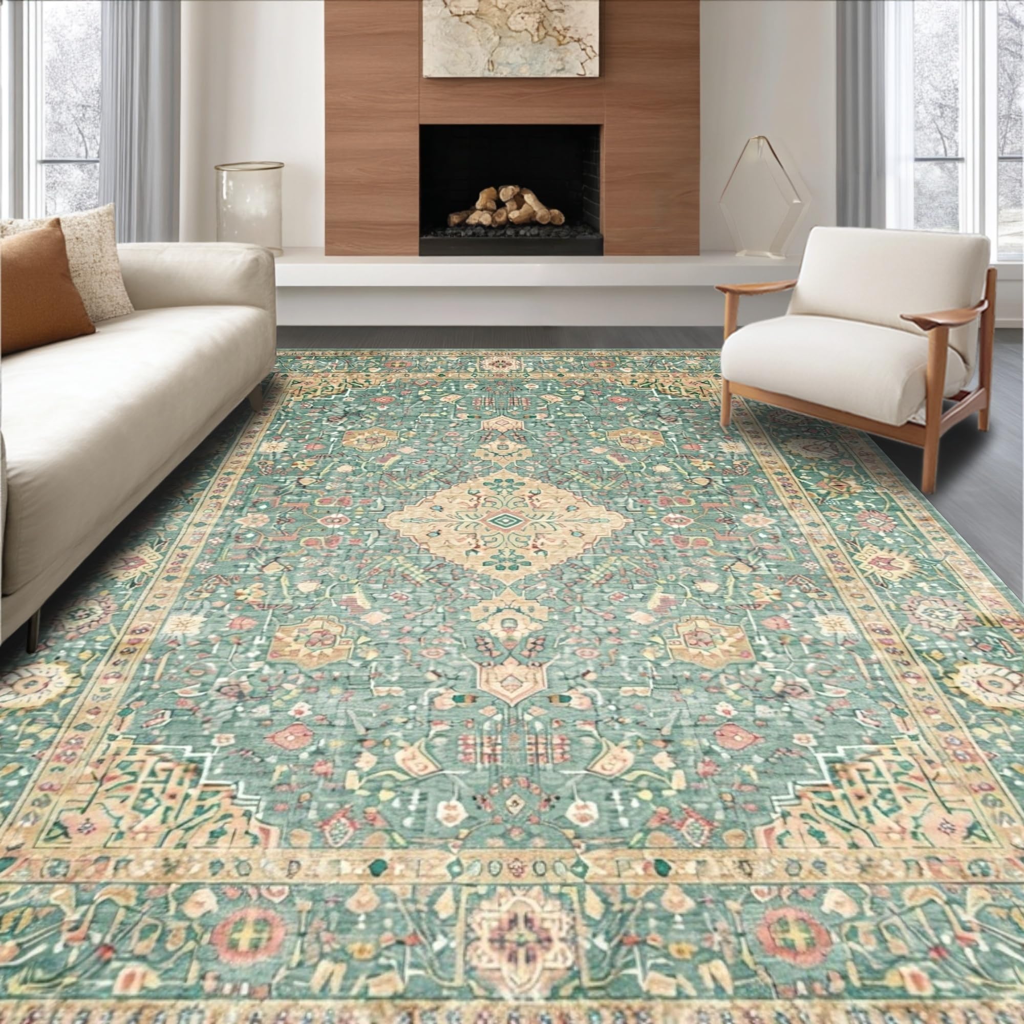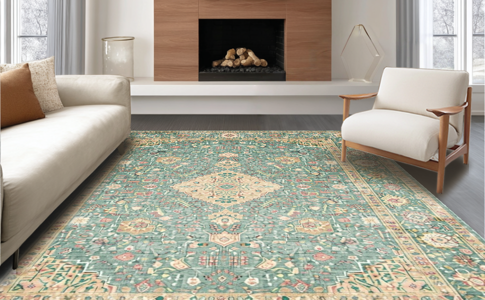 Ultra Soft Area Rug, Non Slip, Stain Resistant, Washable Area Rugs for Living Room, Bedroom, Elegant Sage Green Trellis Design(Blue) Overview: