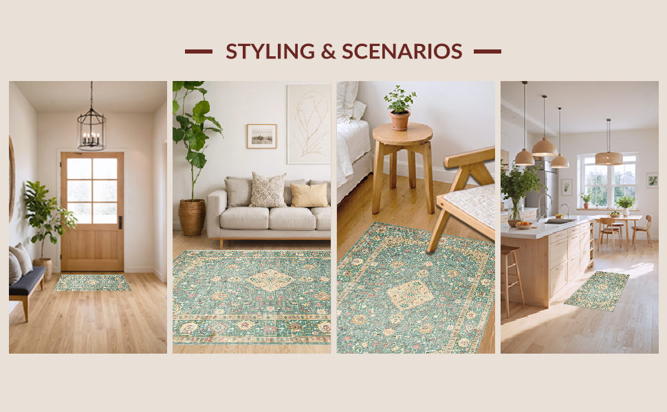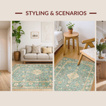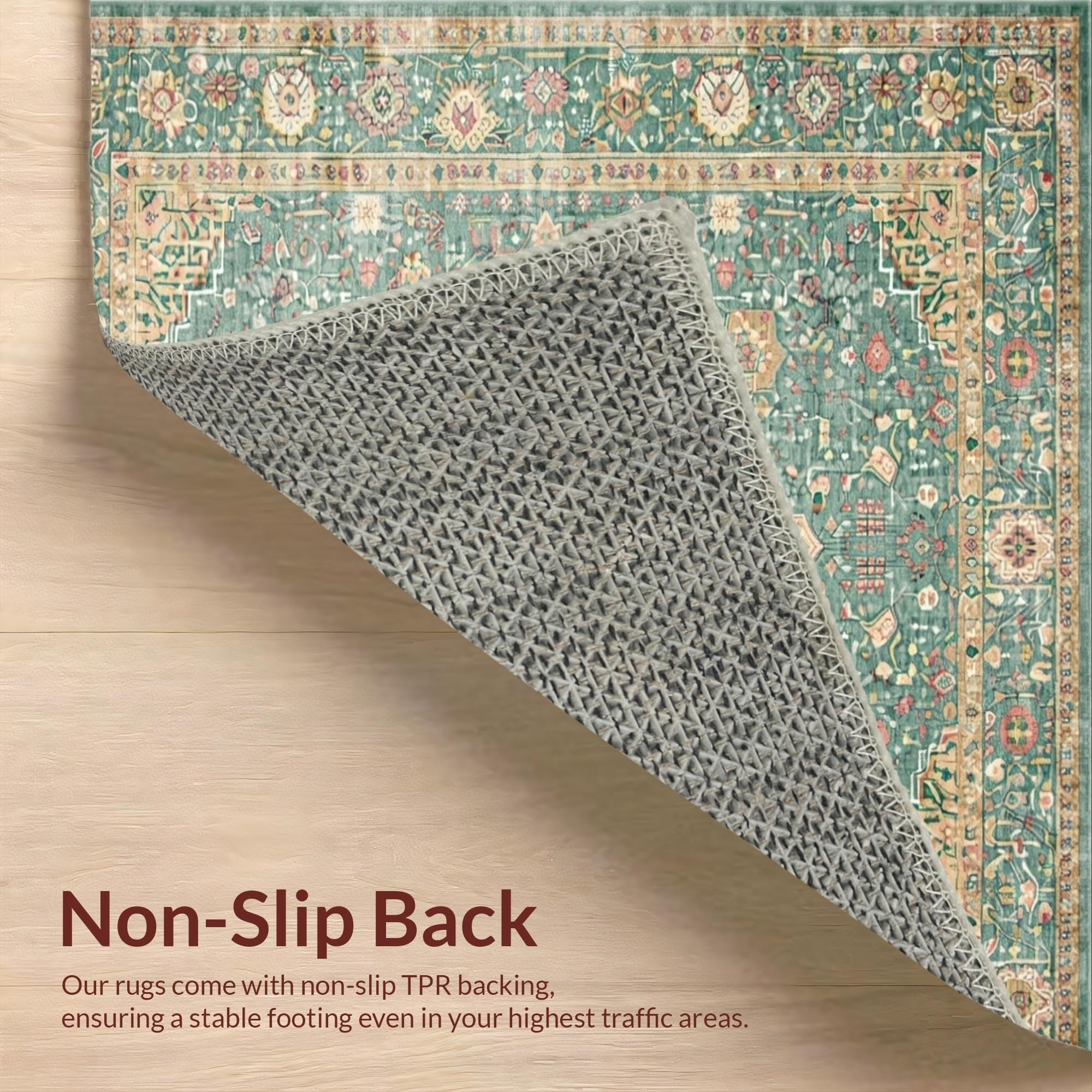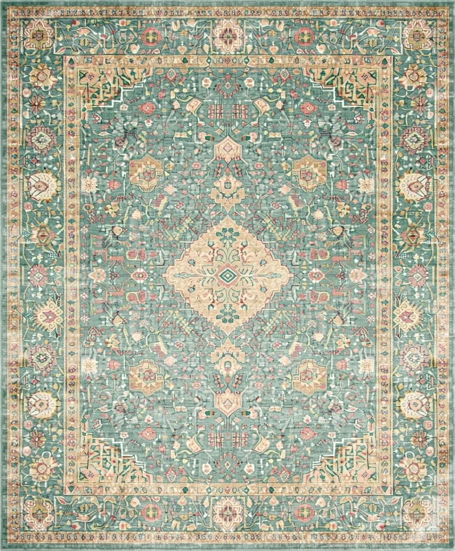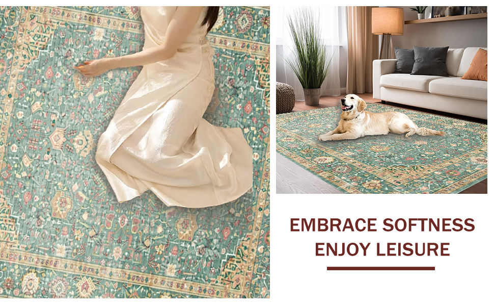 Ultra Soft Area Rug, Non Slip, Stain Resistant, Washable Area Rugs for Living Room, Bedroom, Elegant Sage Green Trellis Design(Blue) Overview: