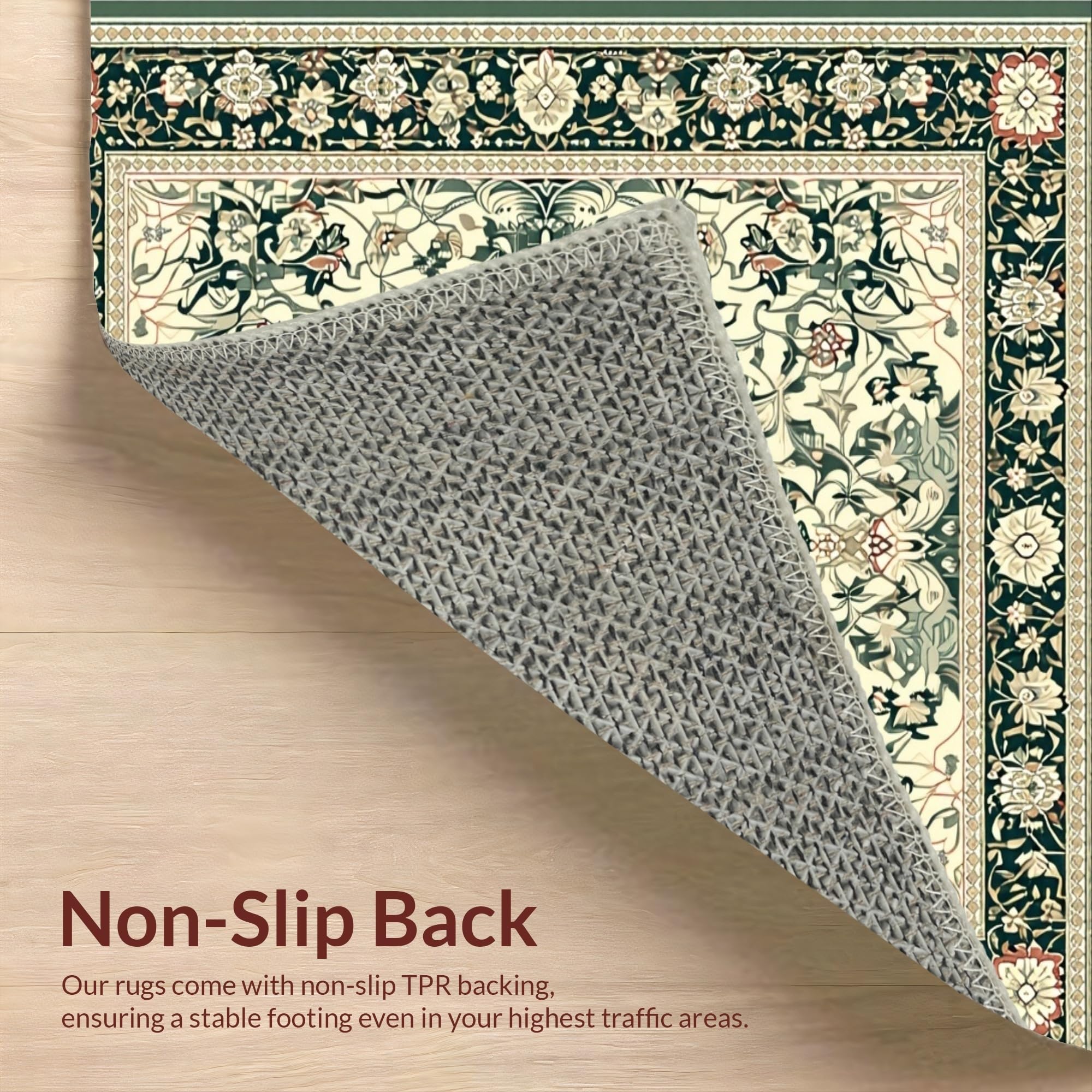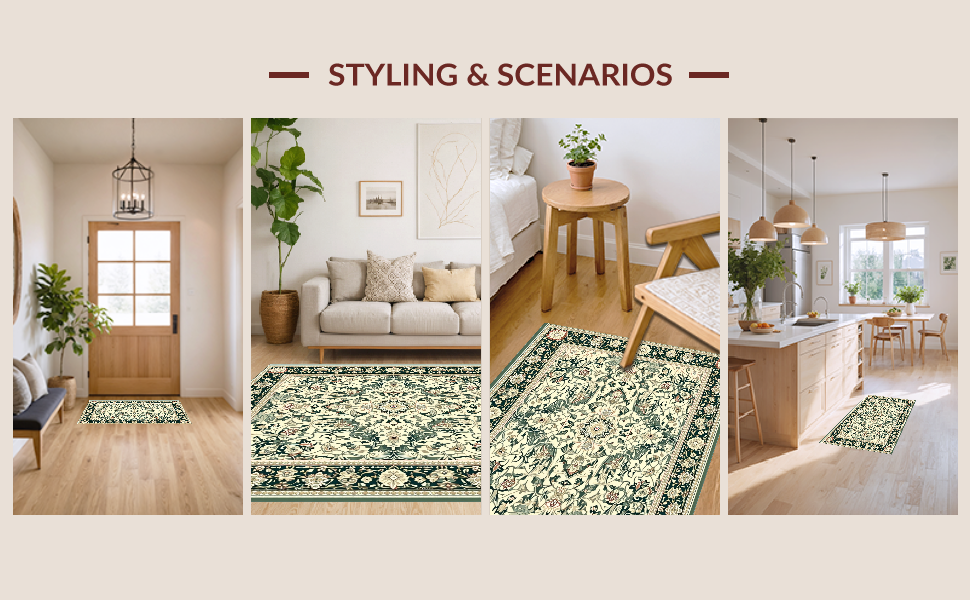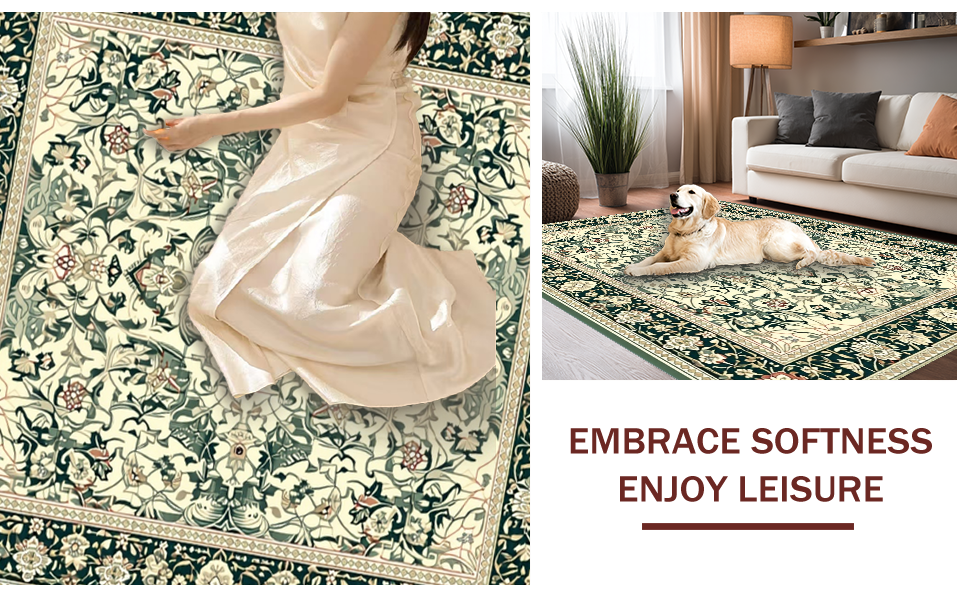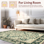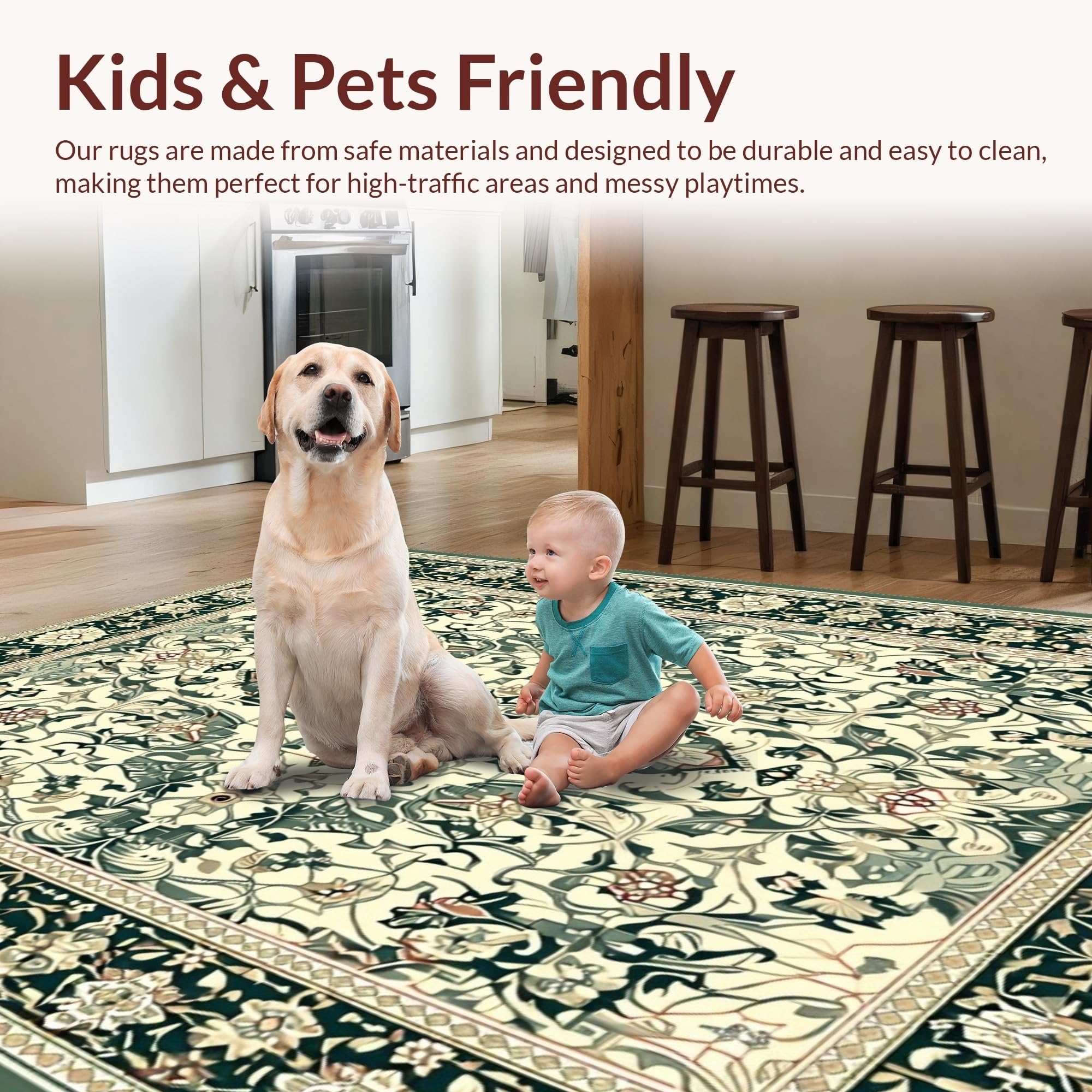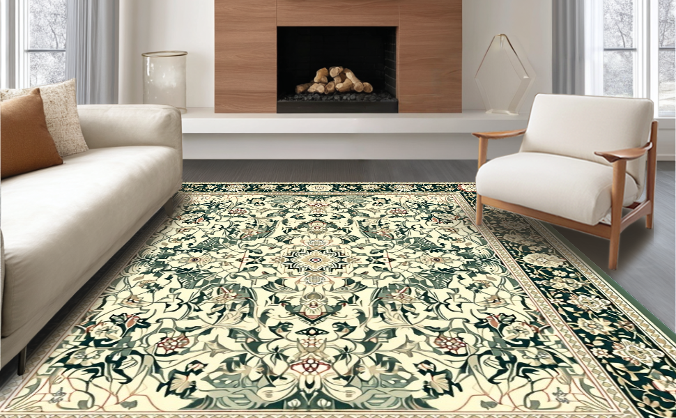 Ultra Soft Area Rug, Non Slip, Stain Resistant, Washable Area Rugs for Living Room, Bedroom, Elegant Sage Ogee Motif(Beige) Overview: