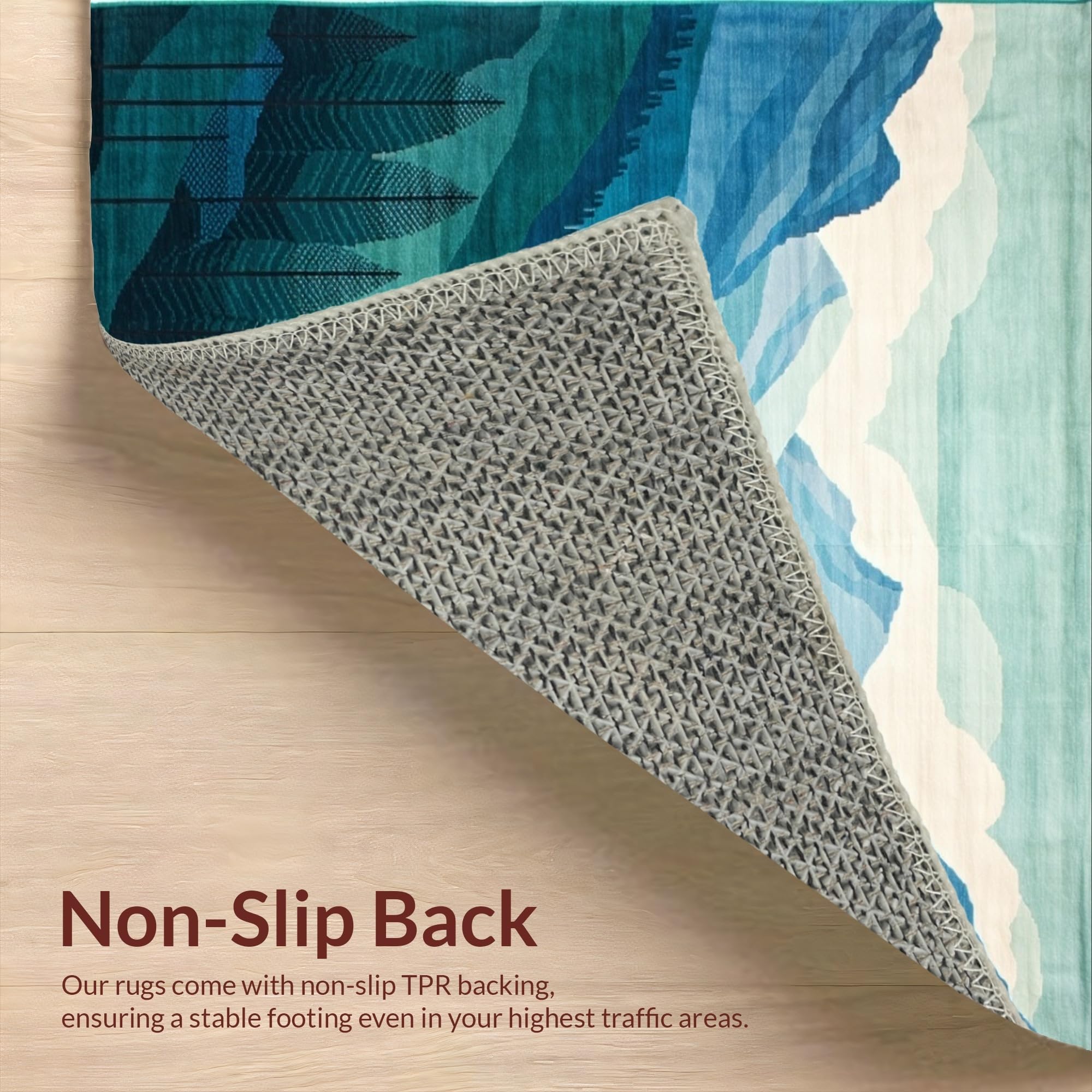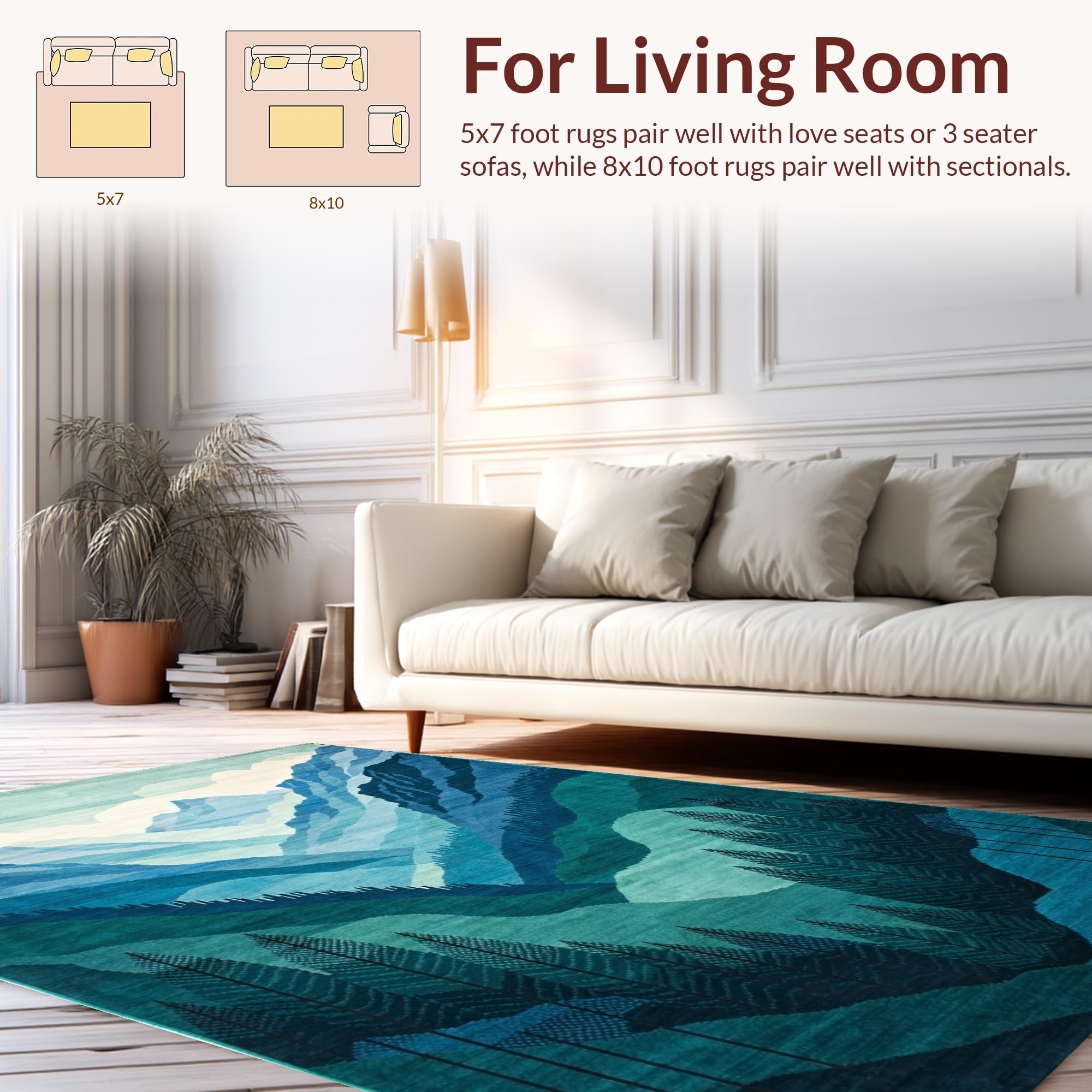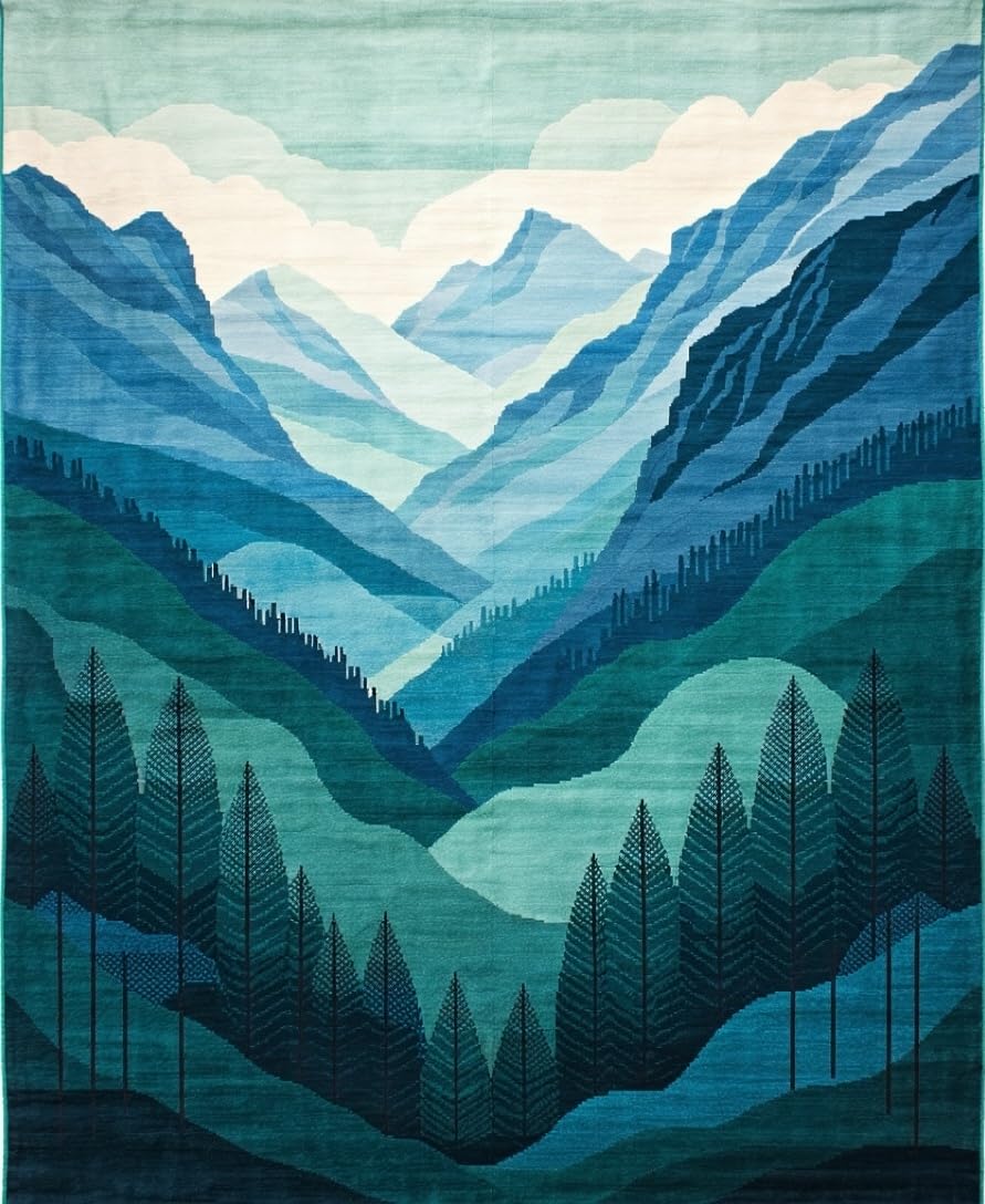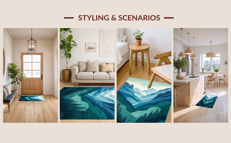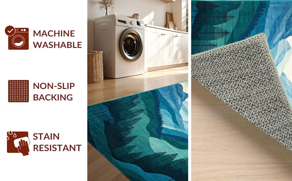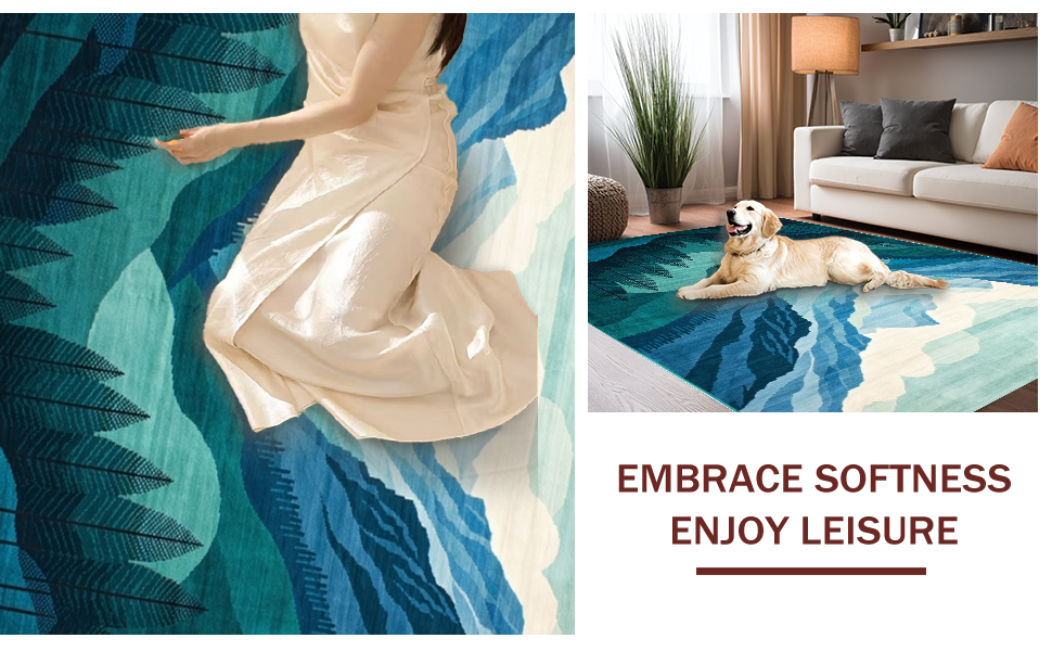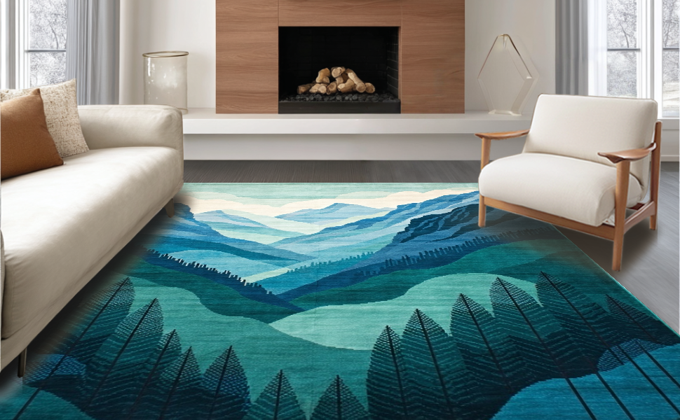 Ultra Soft Area Rug, Non Slip, Stain Resistant, Washable Area Rugs for Living Room, Bedroom, Elegant Scenic Landscape Motif(Blue) Overview: