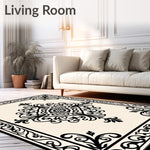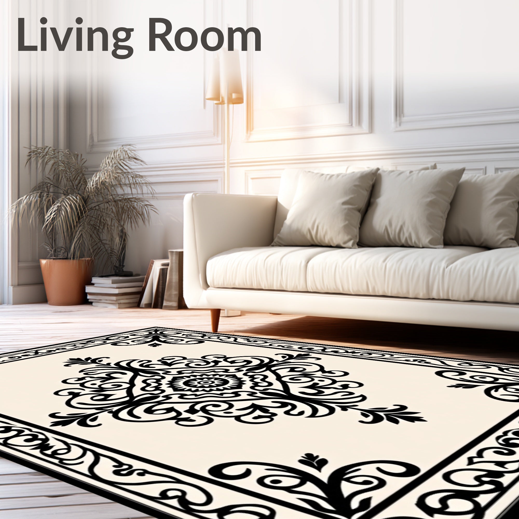Ultra Soft Area Rug, Non Slip, Stain Resistant, Washable Area Rugs for Living Room, Bedroom, Elegant Scroll Medallion Decorative With Intricate Swirls(Black) Overview: