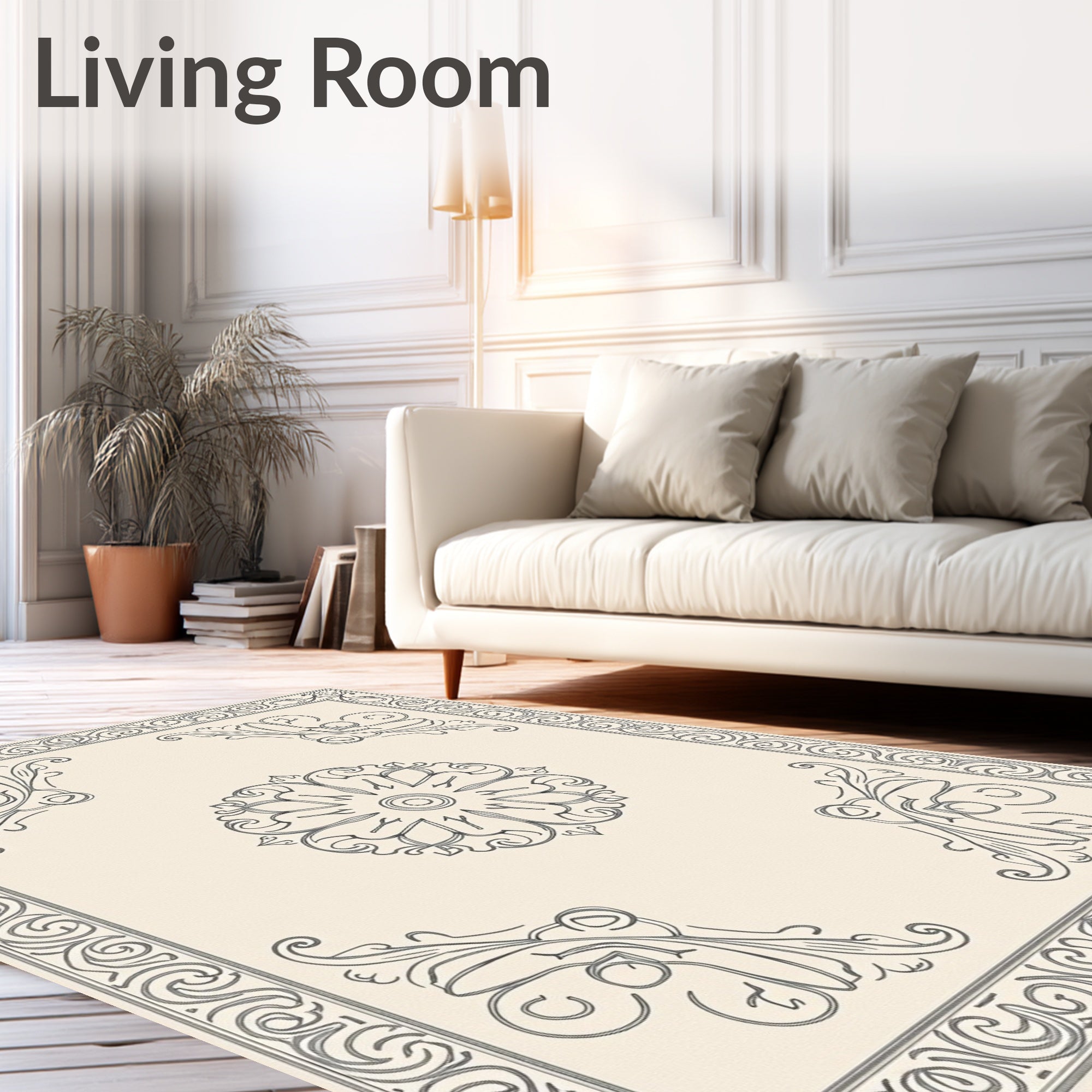 Ultra Soft Area Rug, Non Slip, Stain Resistant, Washable Area Rugs for Living Room, Bedroom, Elegant Scroll Medallion Tapestry Artisan Collection(Ivory) Overview: