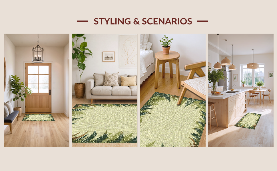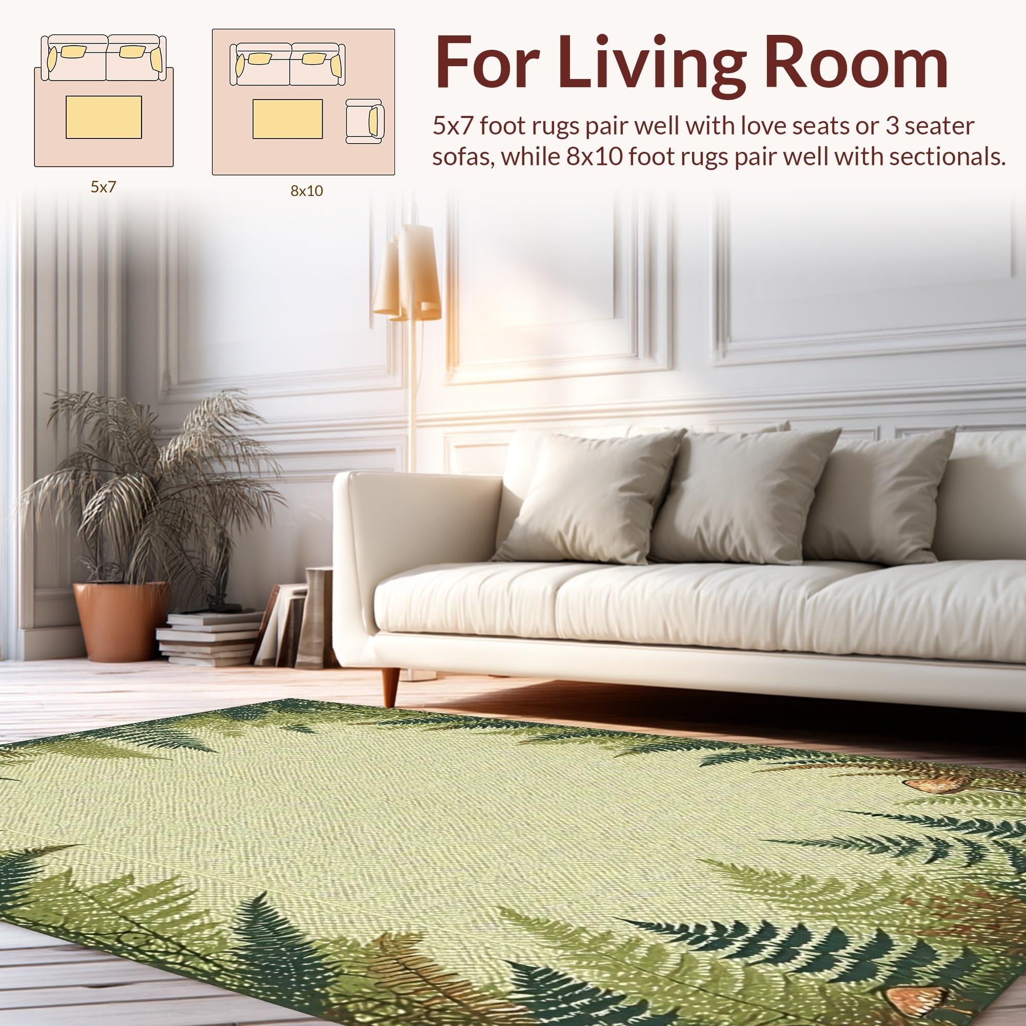 Ultra Soft Area Rug, Non Slip, Stain Resistant, Washable Area Rugs for Living Room, Bedroom, Elegant Seamless Foliage Design(Beige) Overview: