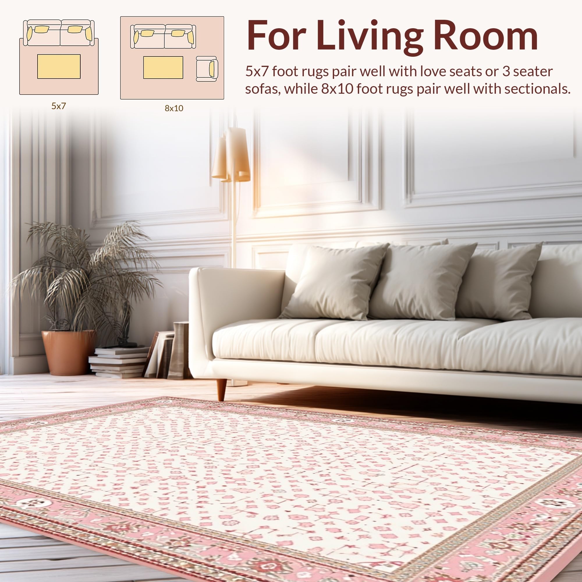 Ultra Soft Area Rug, Non Slip, Stain Resistant, Washable Area Rugs for Living Room, Bedroom, Elegant Seasonal Hues Door Mat(Pink) Overview: