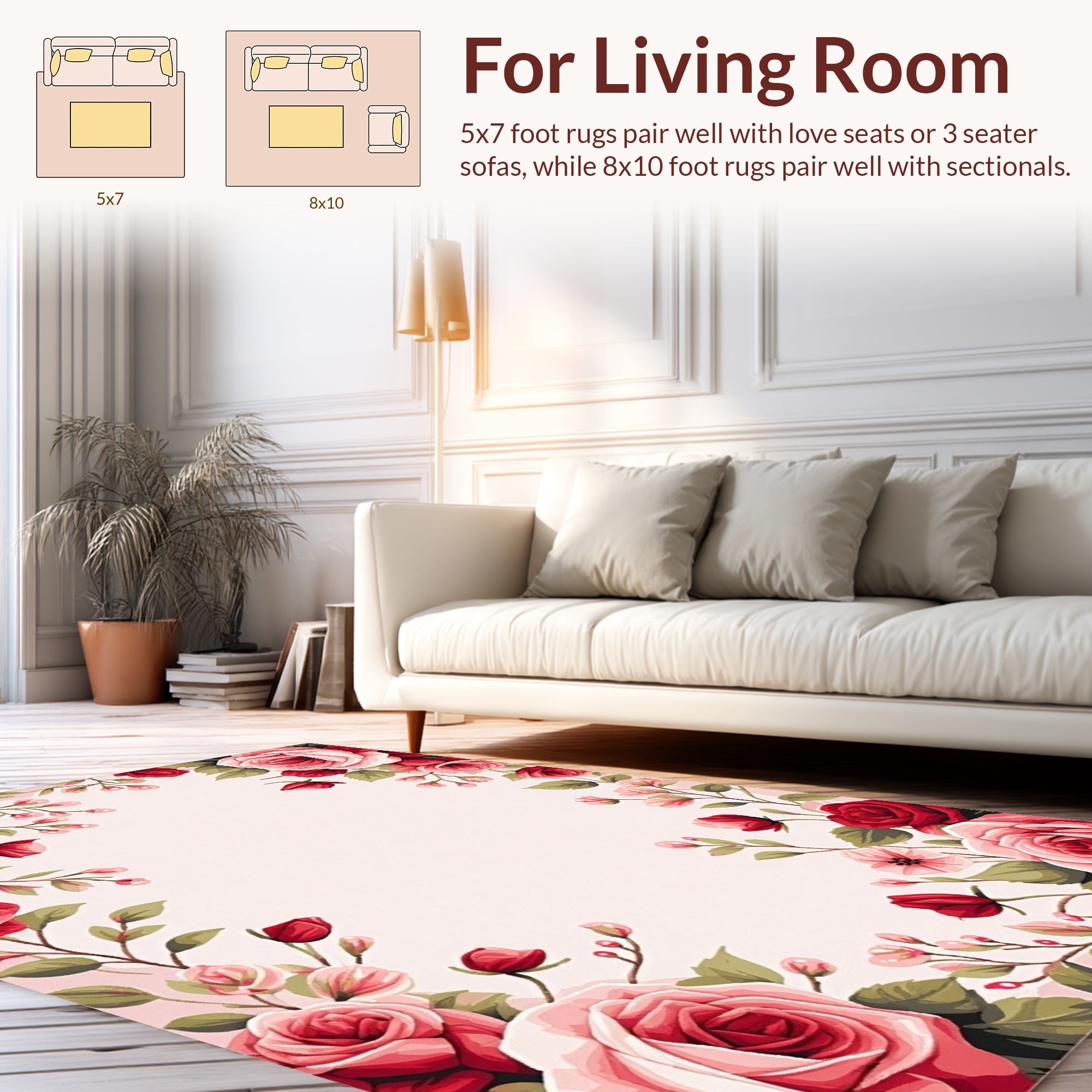 Flatwoven High Traffic Area Rug, Elegant Blossom Design, Non Slip, Stain Resistant, Washable Area Rugs for Living Room, Bedroom (Red) Overview: