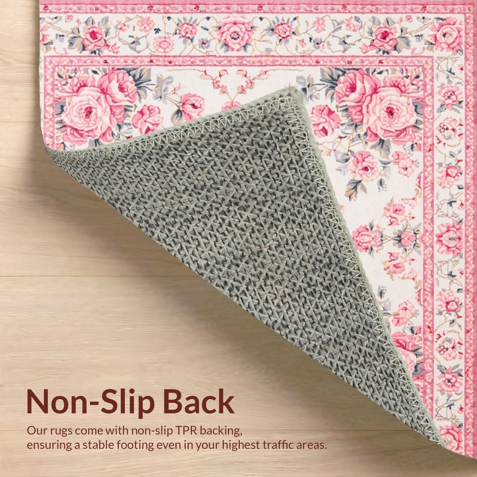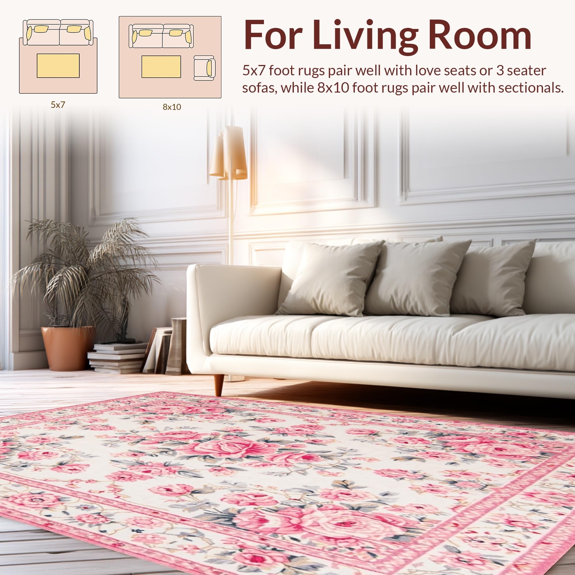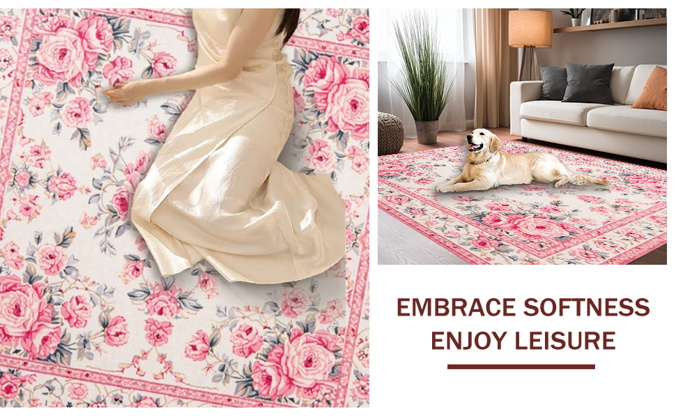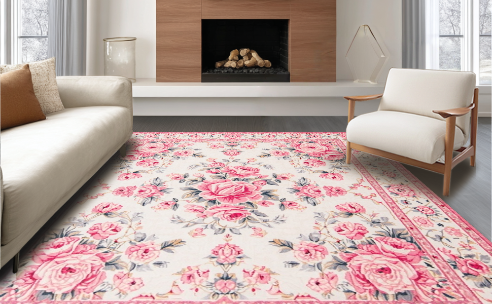 Ultra Soft Area Rug, Non Slip, Stain Resistant, Washable Area Rugs for Living Room, Bedroom, Elegant Shabby Chic Petal Design(Ivory) Overview: