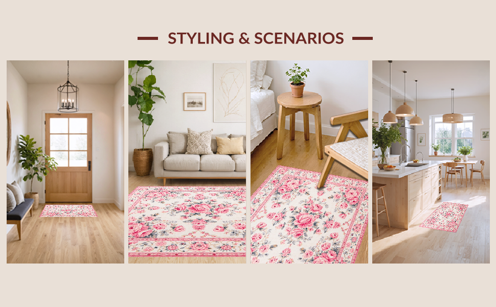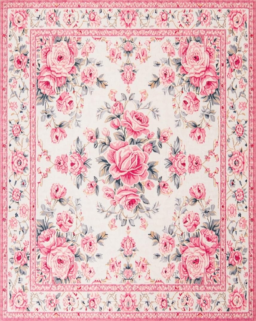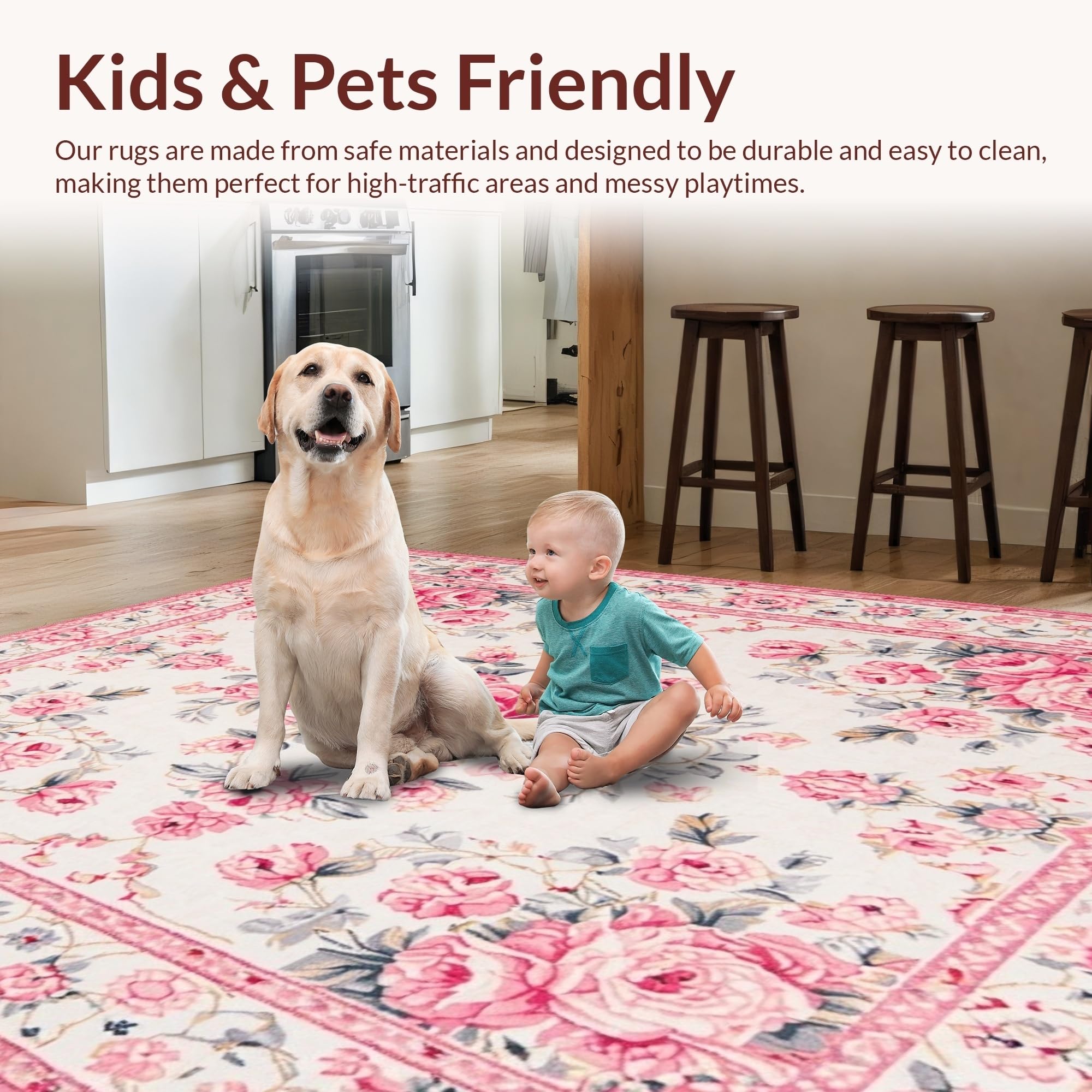 Ultra Soft Area Rug, Non Slip, Stain Resistant, Washable Area Rugs for Living Room, Bedroom, Elegant Shabby Chic Petal Design(Ivory) Overview: