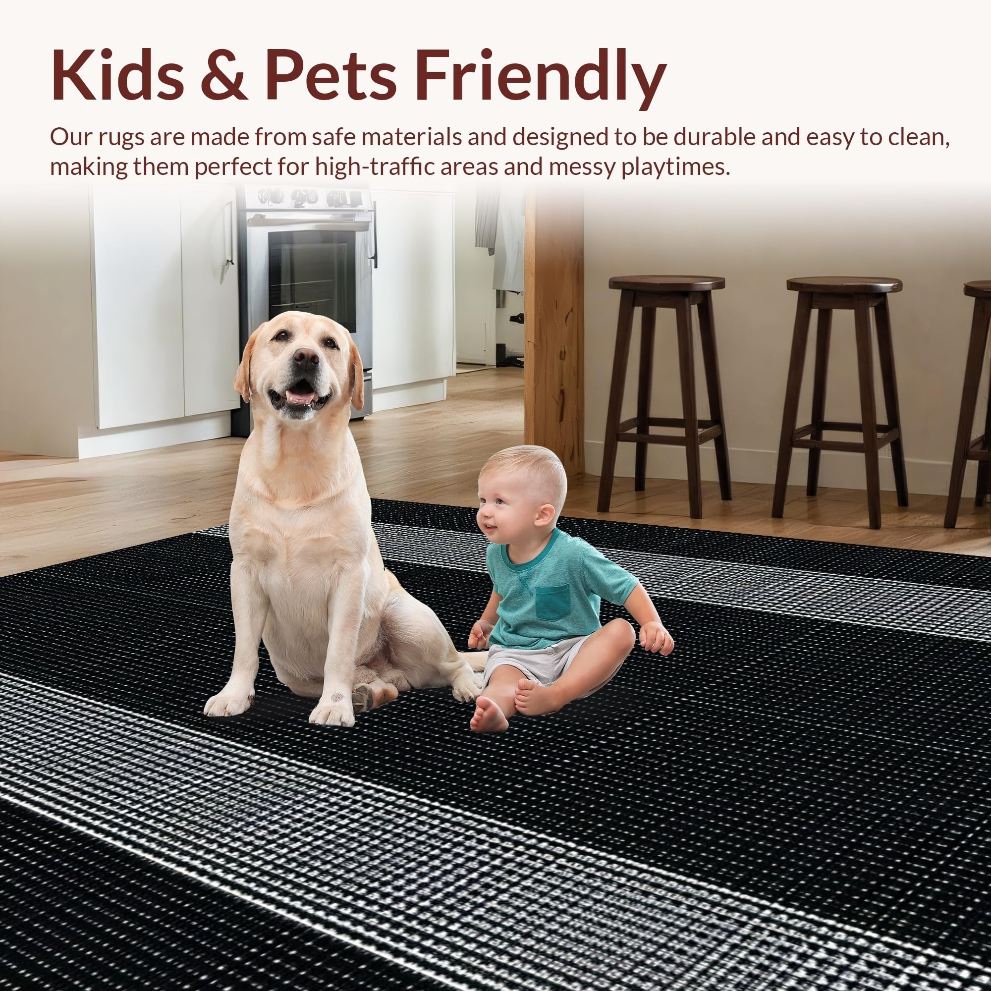 Ultra Soft Area Rug, Non Slip, Stain Resistant, Washable Area Rugs for Living Room, Bedroom, Elegant Shaggy Circular Aesthetic(Black) Overview: