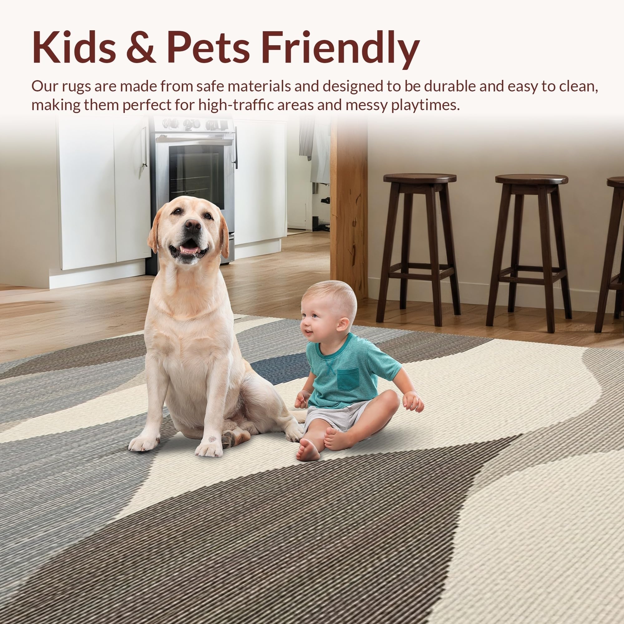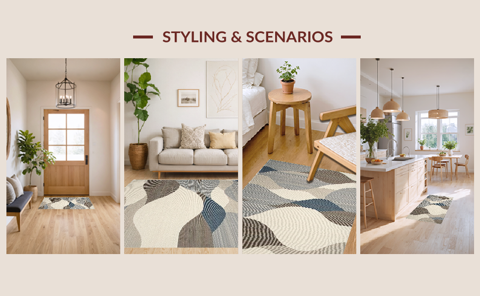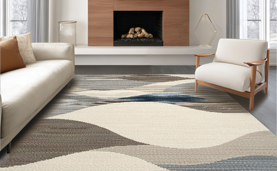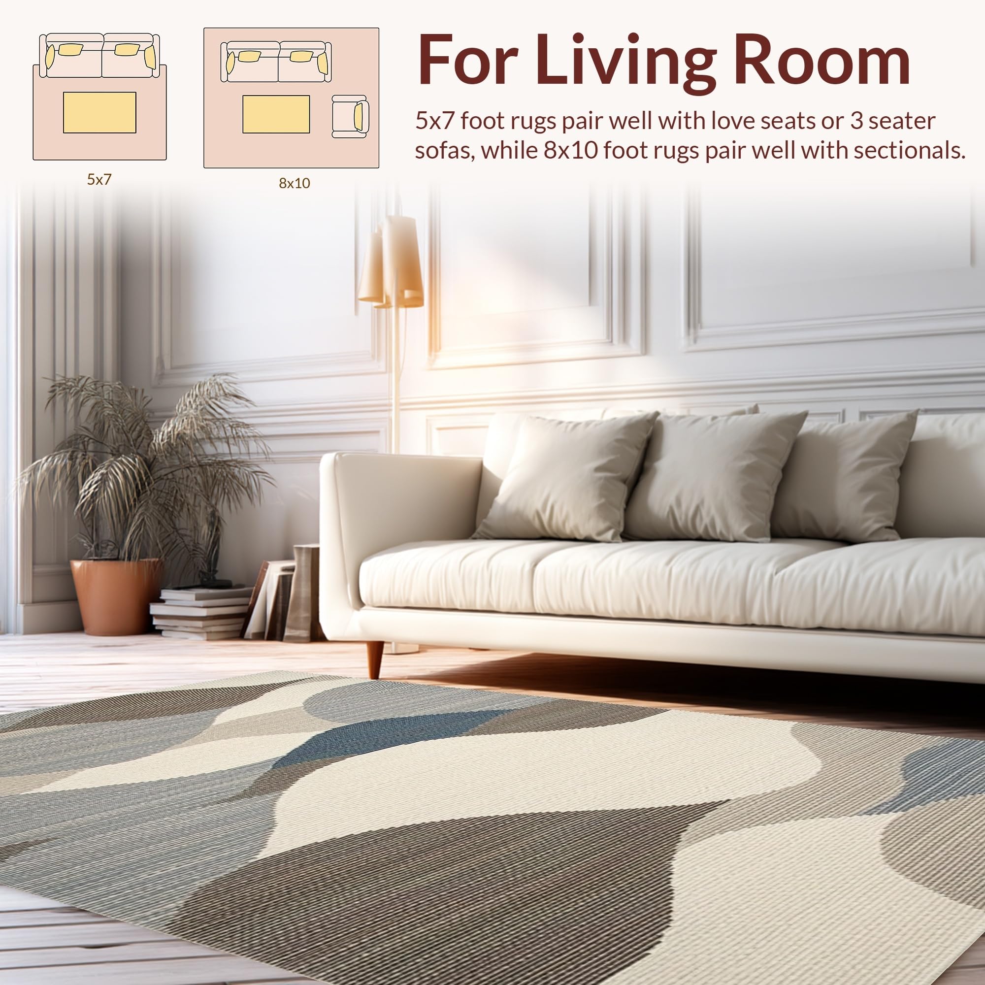 Ultra Soft Area Rug, Non Slip, Stain Resistant, Washable Area Rugs for Living Room, Bedroom, Elegant Shaggy Ocean-Inspired Aesthetic(Beige) Overview: