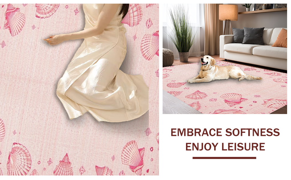 Ultra Soft Area Rug, Non Slip, Stain Resistant, Washable Area Rugs for Living Room, Bedroom, Elegant Shell-Shaped Bath Accent(Pink) Overview: