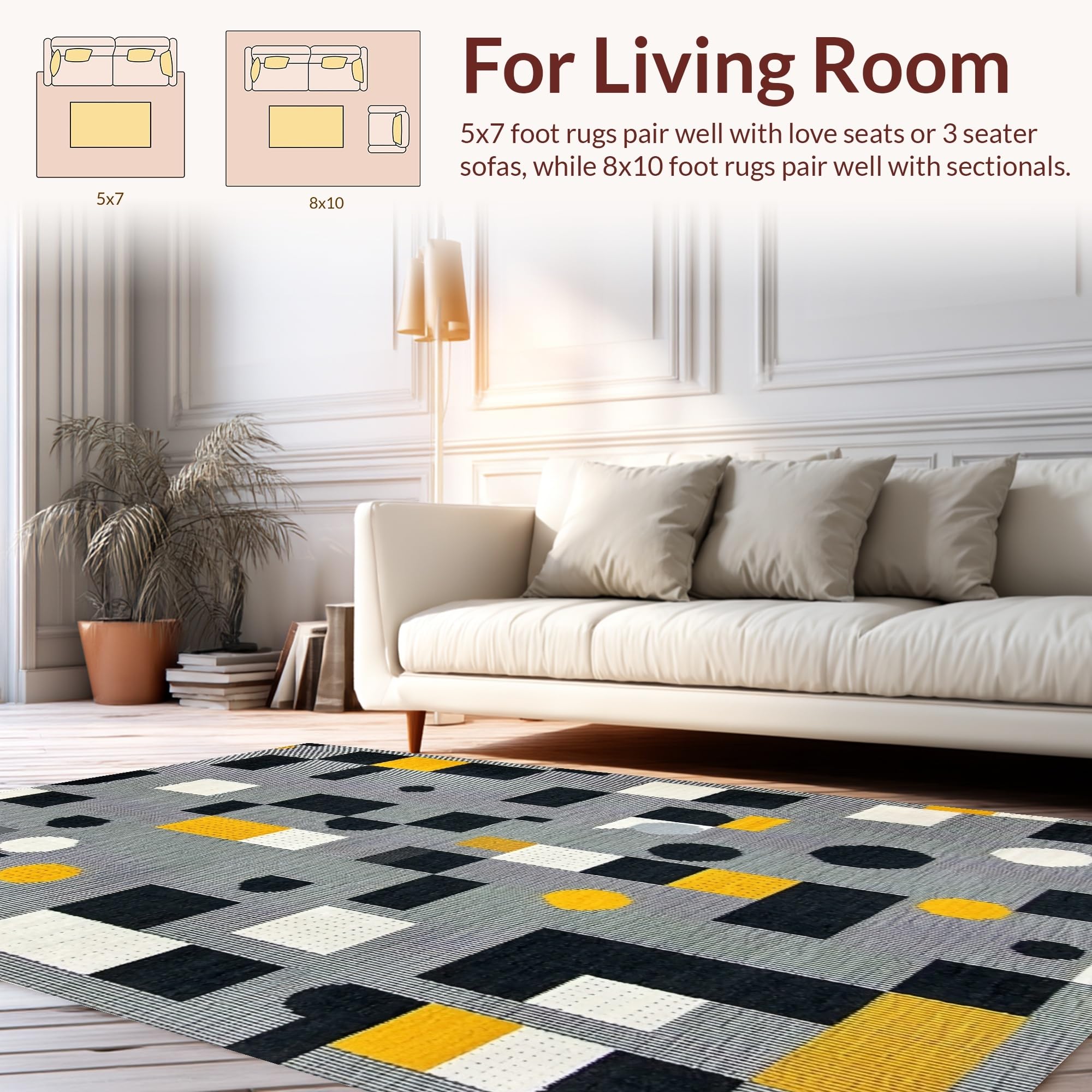 Ultra Soft Area Rug, Non Slip, Stain Resistant, Washable Area Rugs for Living Room, Bedroom, Elegant Simple Phrase Art(Gray) Overview: