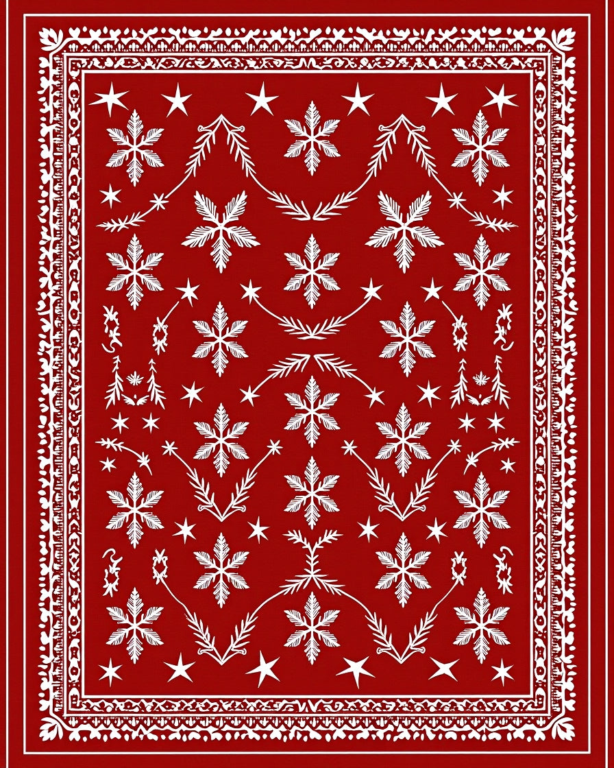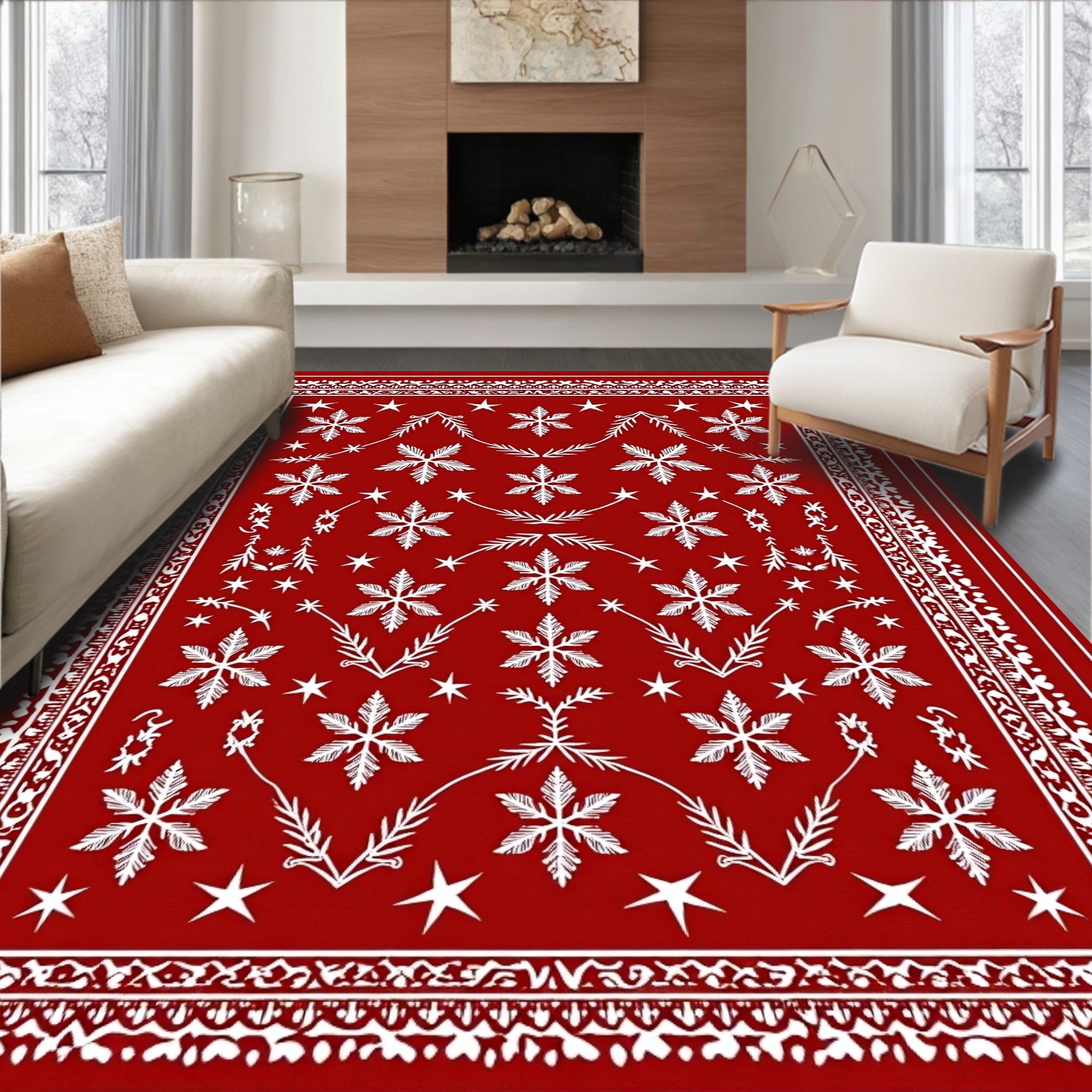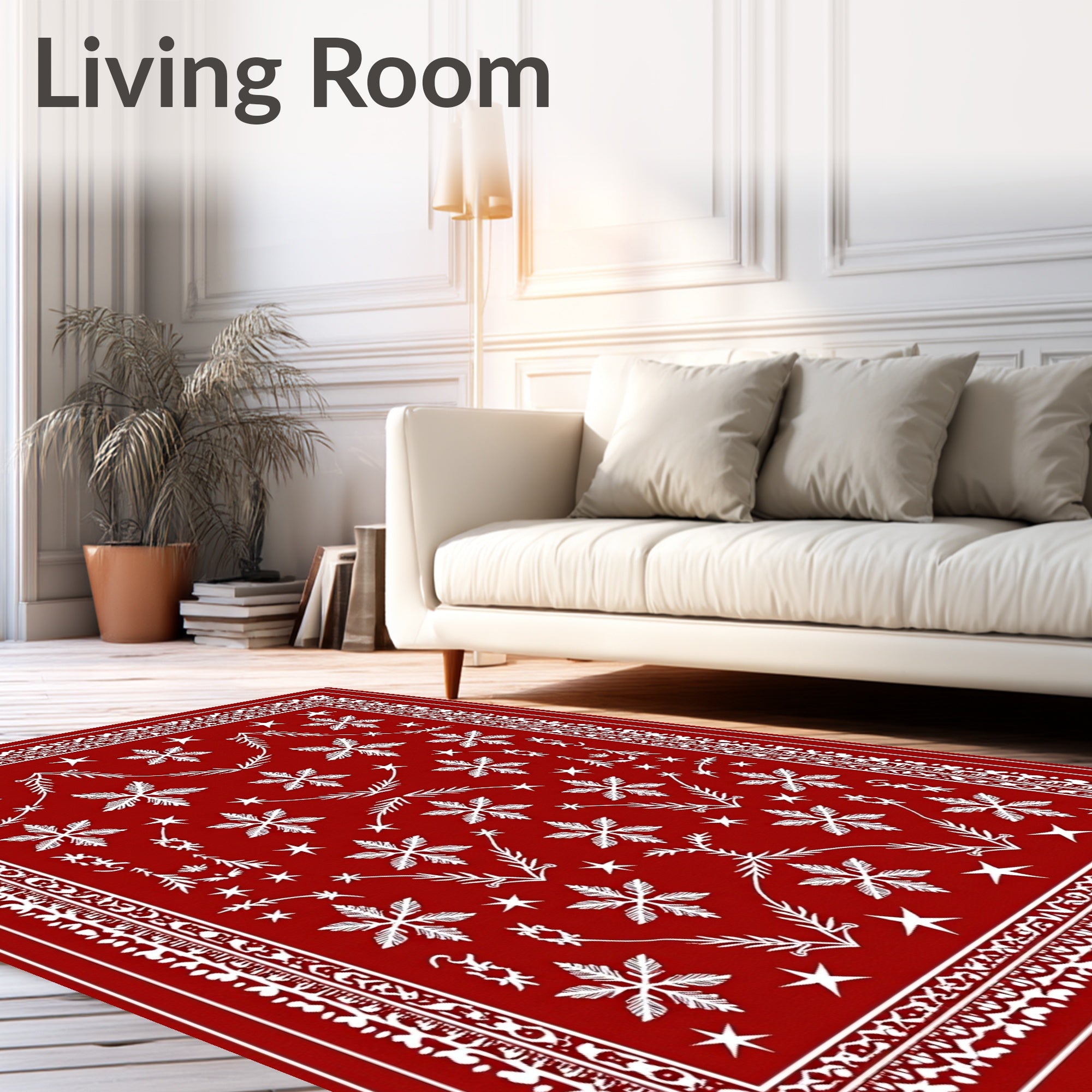Ultra Soft Area Rug, Non Slip, Stain Resistant, Washable Area Rugs for Living Room, Bedroom, Elegant Snowflake Lace with Frosted Petals and Interwoven Stars(Red) Overview: