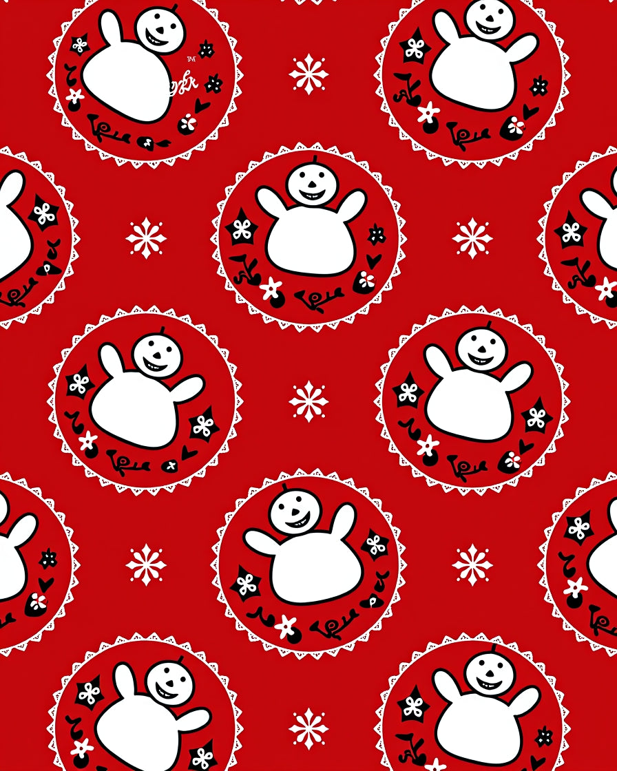 Elegant Snowflake Medallions Framing Smiling Snowman Icons Design(Red)