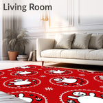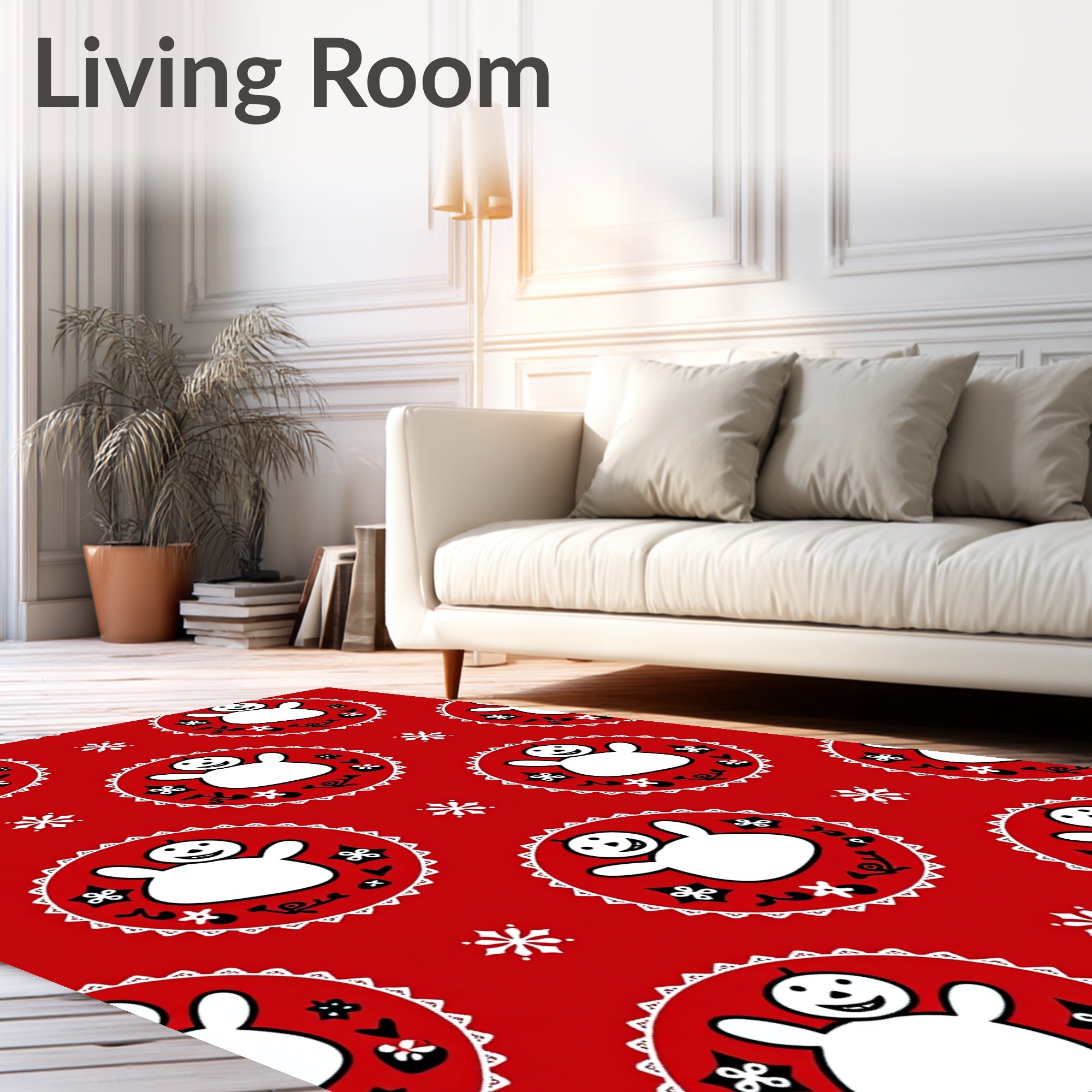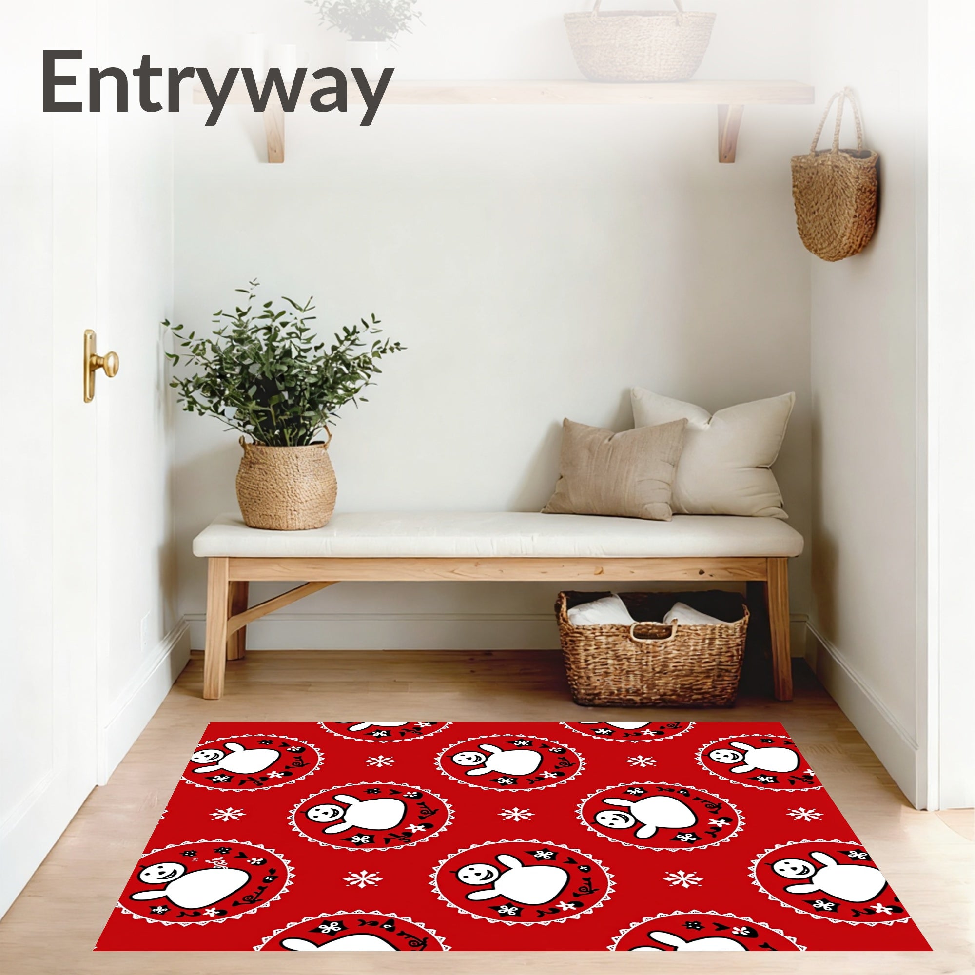 Ultra Soft Area Rug, Non Slip, Stain Resistant, Washable Area Rugs for Living Room, Bedroom, Elegant Snowflake Medallions Framing Smiling Snowman Icons Design(Red) Overview: