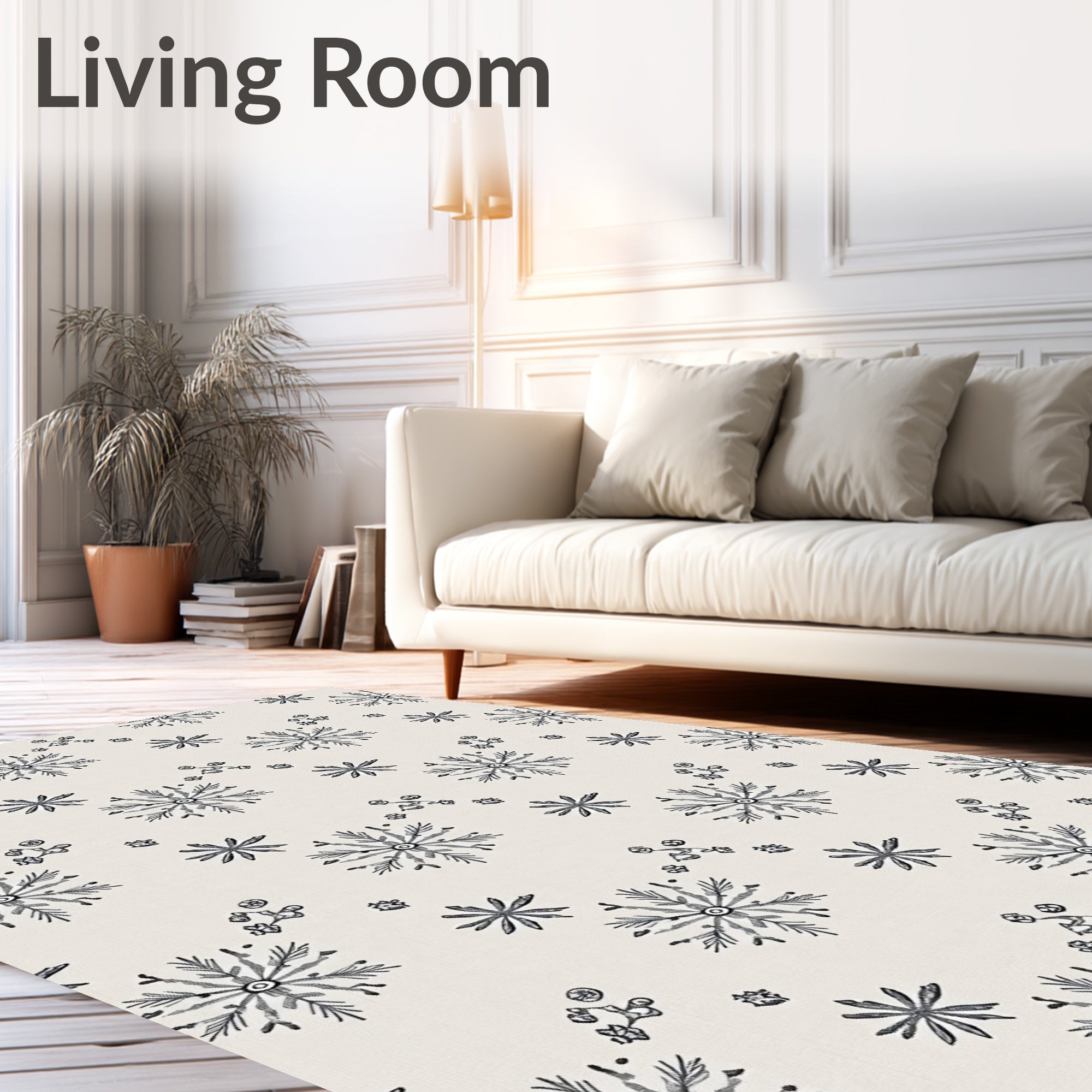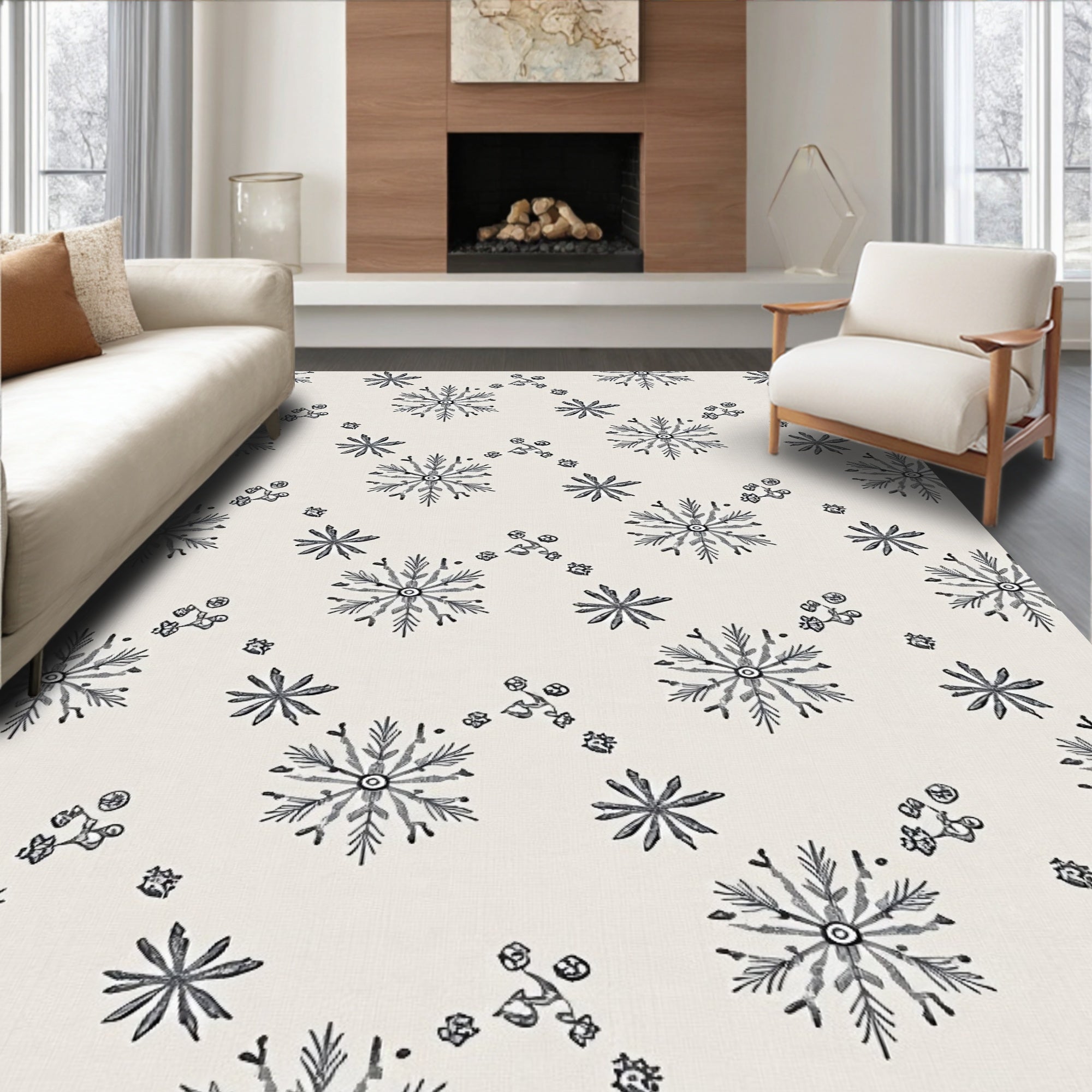 Flatwoven High Traffic Area Rug, Elegant Snowflake Winter Wonderland Festive Holiday Accent, Non Slip, Stain Resistant, Washable Area Rugs for Living Room, Bedroom (Beige) Overview: