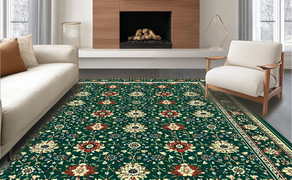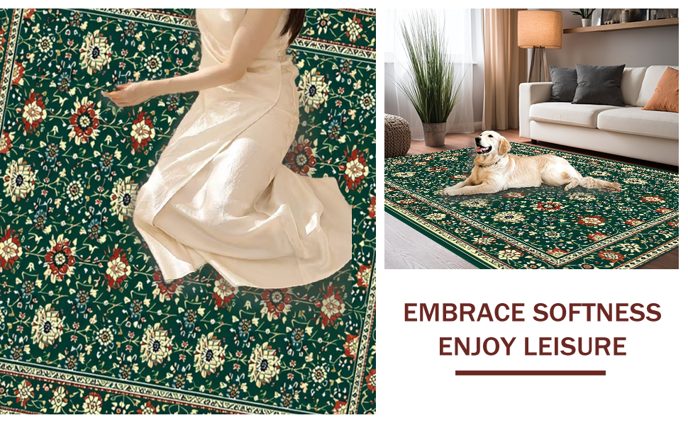 Ultra Soft Area Rug, Non Slip, Stain Resistant, Washable Area Rugs for Living Room, Bedroom, Elegant Soft Abstract Motif(Green) Overview: