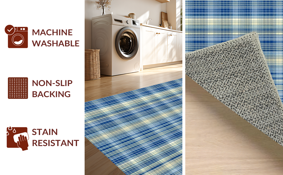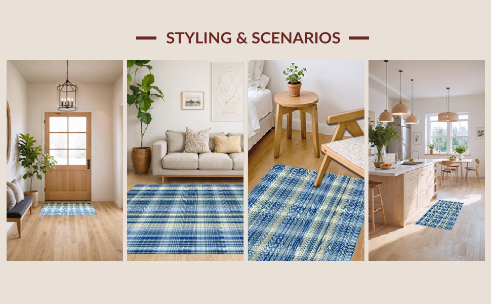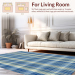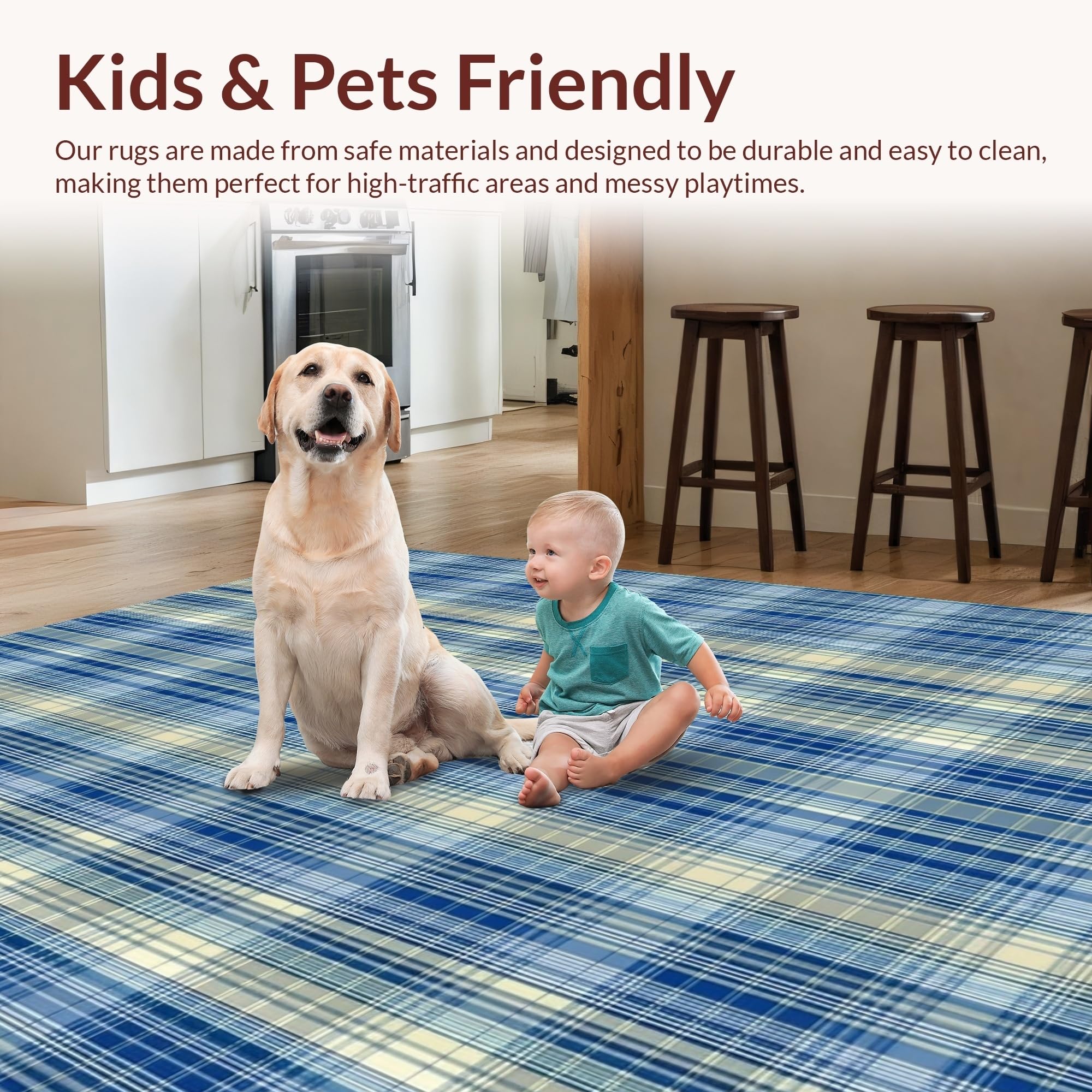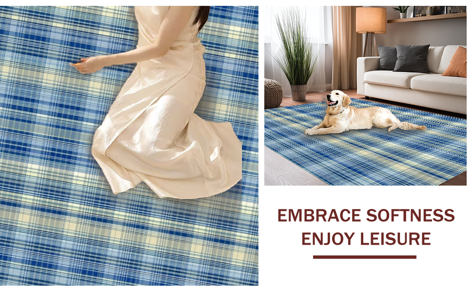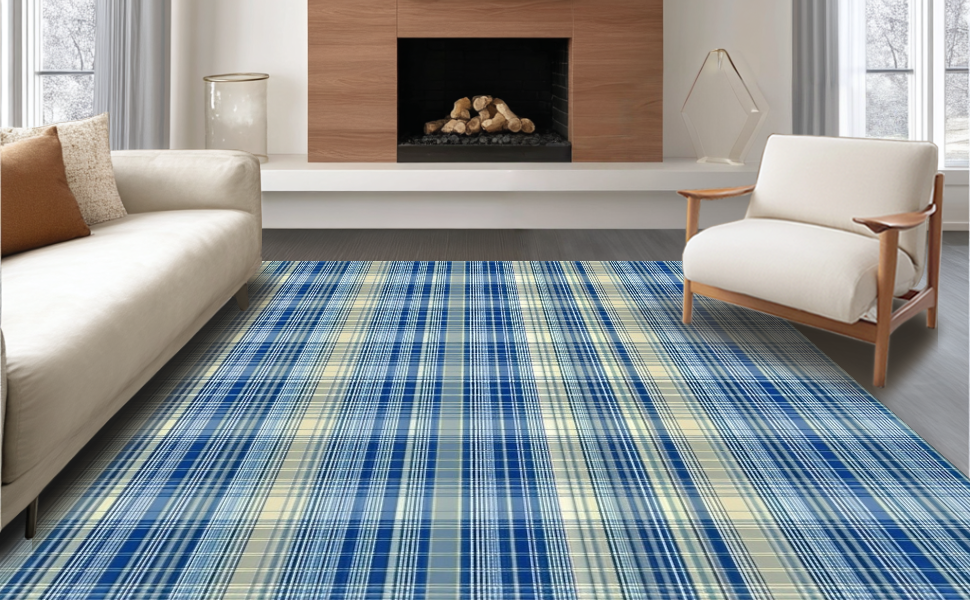 Ultra Soft Area Rug, Non Slip, Stain Resistant, Washable Area Rugs for Living Room, Bedroom, Elegant Soft Blue Tartan Style(Blue) Overview: