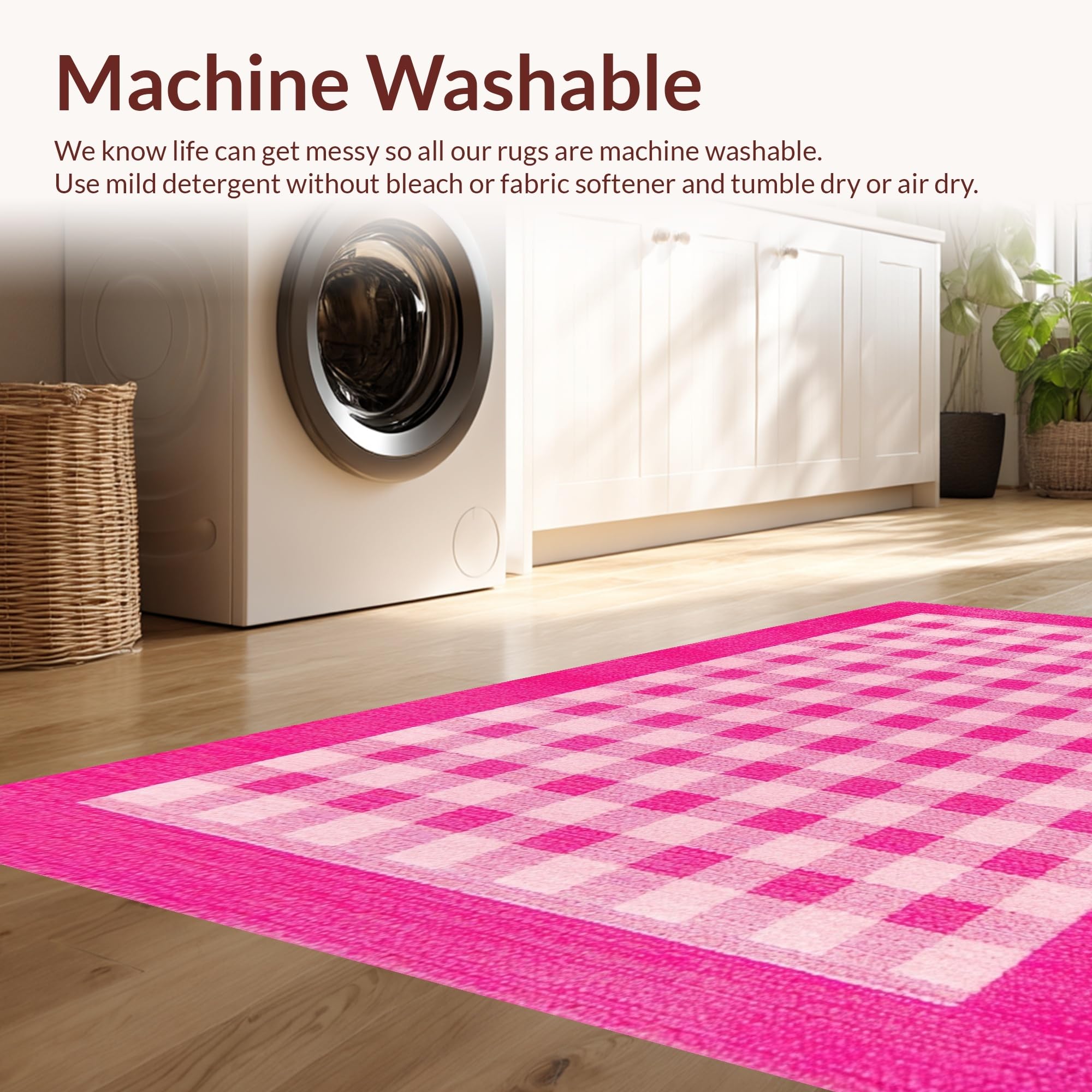- Machine Washable: Our rugs can be easily thrown in the wash machine.