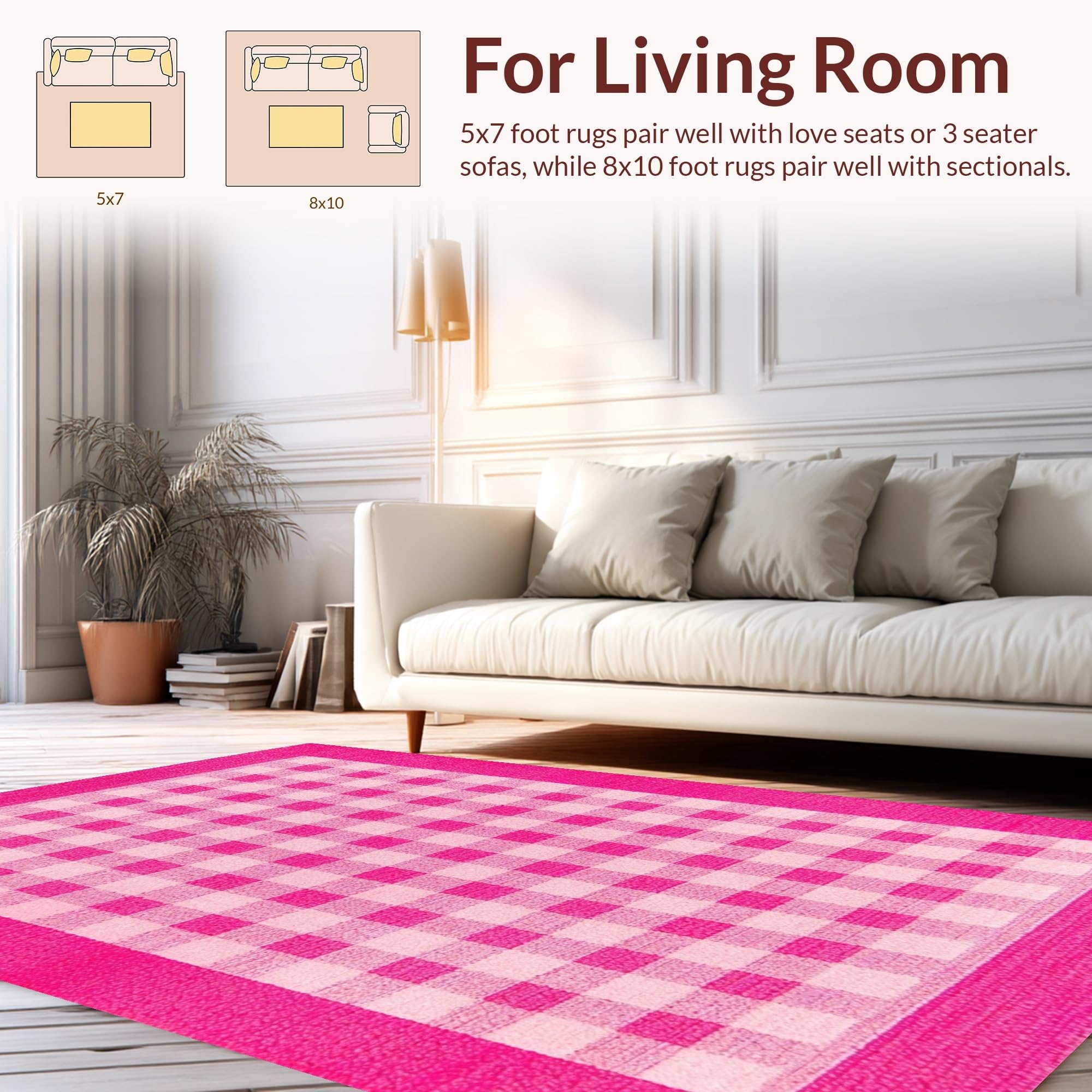 Ultra Soft Area Rug, Non Slip, Stain Resistant, Washable Area Rugs for Living Room, Bedroom, Elegant Soft Color Palette Arrangement(Pink) Overview: