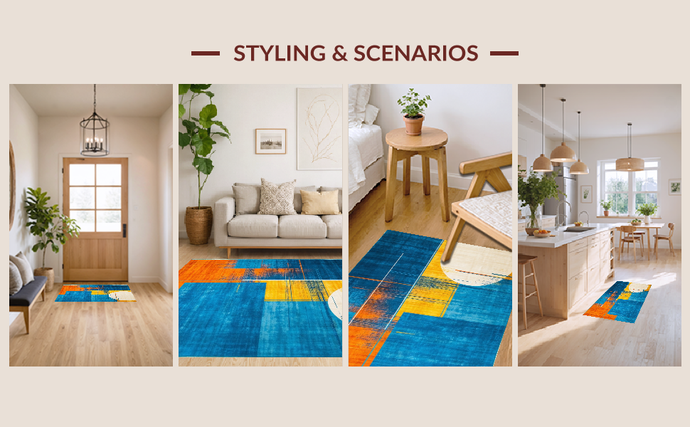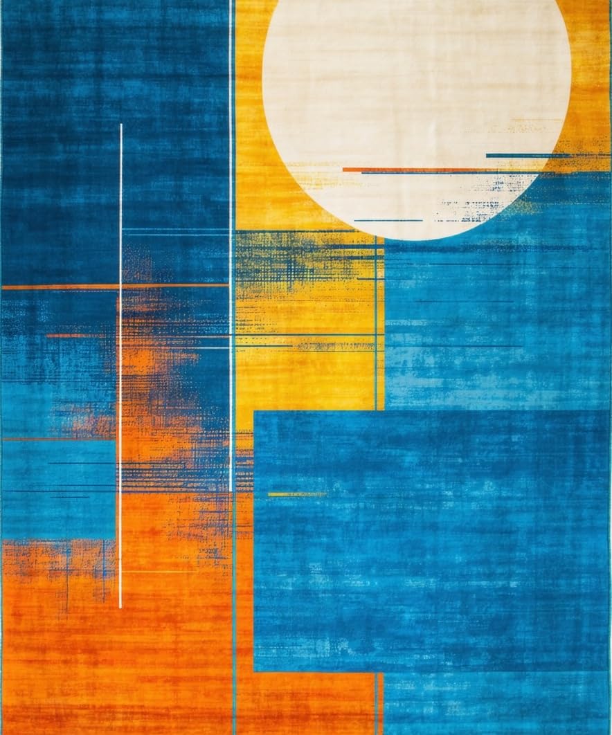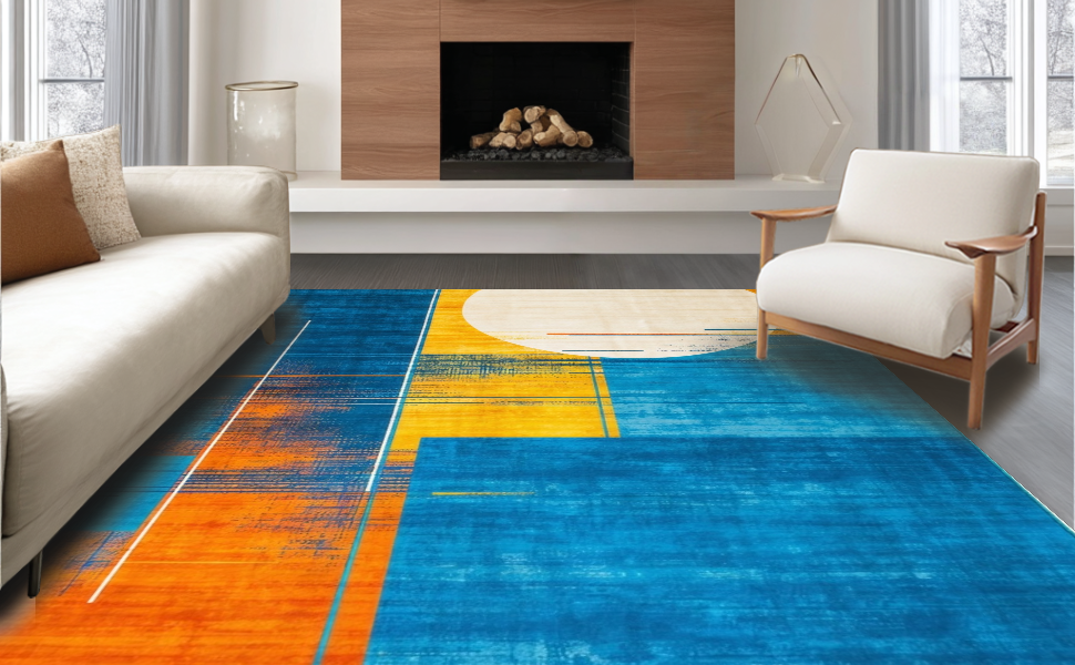 Ultra Soft Area Rug, Non Slip, Stain Resistant, Washable Area Rugs for Living Room, Bedroom, Elegant Soft Color Splash Design(Blue) Overview: