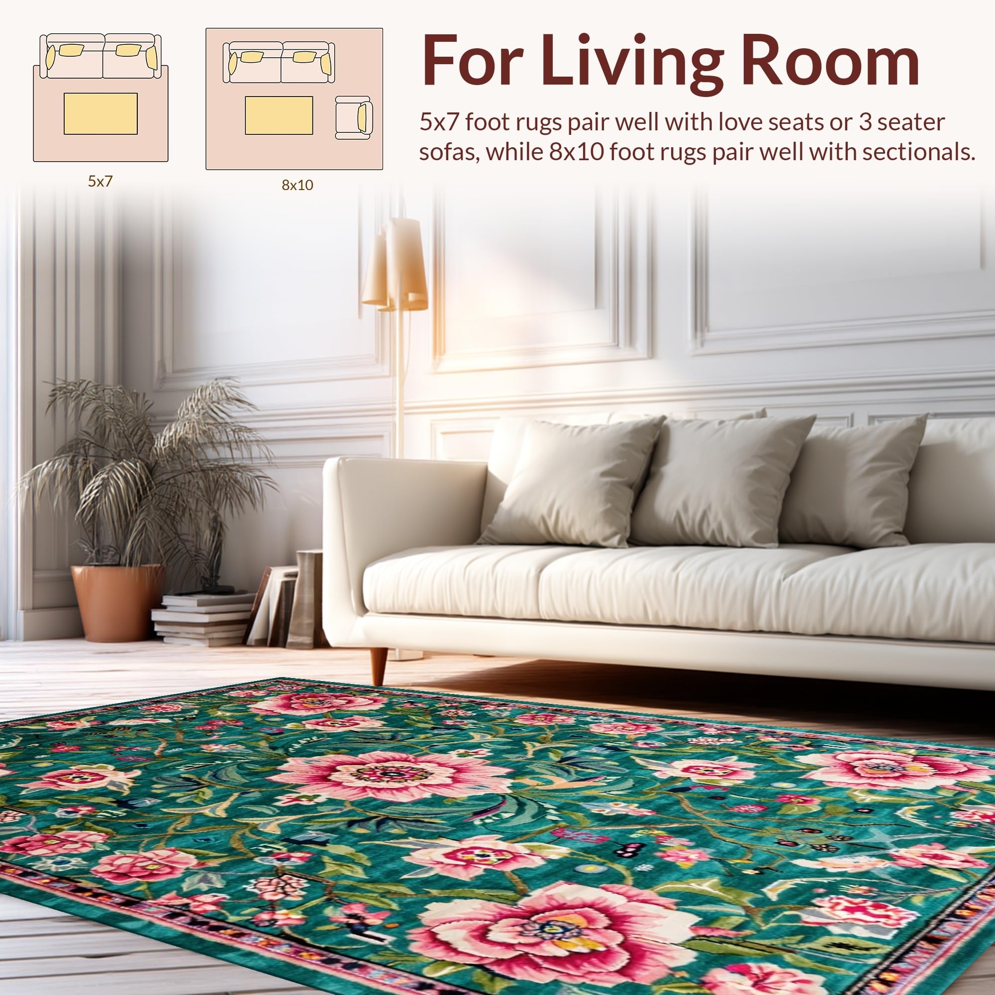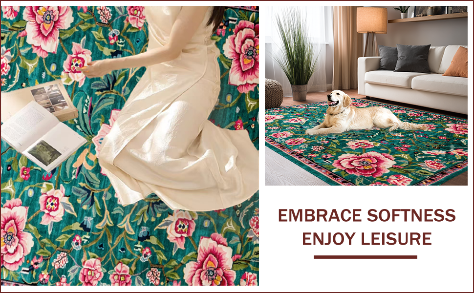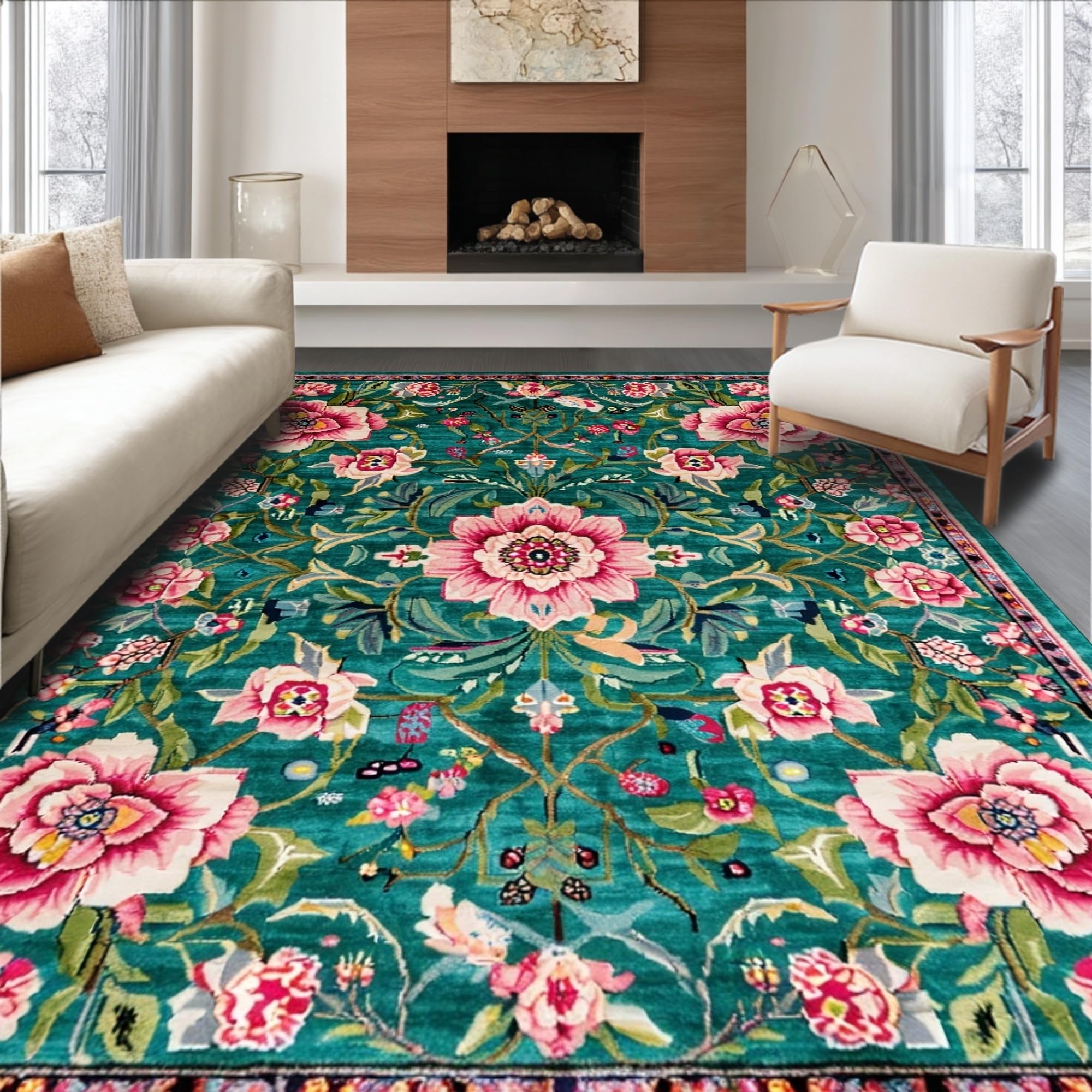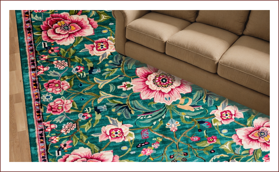 Ultra Soft Area Rug, Non Slip, Stain Resistant, Washable Area Rugs for Living Room, Bedroom, Elegant Soft Floral Aesthetic(Blue) Overview:
