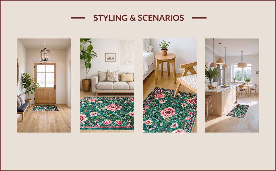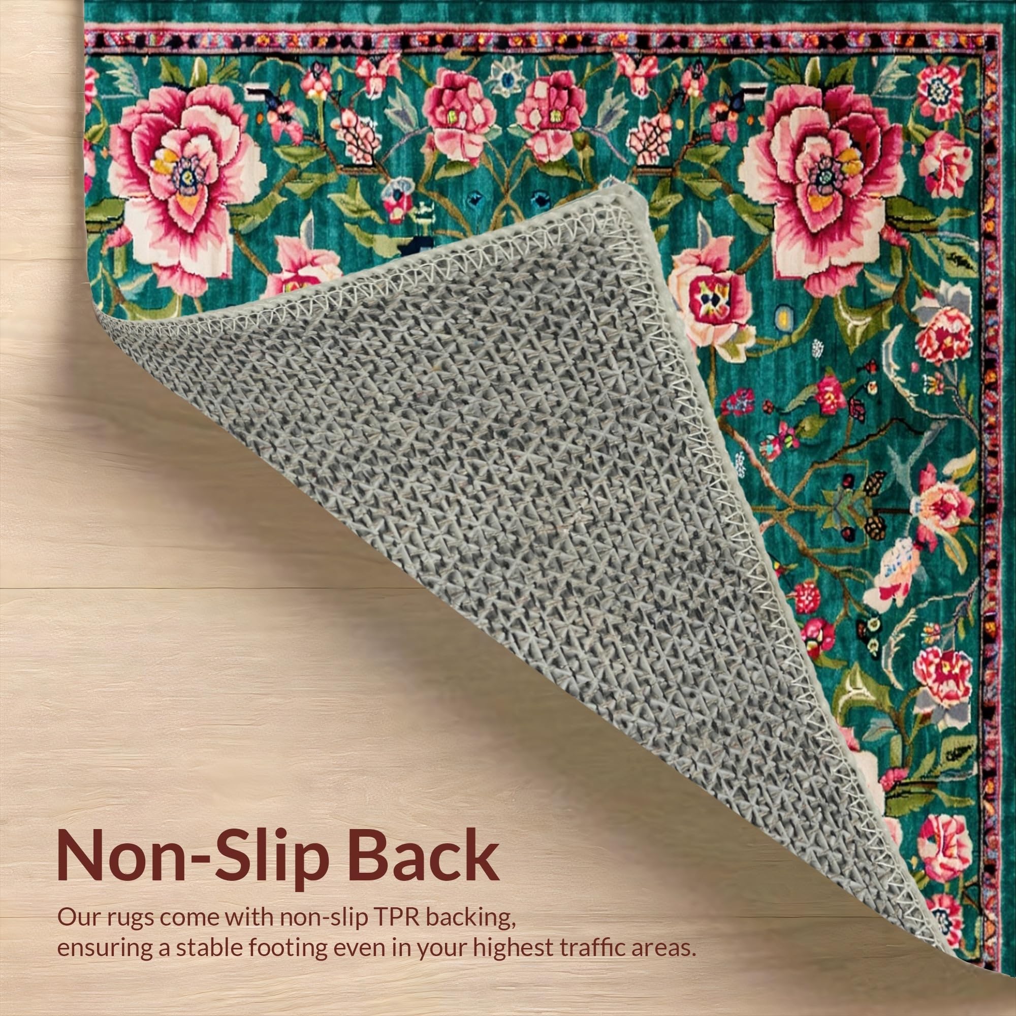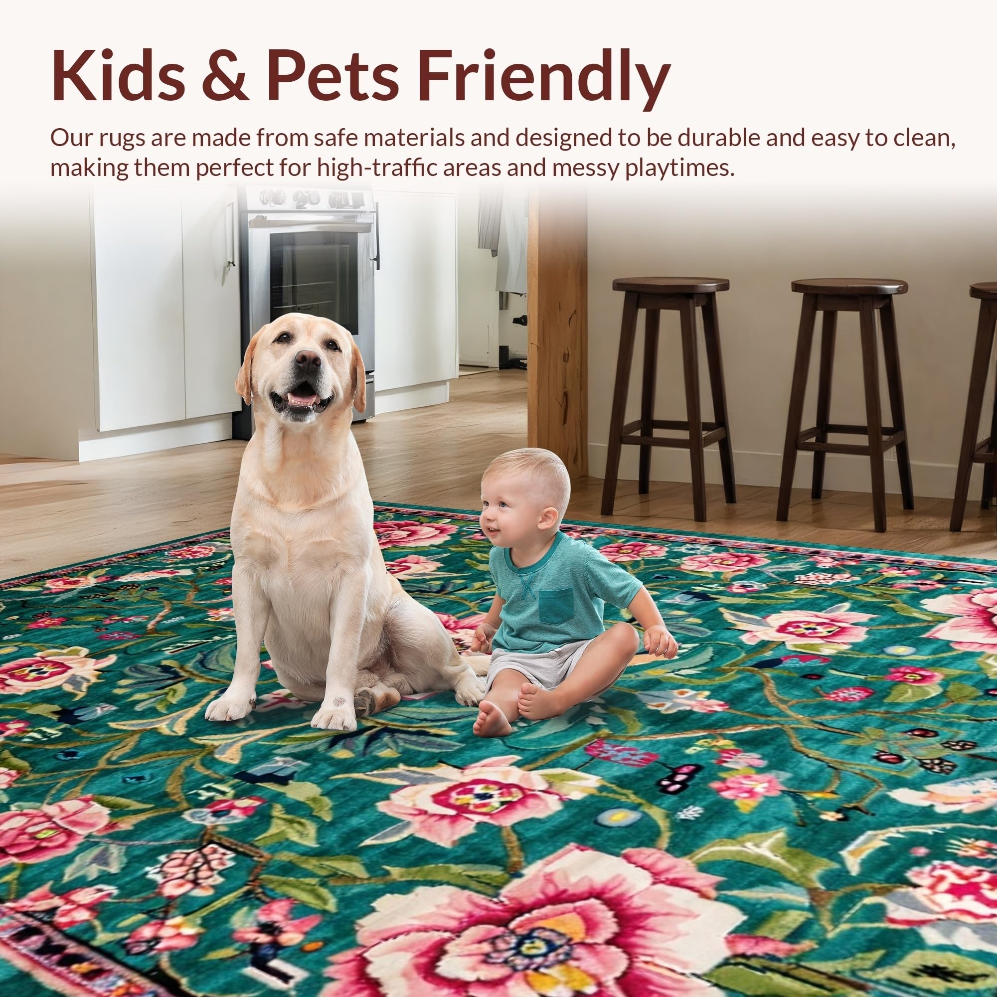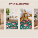 Ultra Soft Area Rug, Non Slip, Stain Resistant, Washable Area Rugs for Living Room, Bedroom, Elegant Soft Floral Aesthetic(Blue) Overview:
