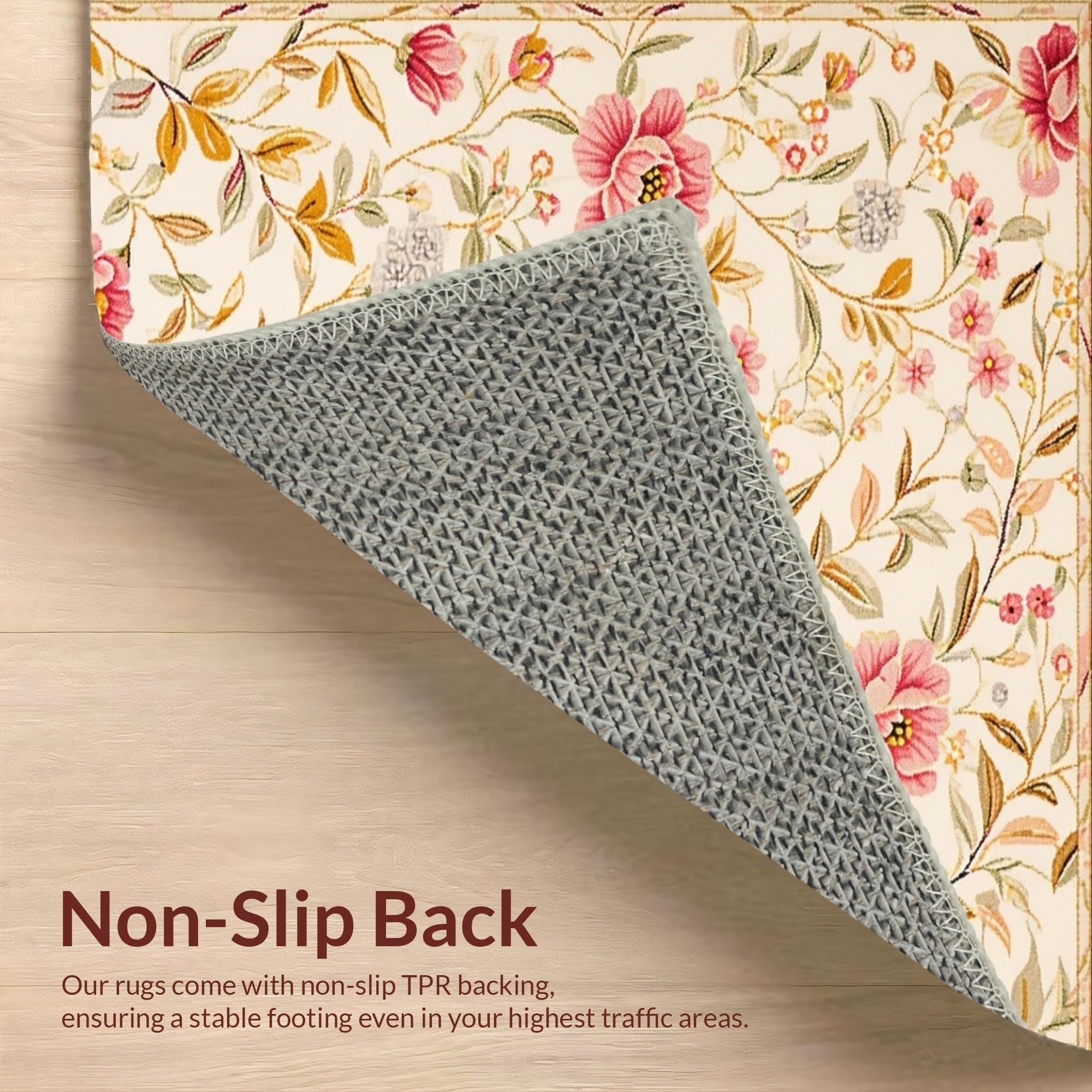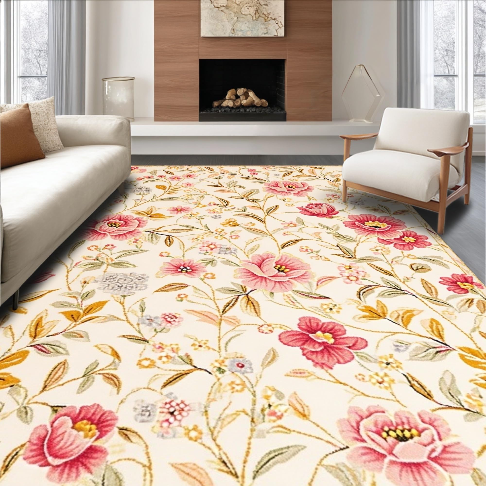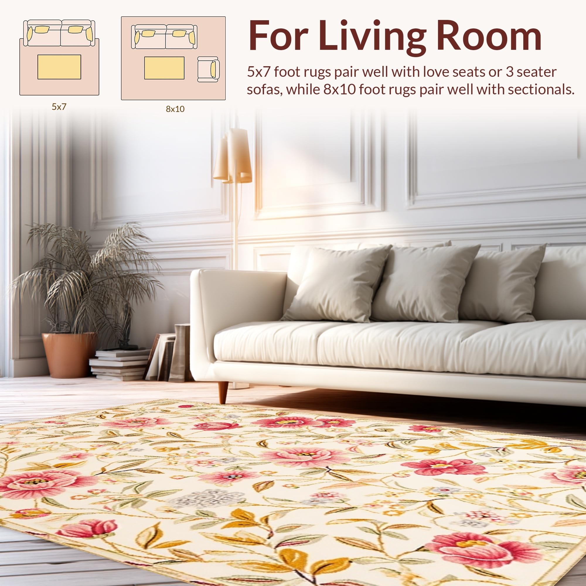 Ultra Soft Area Rug, Non Slip, Stain Resistant, Washable Area Rugs for Living Room, Bedroom, Elegant Soft Floral Elegance(Beige) Overview:
